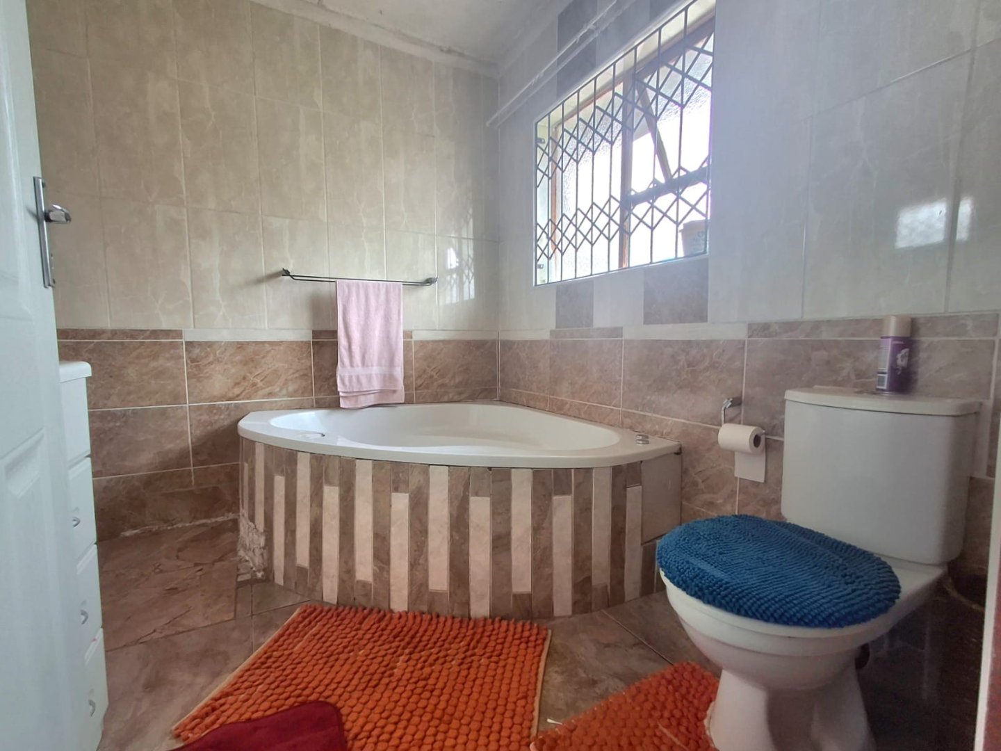Down the hallway, you’ll find two well-appointed bedrooms, each featuring built-in wardrobes for ample storage. Across the way, a full bathroom with both a tub and a shower provides comfort and convenience for the whole family.