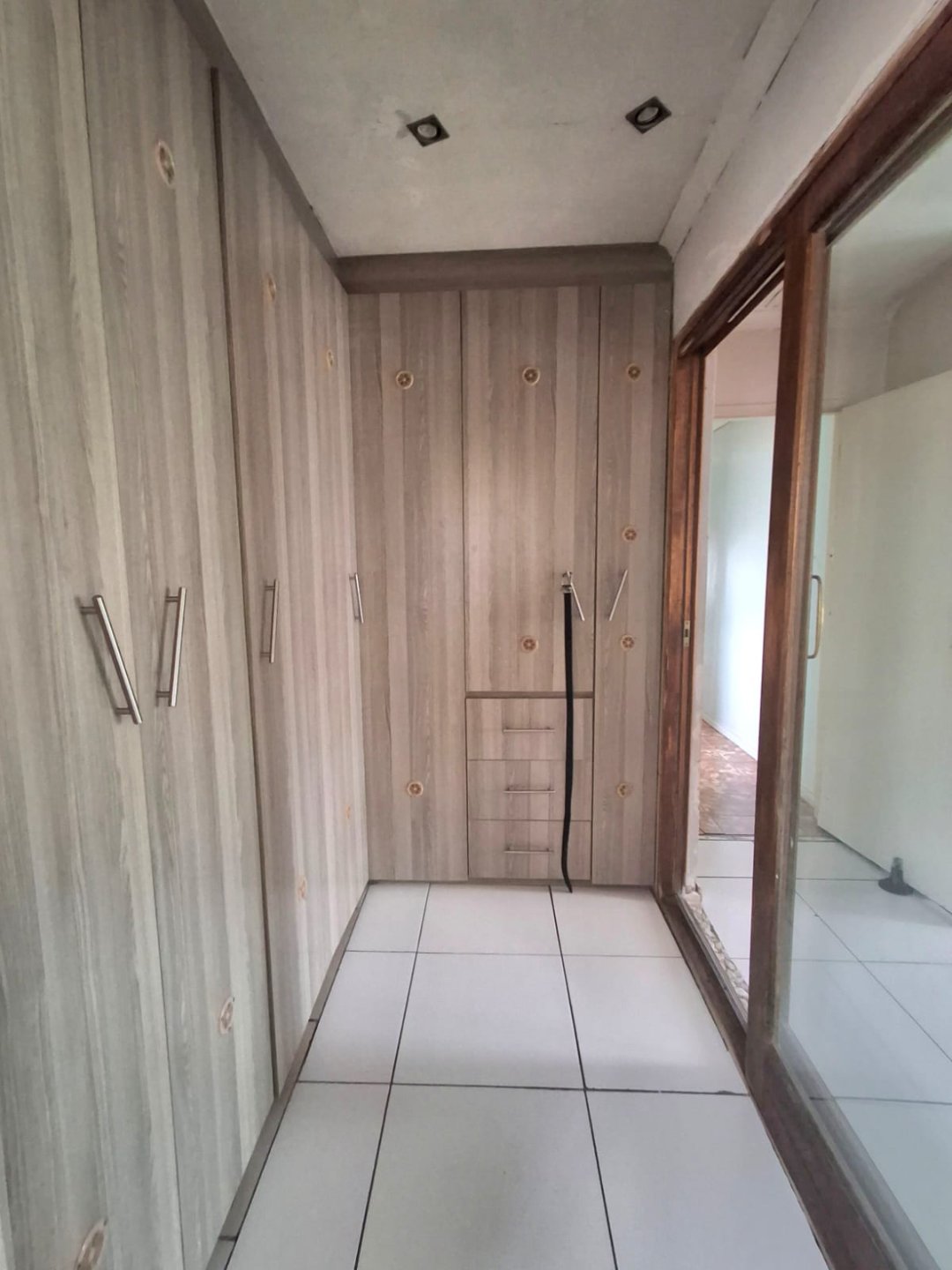 At the end of the passage lies the master suite — a true retreat. It boasts a walk-in closet, a luxurious en-suite bathroom, and a sliding door leading outdoors, creating a private sanctuary for rest and rejuvenation.