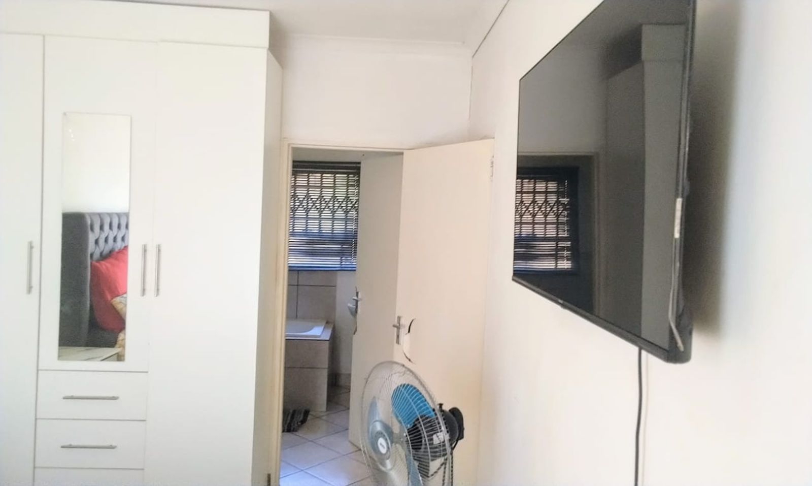 Offering a smart layout, the main bedroom is located upstairs and features its own ensuite bathroom providing a private retreat, separate from the two additional bedrooms downstairs. All bedrooms include full built in cupboards (BIC), offering ample storage space. The two downstairs bedrooms share a second full bathroom, making the home ideal for families or professionals seeking comfort, space, and functionality.