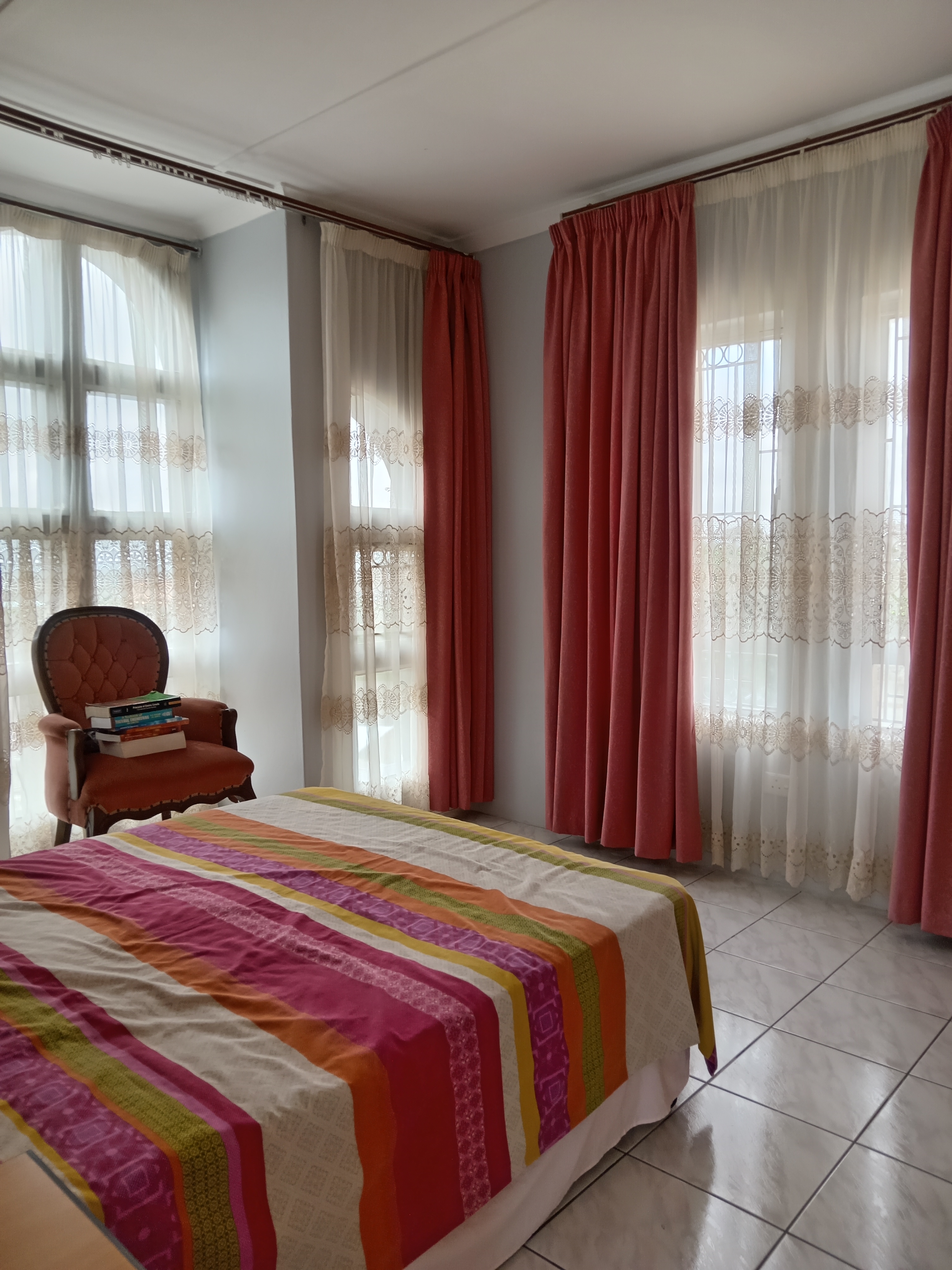 This home is fully tiled save for the staircase leading to the upper level and each room is fitted with built-in cupboards providing ample storage space.