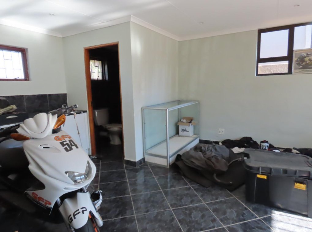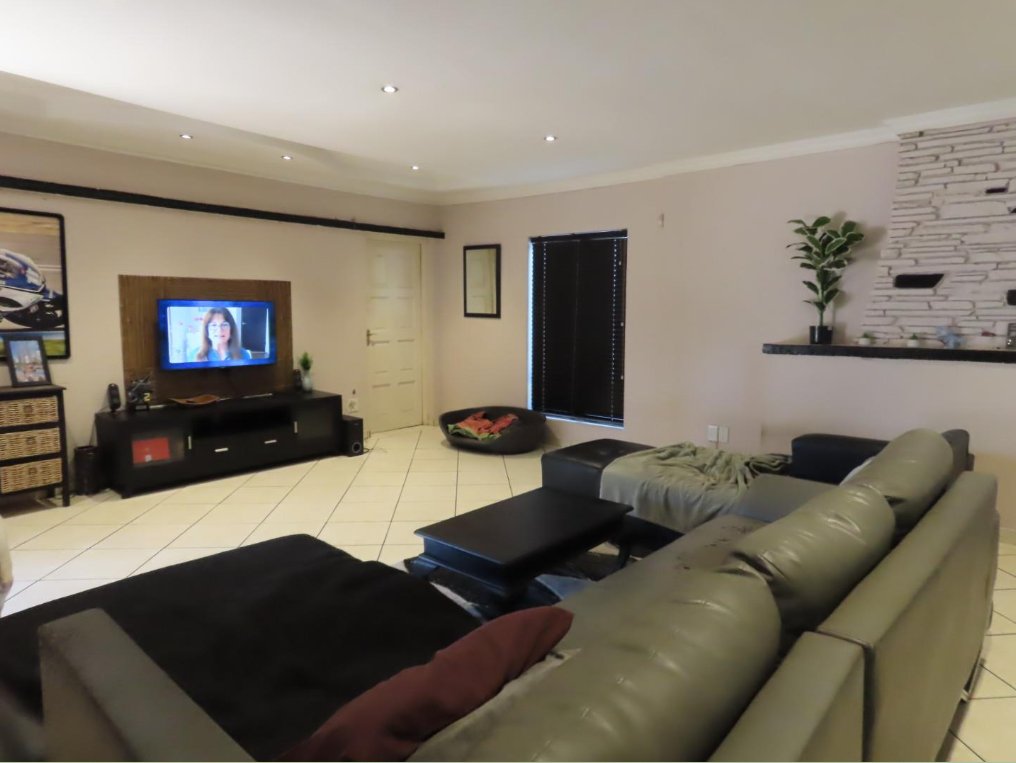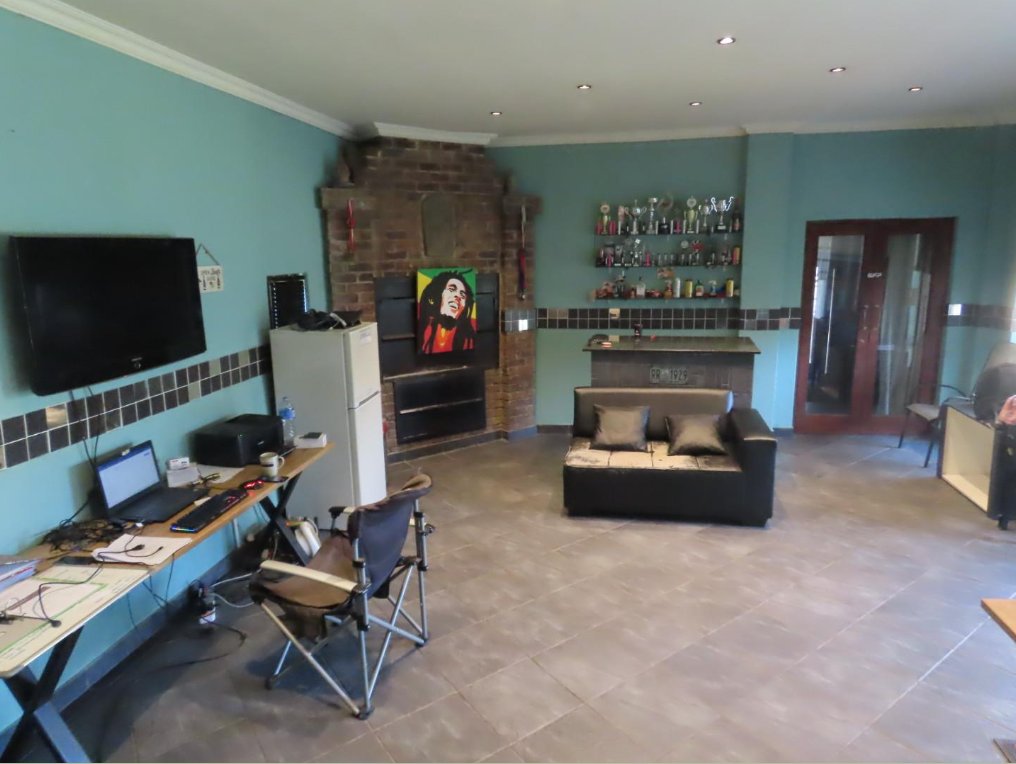 A covered entertainment area with a built-in braai is perfect for gatherings. The property also includes a separate cottage with a bedroom, lounge, and bathroom.