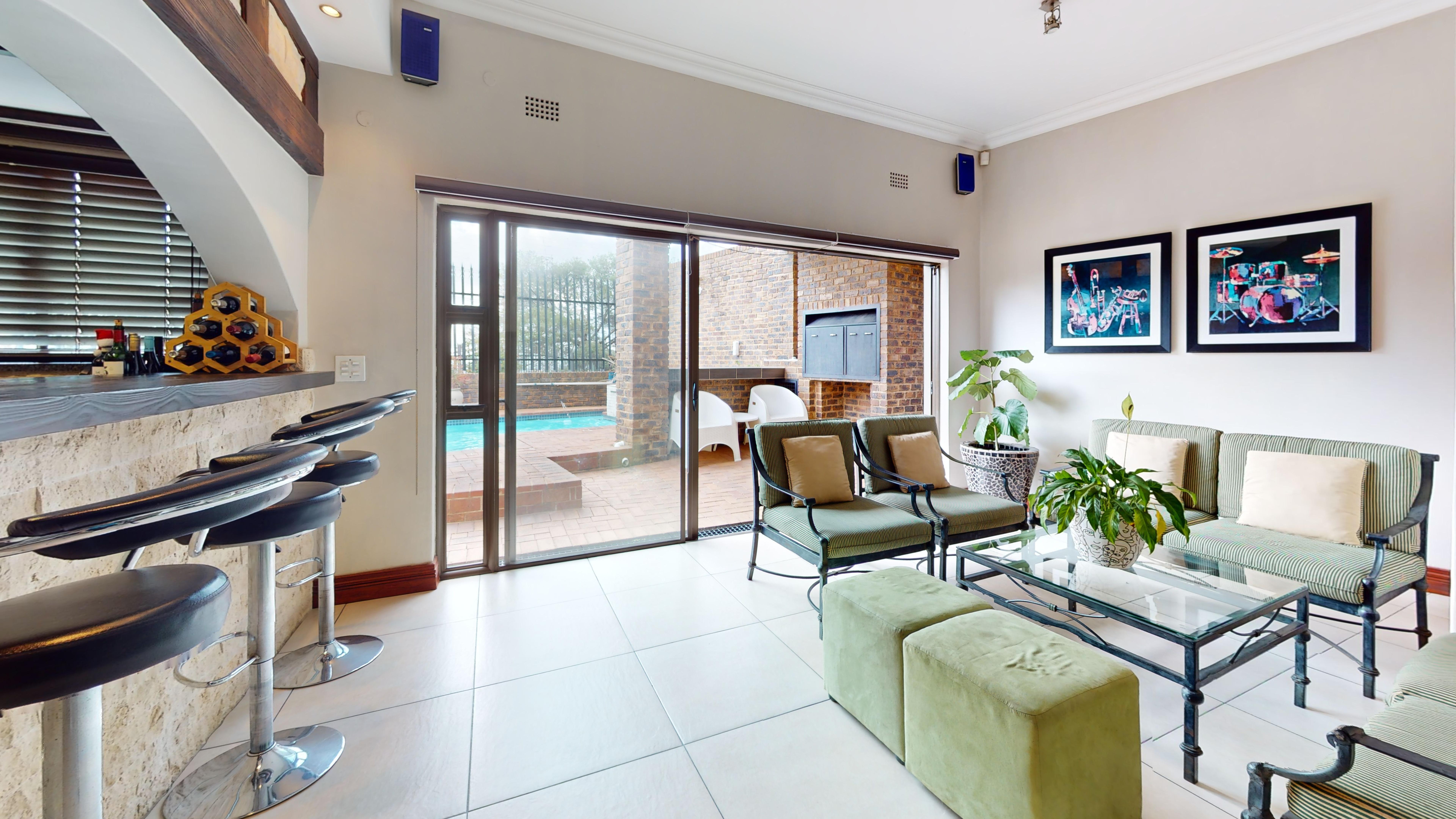 Summer Ready: A sparkling swimming pool serves as the centerpiece of the backyard, flanked by a built-in braai area for quintessential South African weekends.