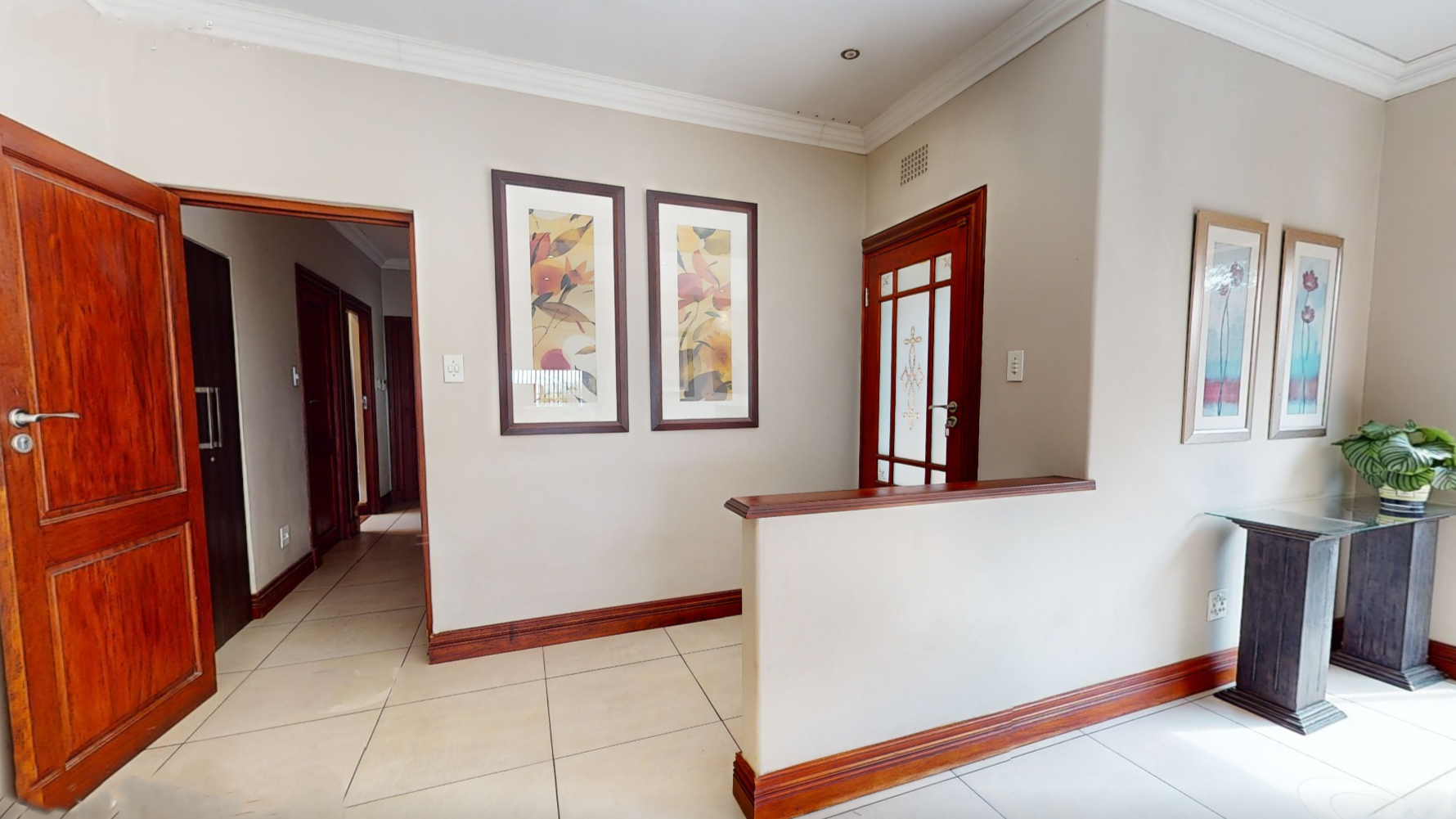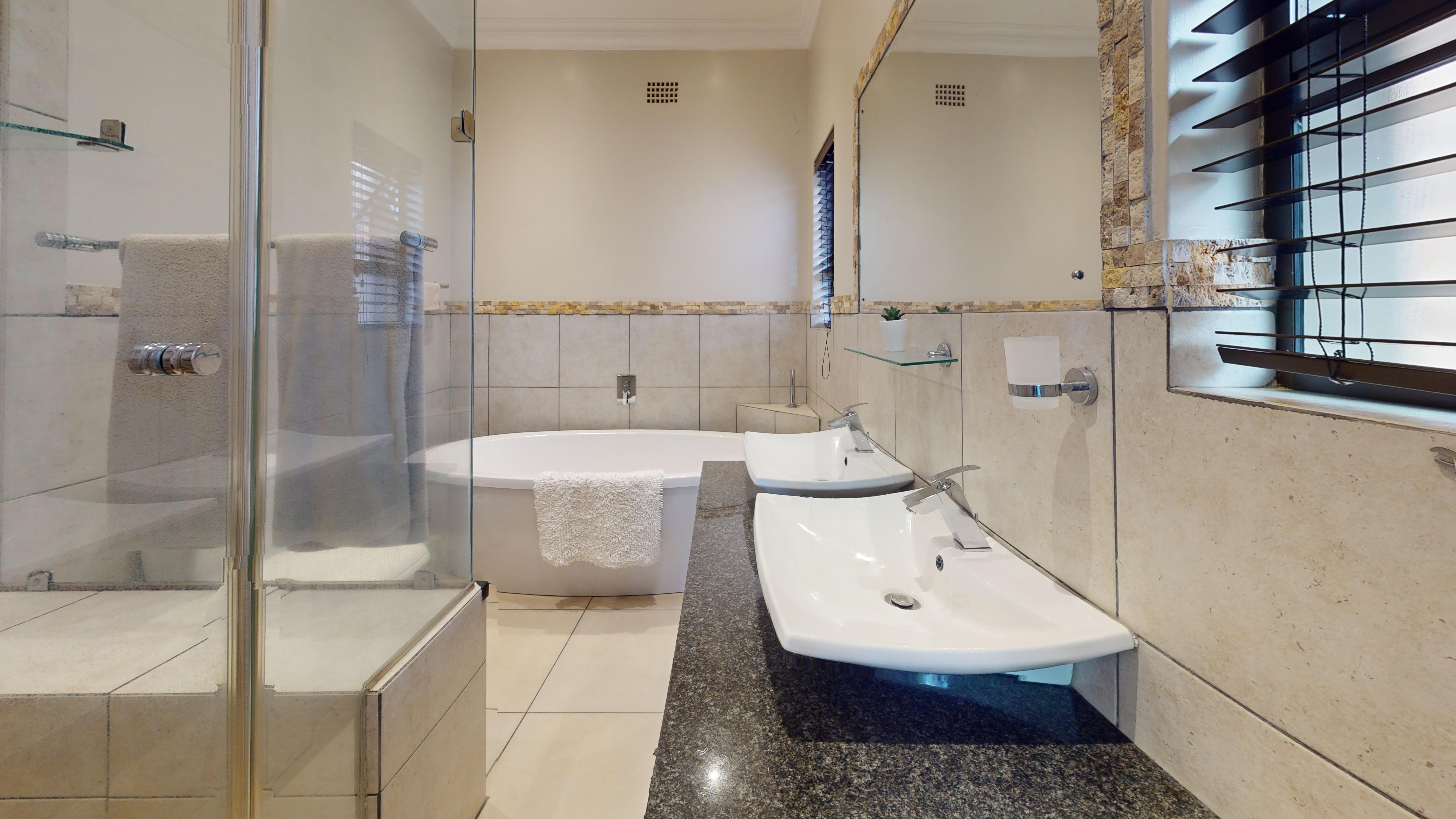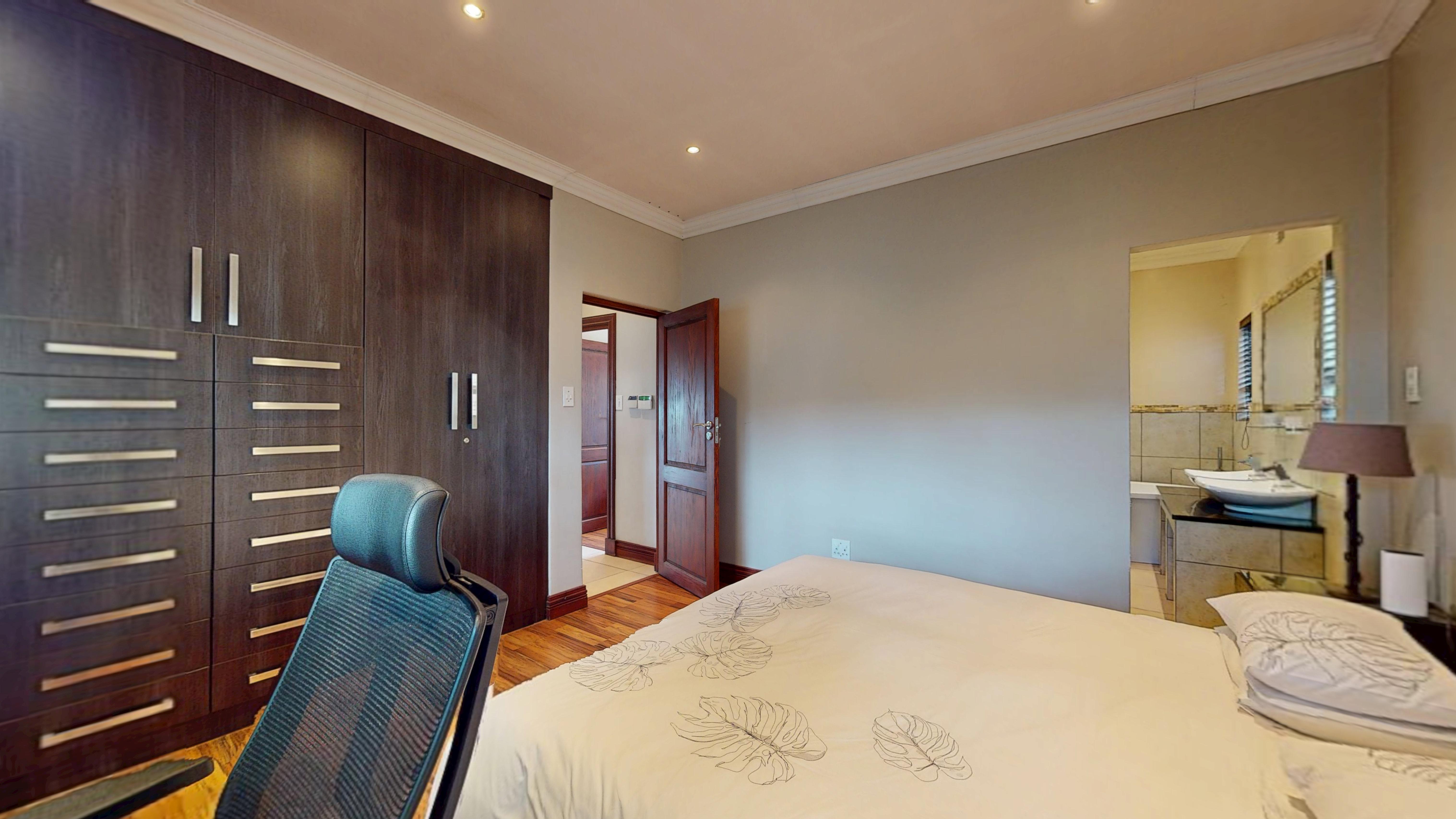 The main level houses three spacious bedrooms, all featuring sleek built-in cupboards. These are serviced by two full, modern bathrooms boasting high-end finishes that turn daily routines into spa-like experiences.