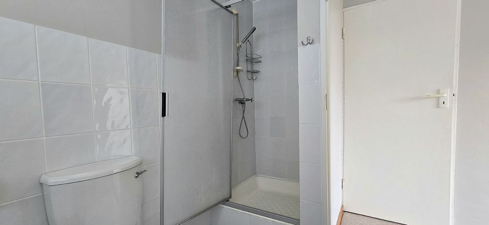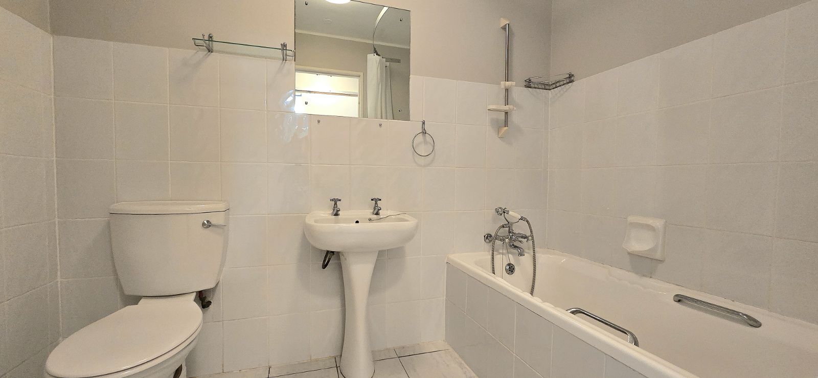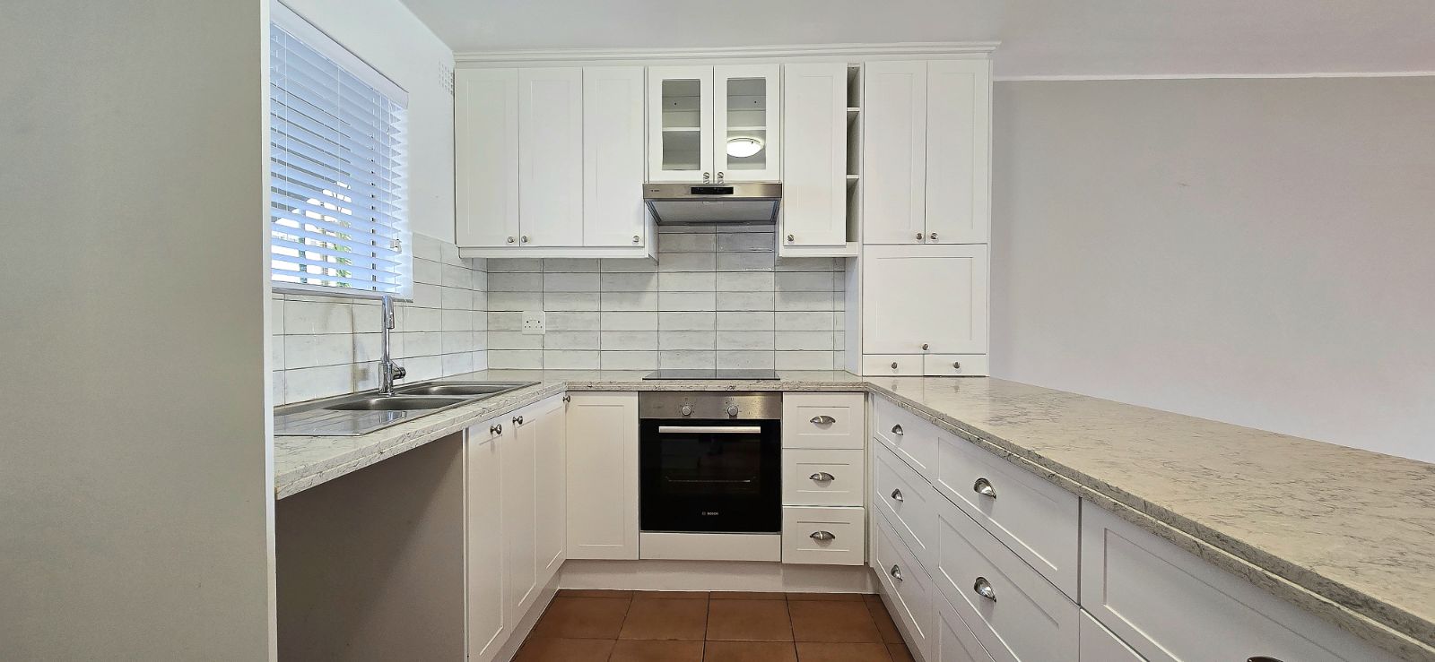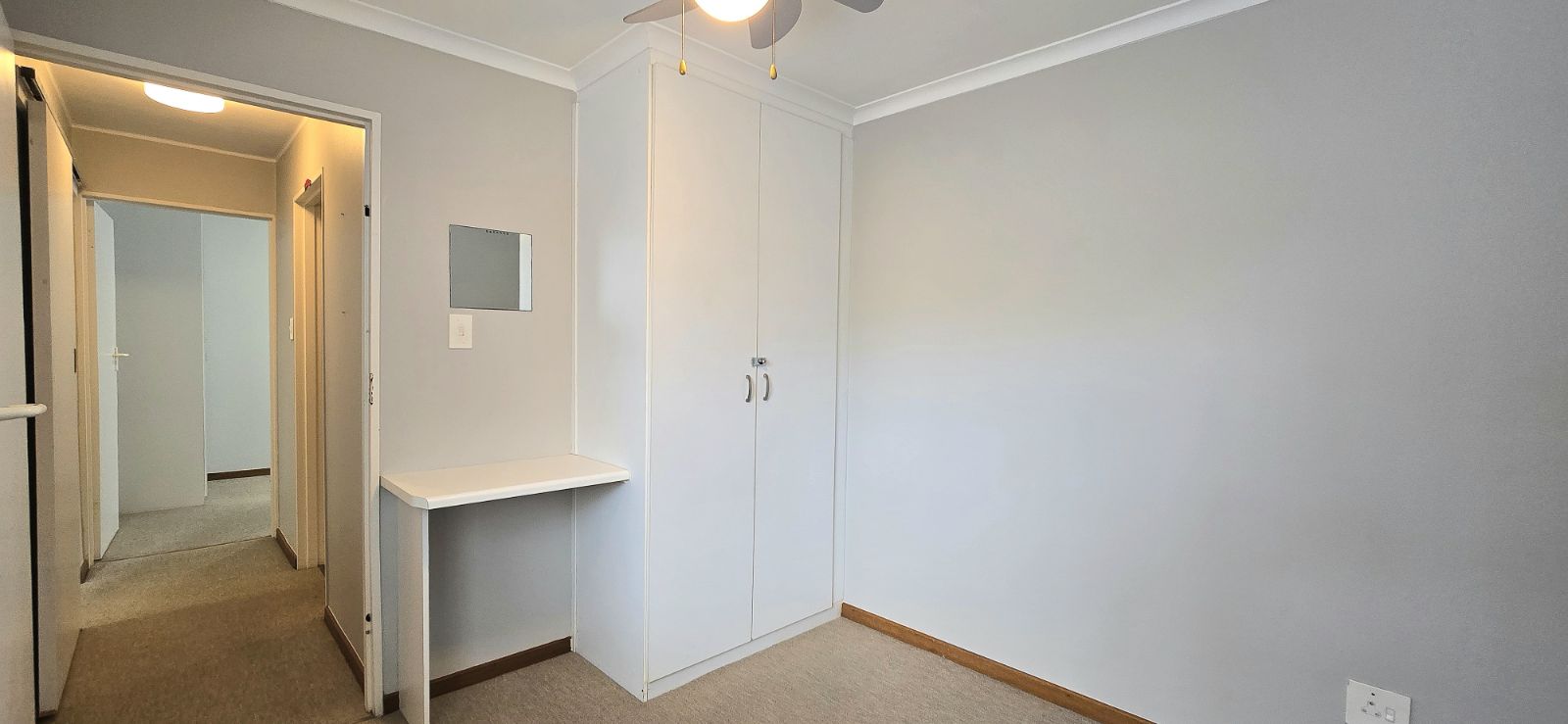 The property features three bedrooms, all with built-in cupboards. The main bedroom includes a full en-suite bathroom, while the remaining two bedrooms share a second bathroom.