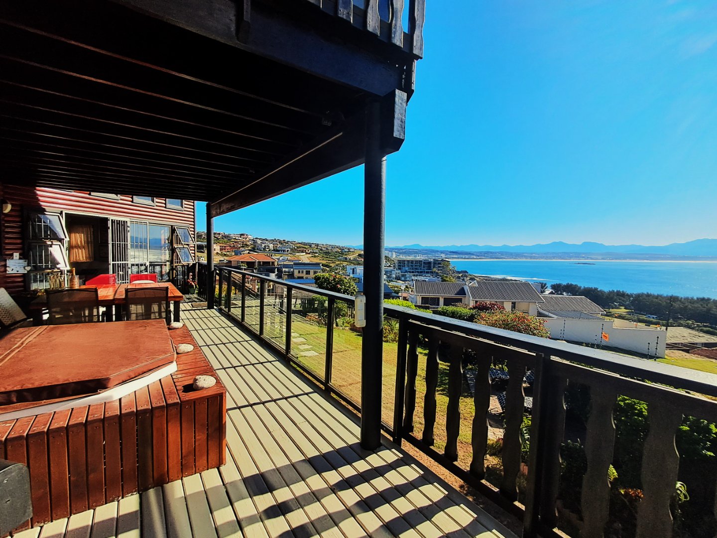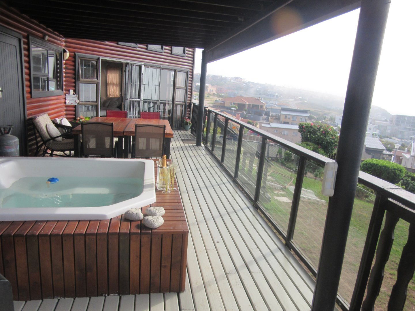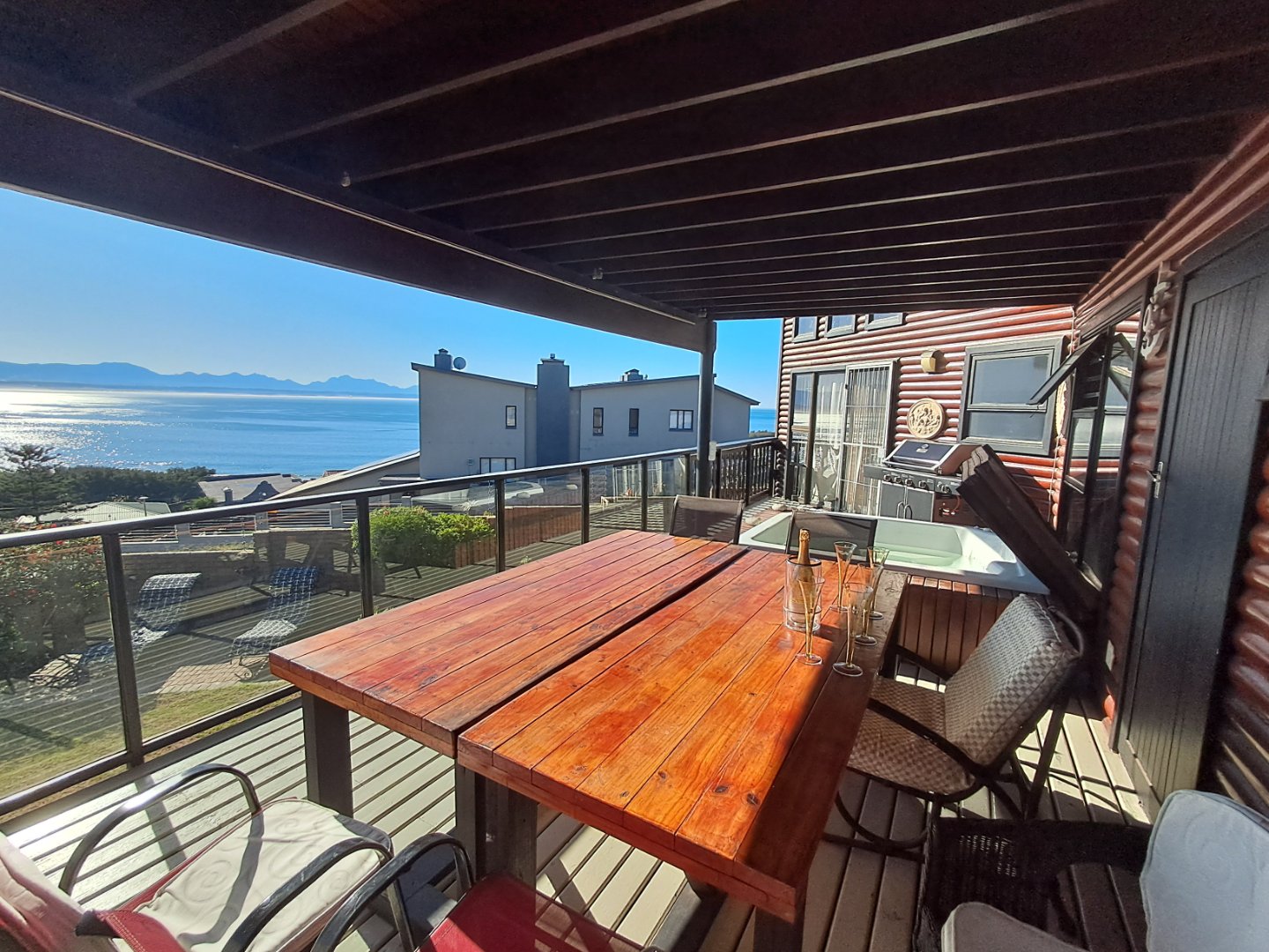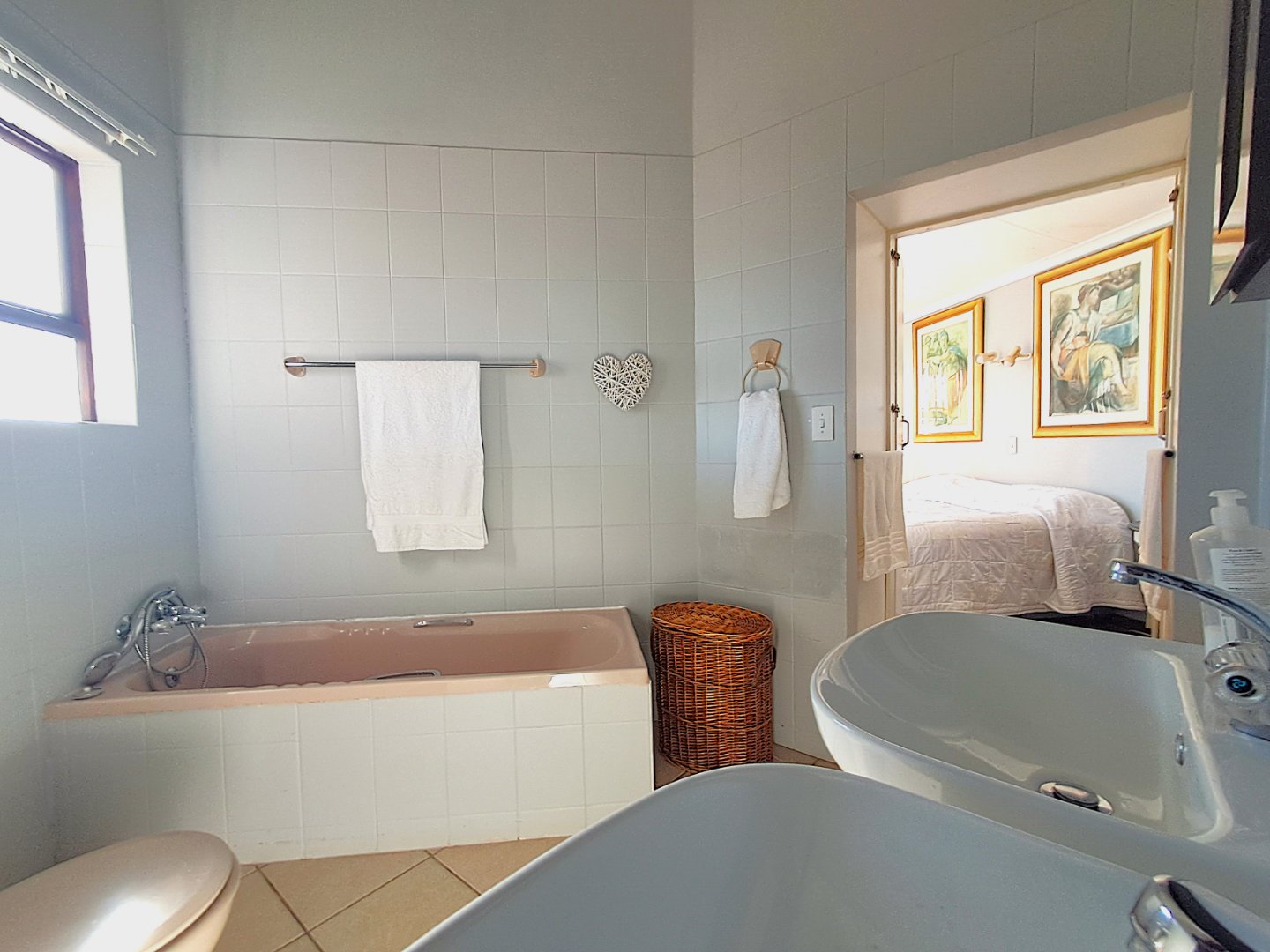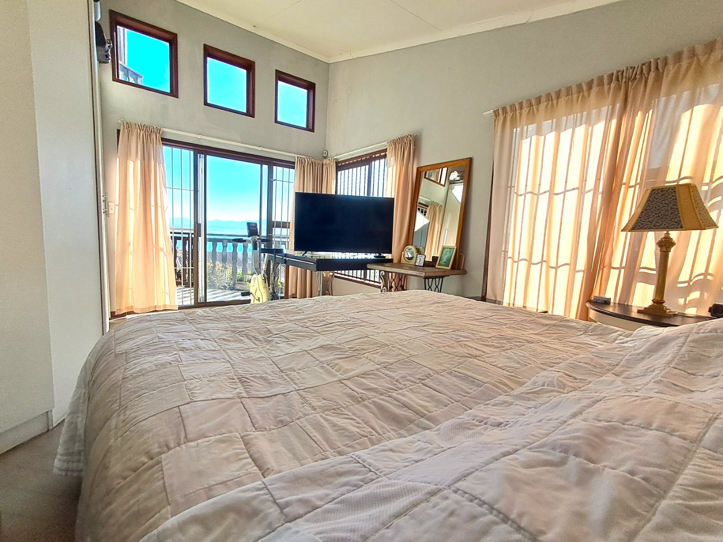 Wooden stairways lead to the master bedroom suite, boasting sleek en-suite bath, with a shower, generous closets and wonderful views of the Mossel Bay Bakke beach.