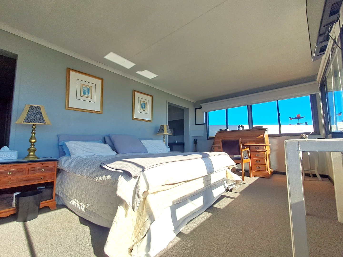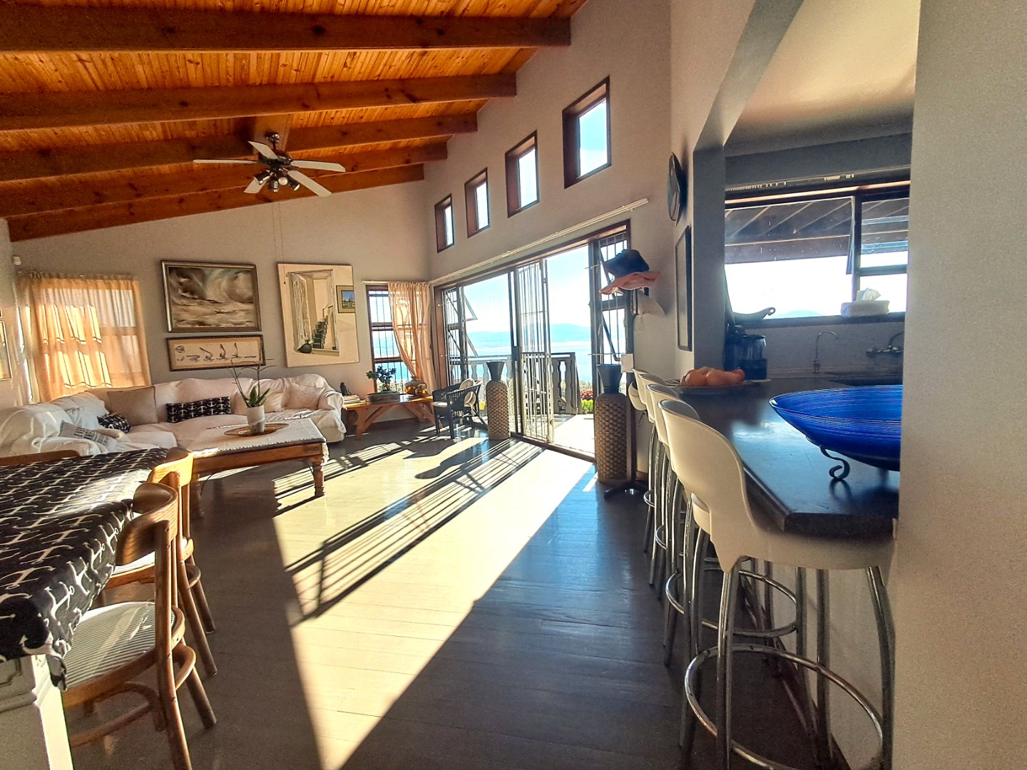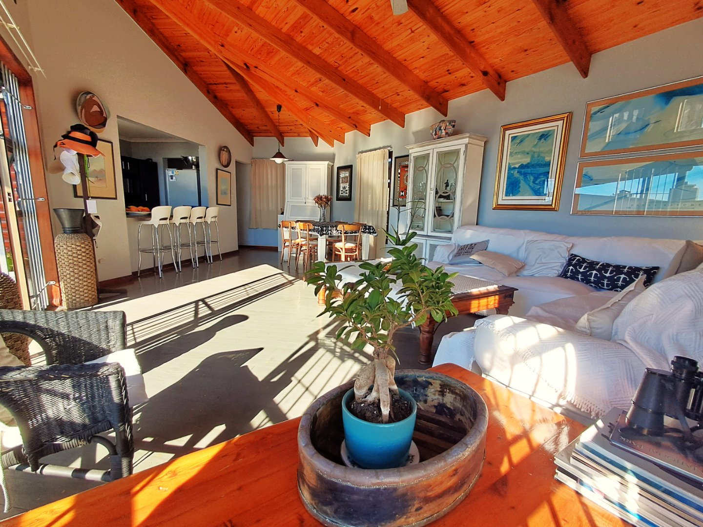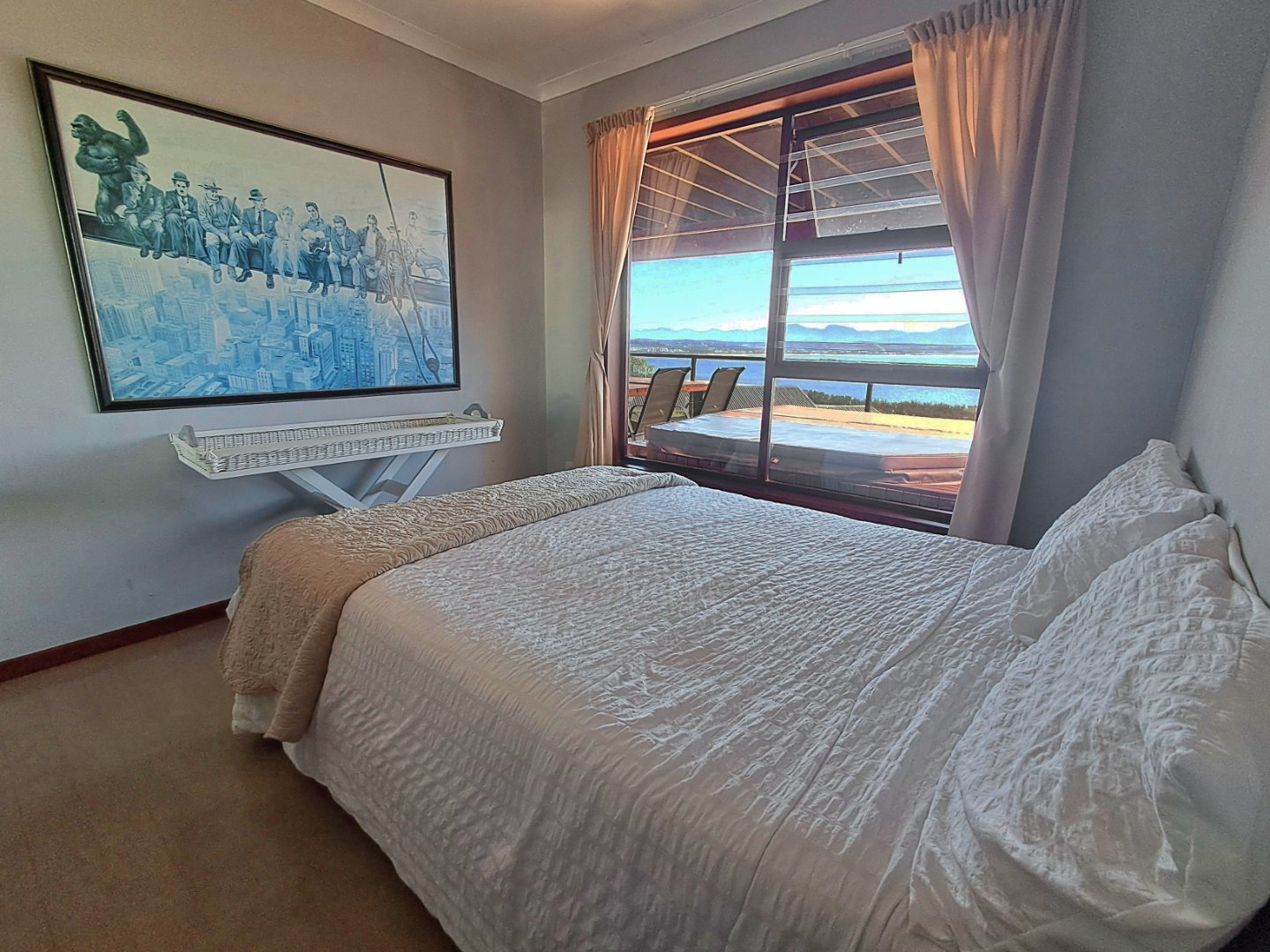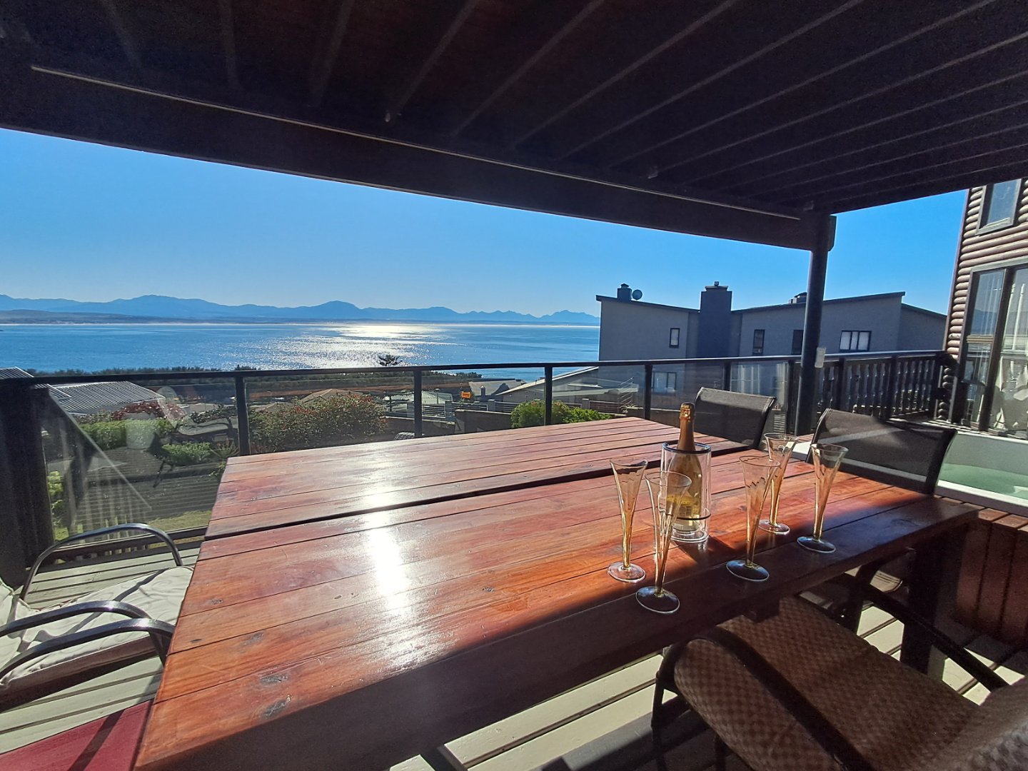Wooden stairways lead to the master bedroom suite, boasting sleek en-suite bath, with a shower, generous closets and wonderful views of the Mossel Bay Bakke beach.