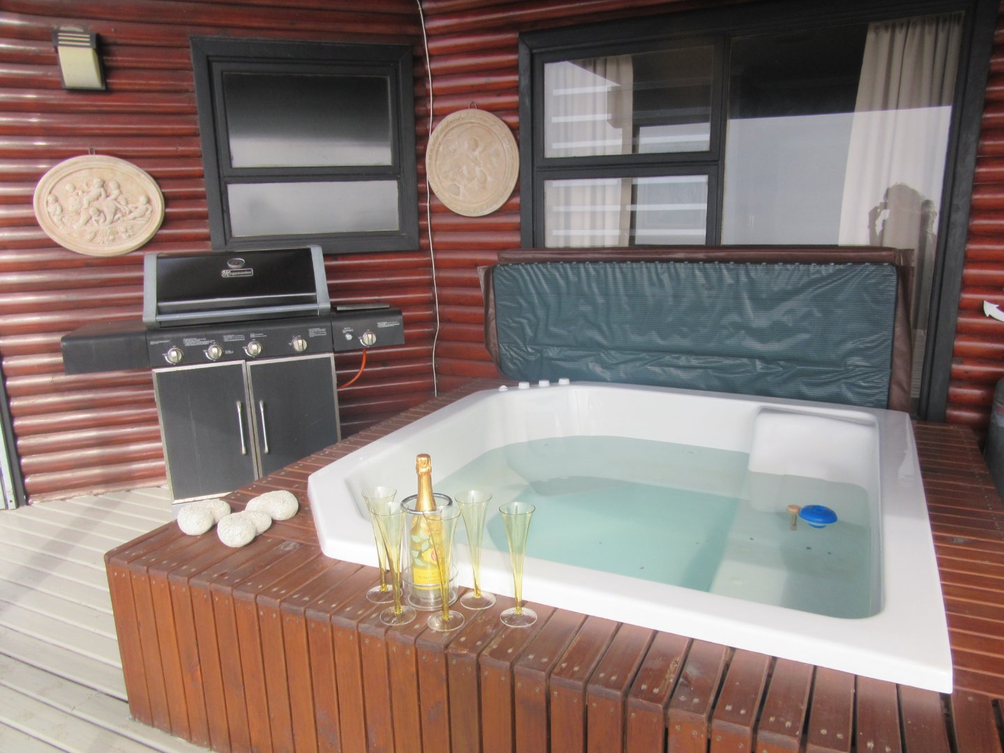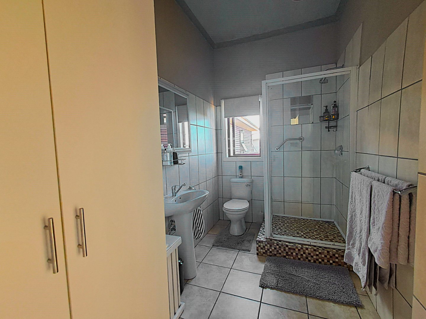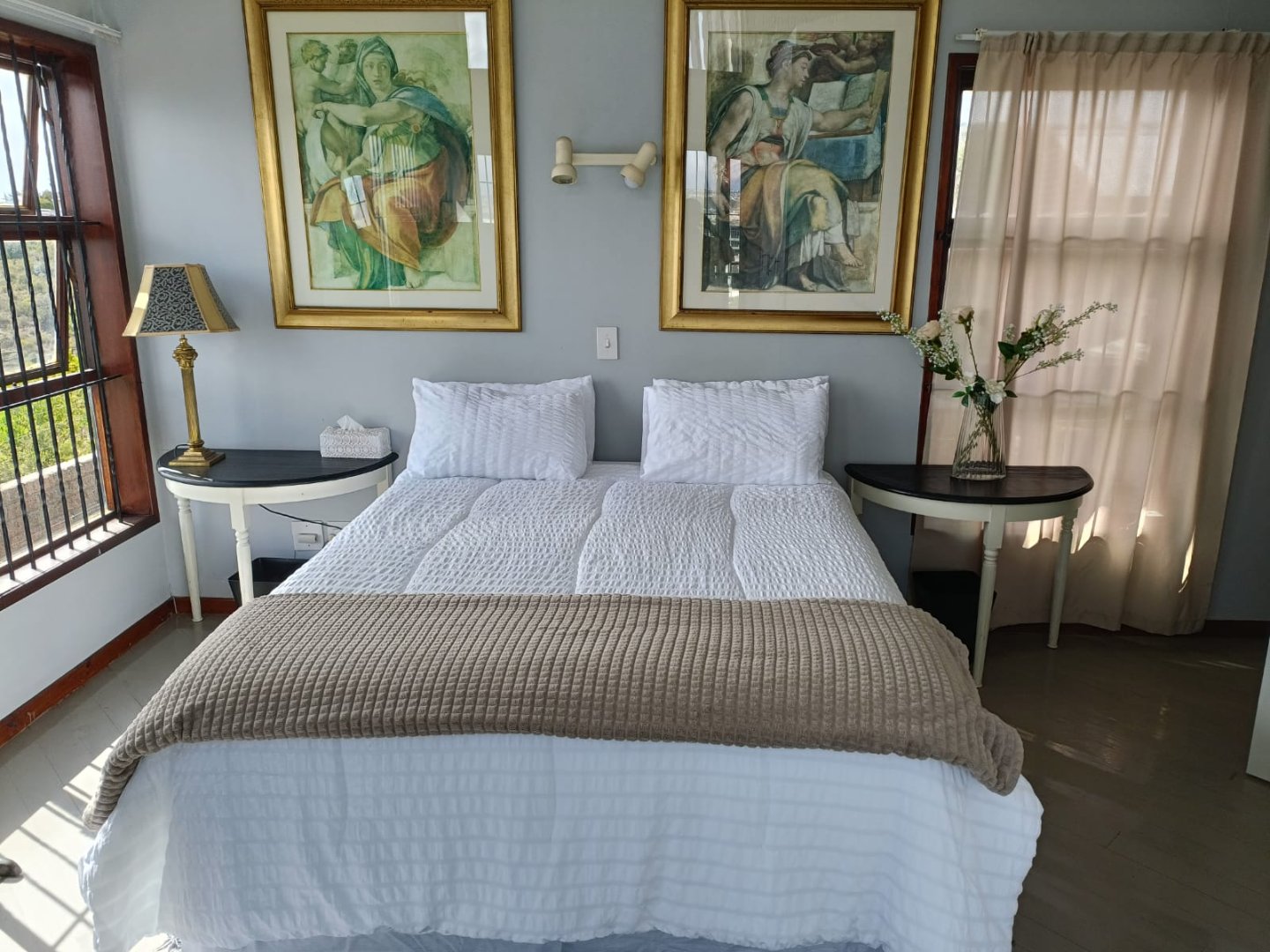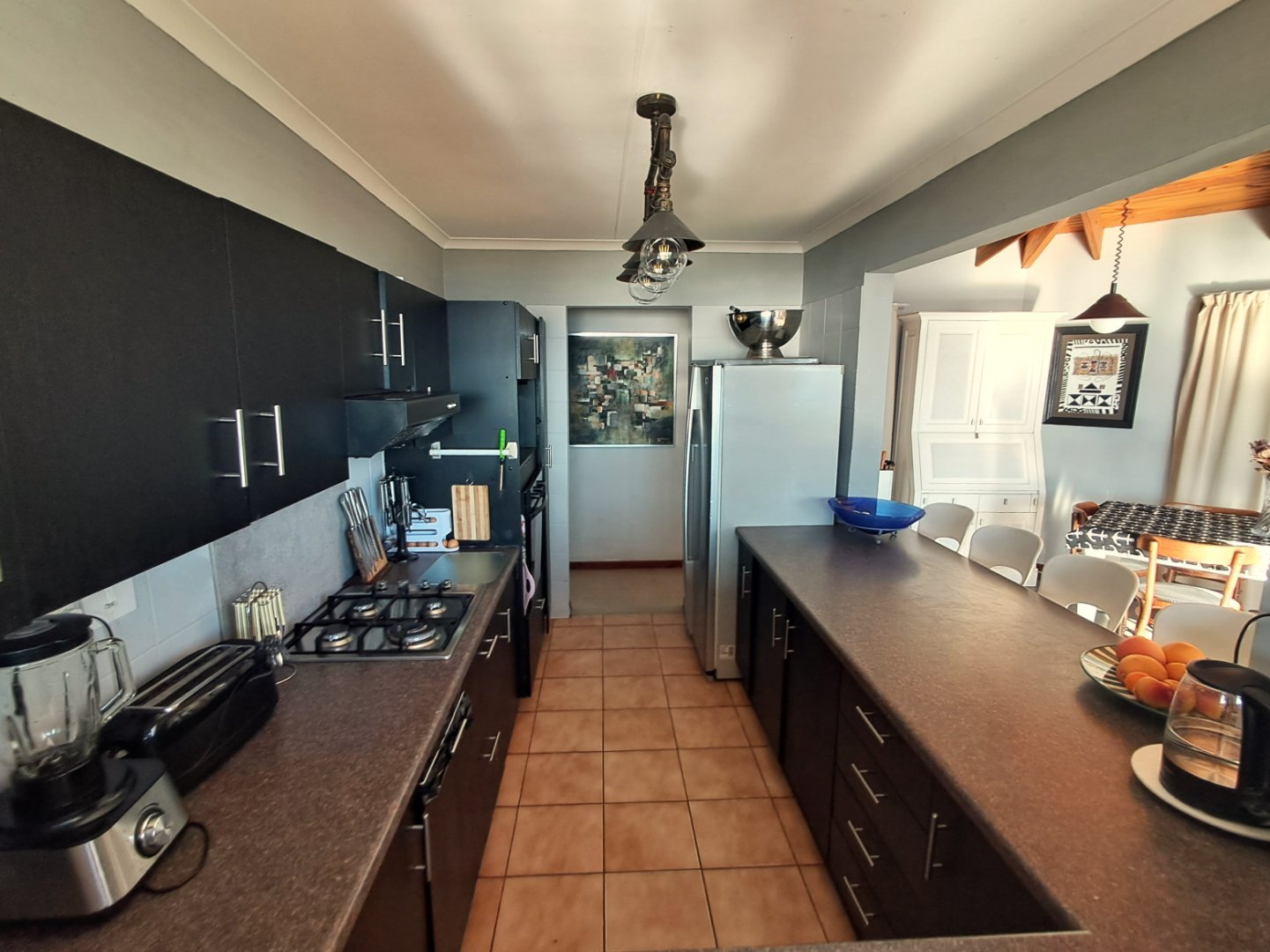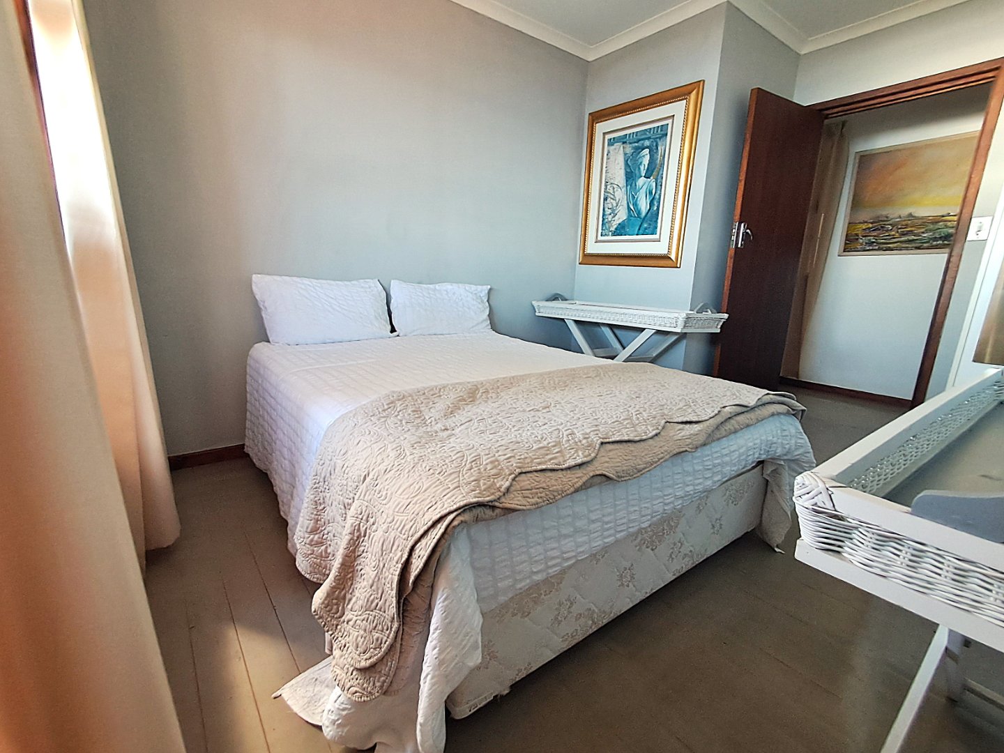 Wooden stairways lead to the master bedroom suite, boasting sleek en-suite bath, with a shower, generous closets and wonderful views of the Mossel Bay Bakke beach.
