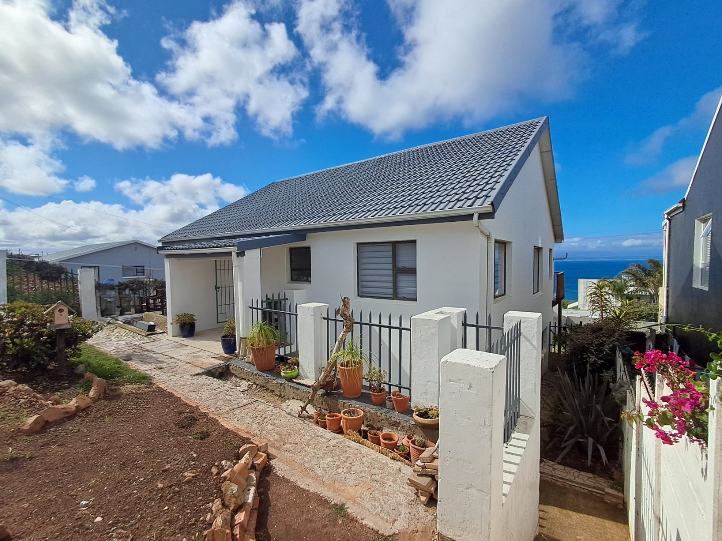 Walking distance to De Bakke Beach and beautiful sea views from this house in Mossel Bay. 3 minutes' drive to Santos or Diaz beaches.