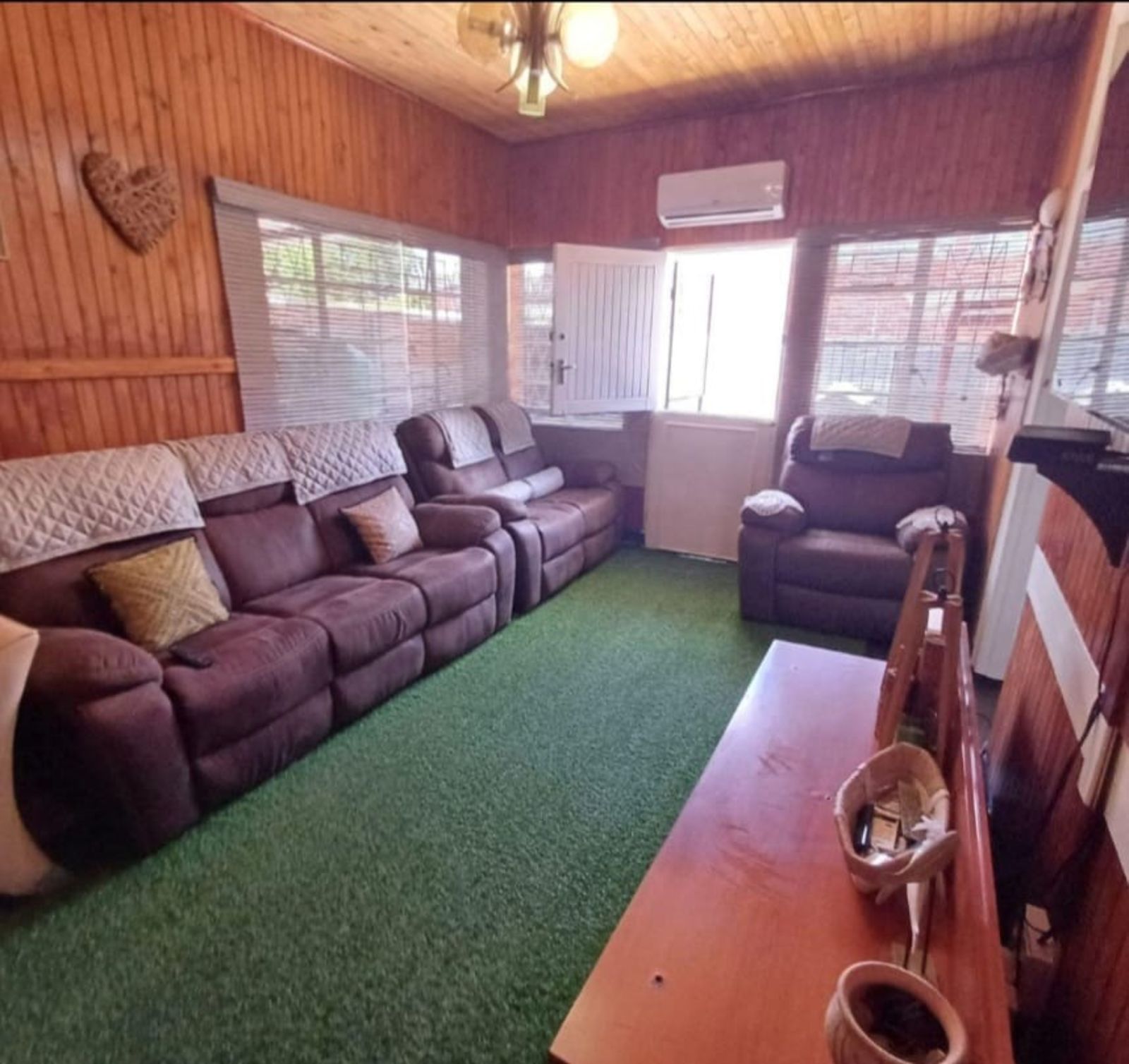 With the accent on value - this is a tempting buy. It offers a spacious tiled lounge and dining area with ceiling fans. 3 bedrooms all with built in cupboards and 2 bathrooms- main bedroom has a en-suite and a cozy fireplace for cold winter evenings.
