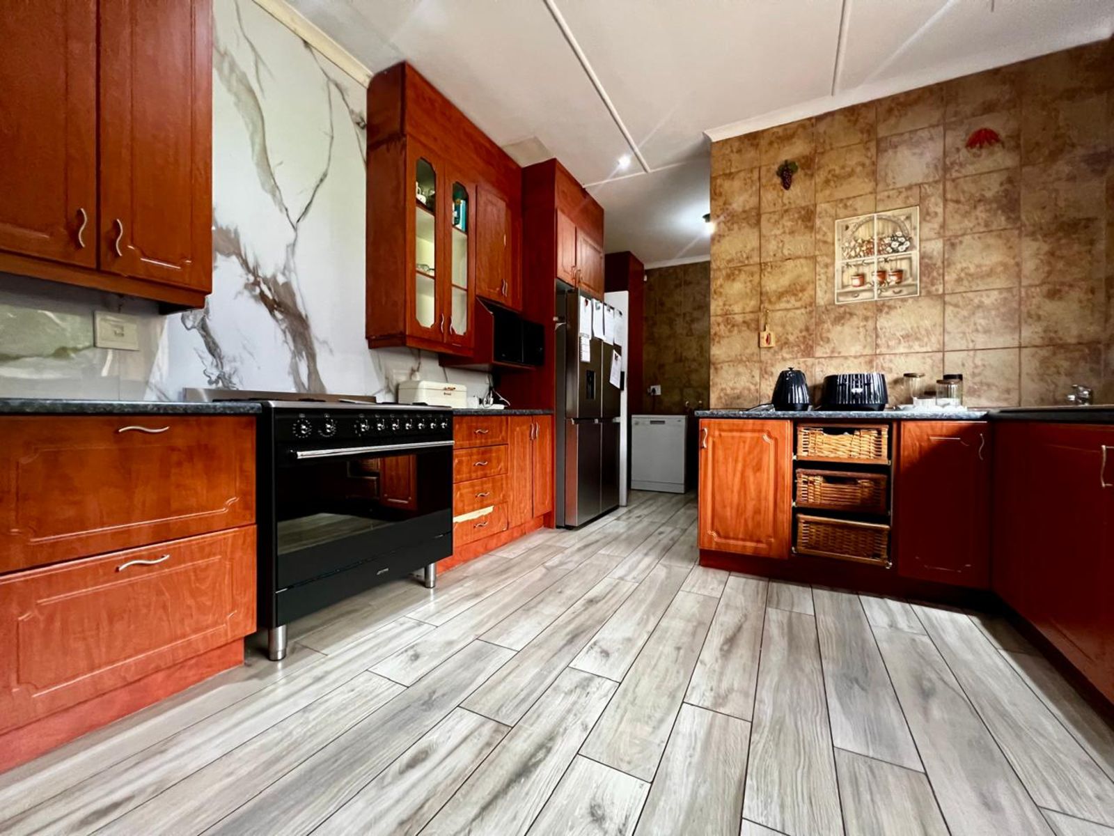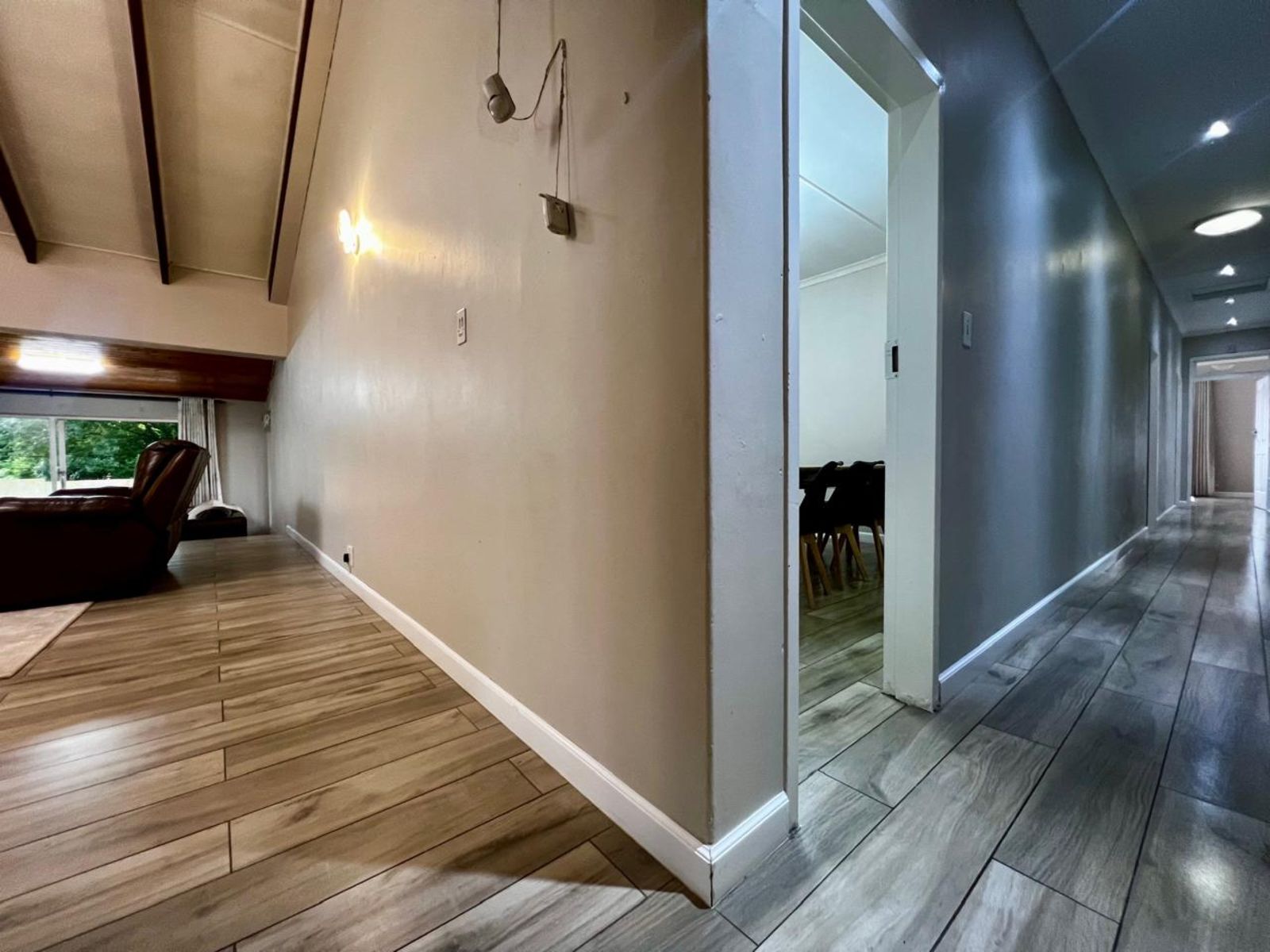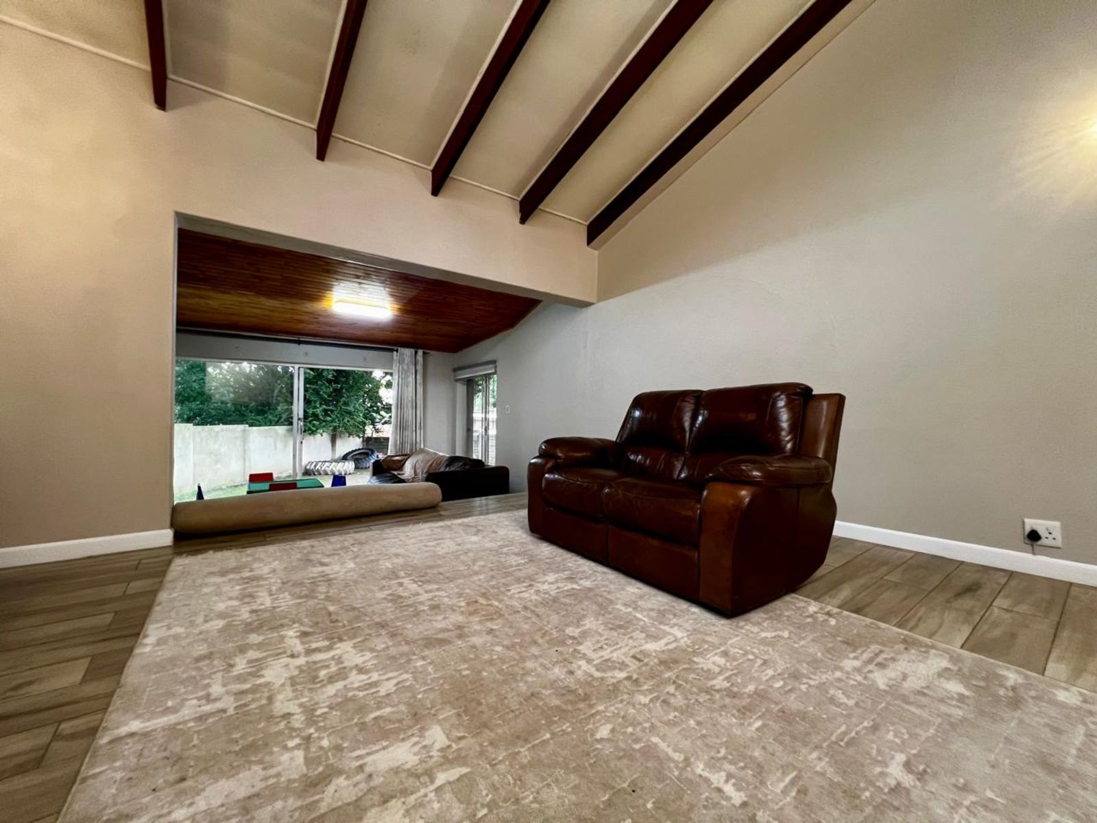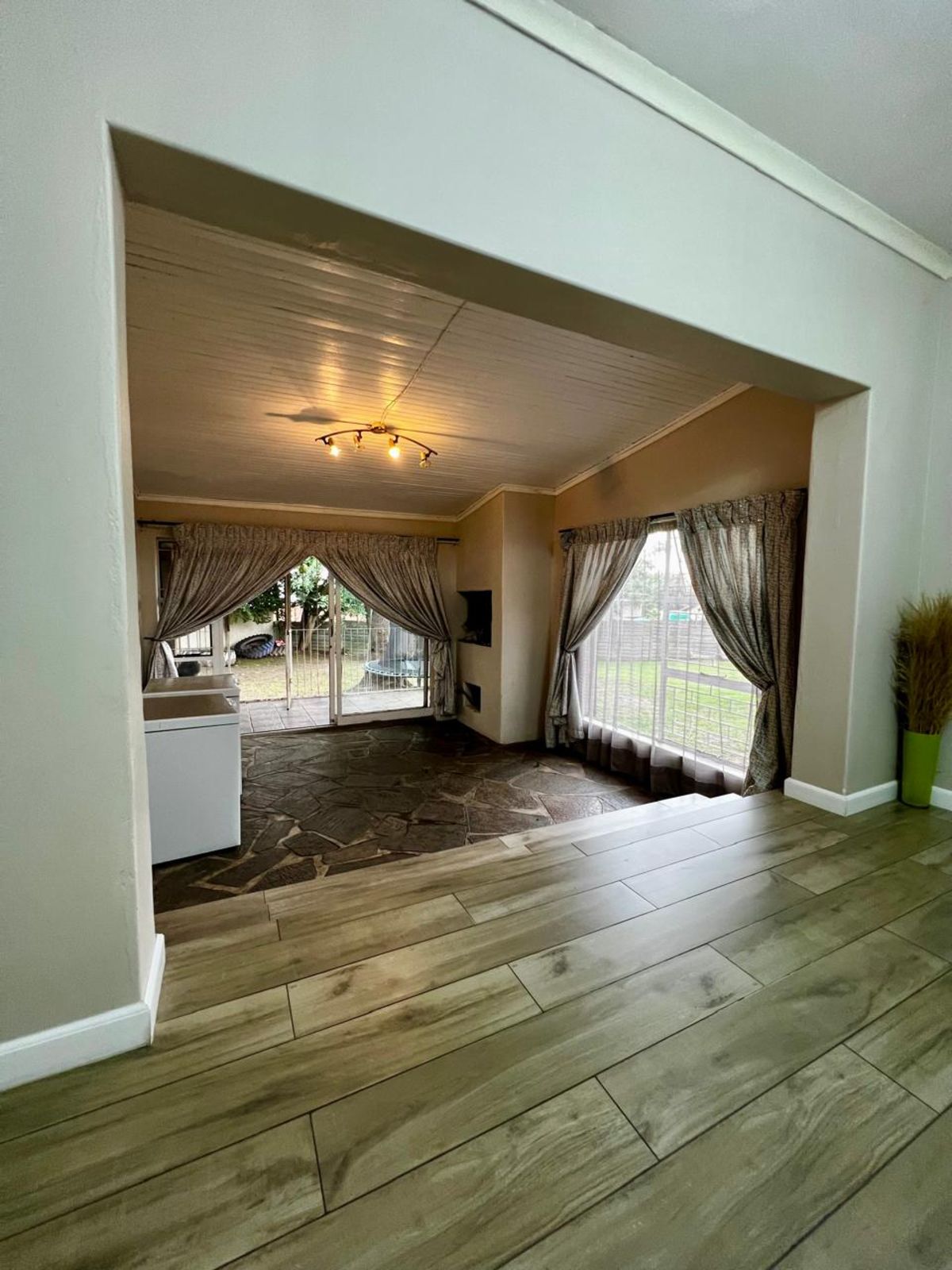 Generous living areas include two interleading lounges with high ceilings and a welcoming fireplace, plus a dining space flowing to an indoor braai room and enclosed patio — ideal for relaxed entertaining.