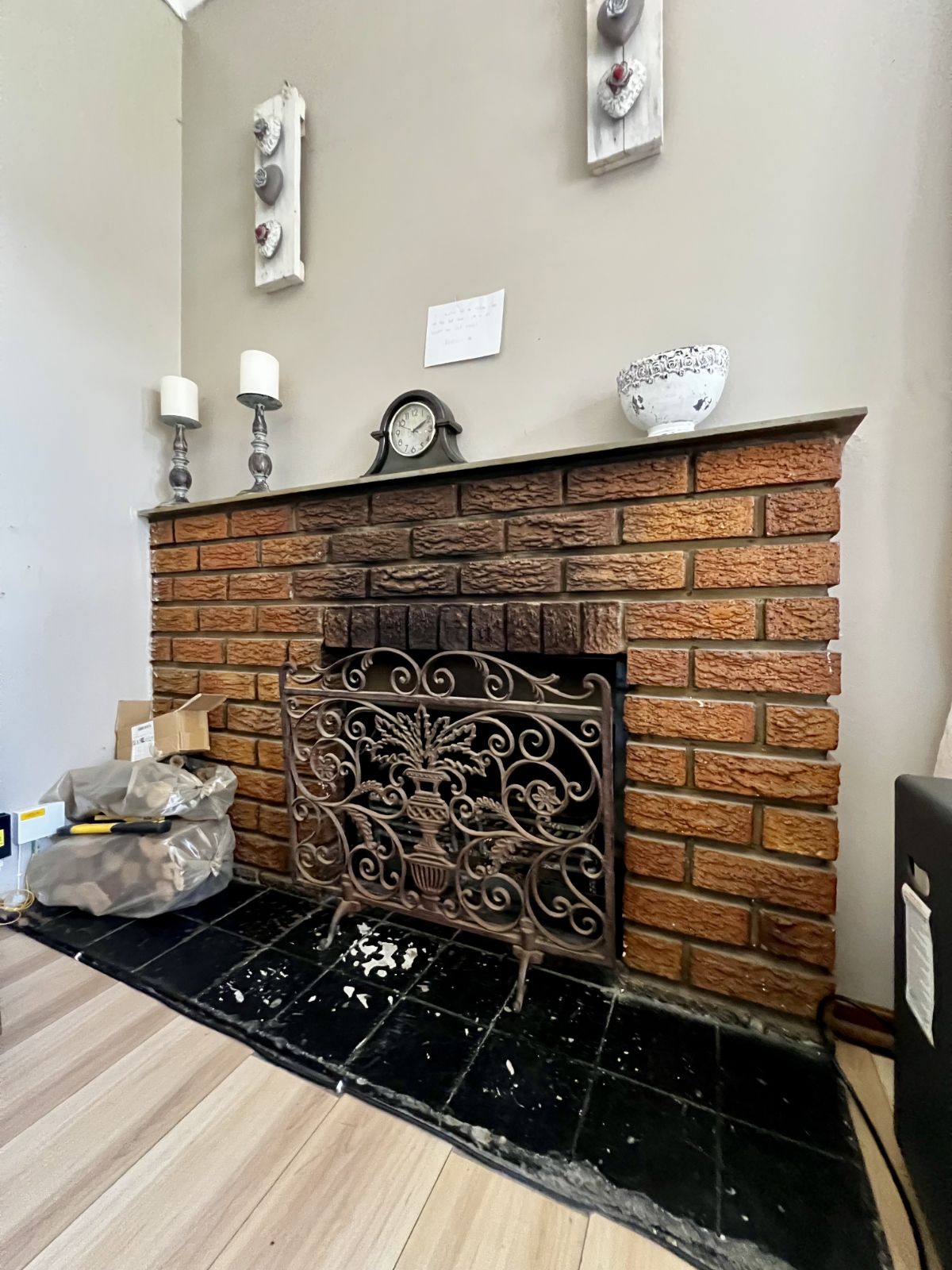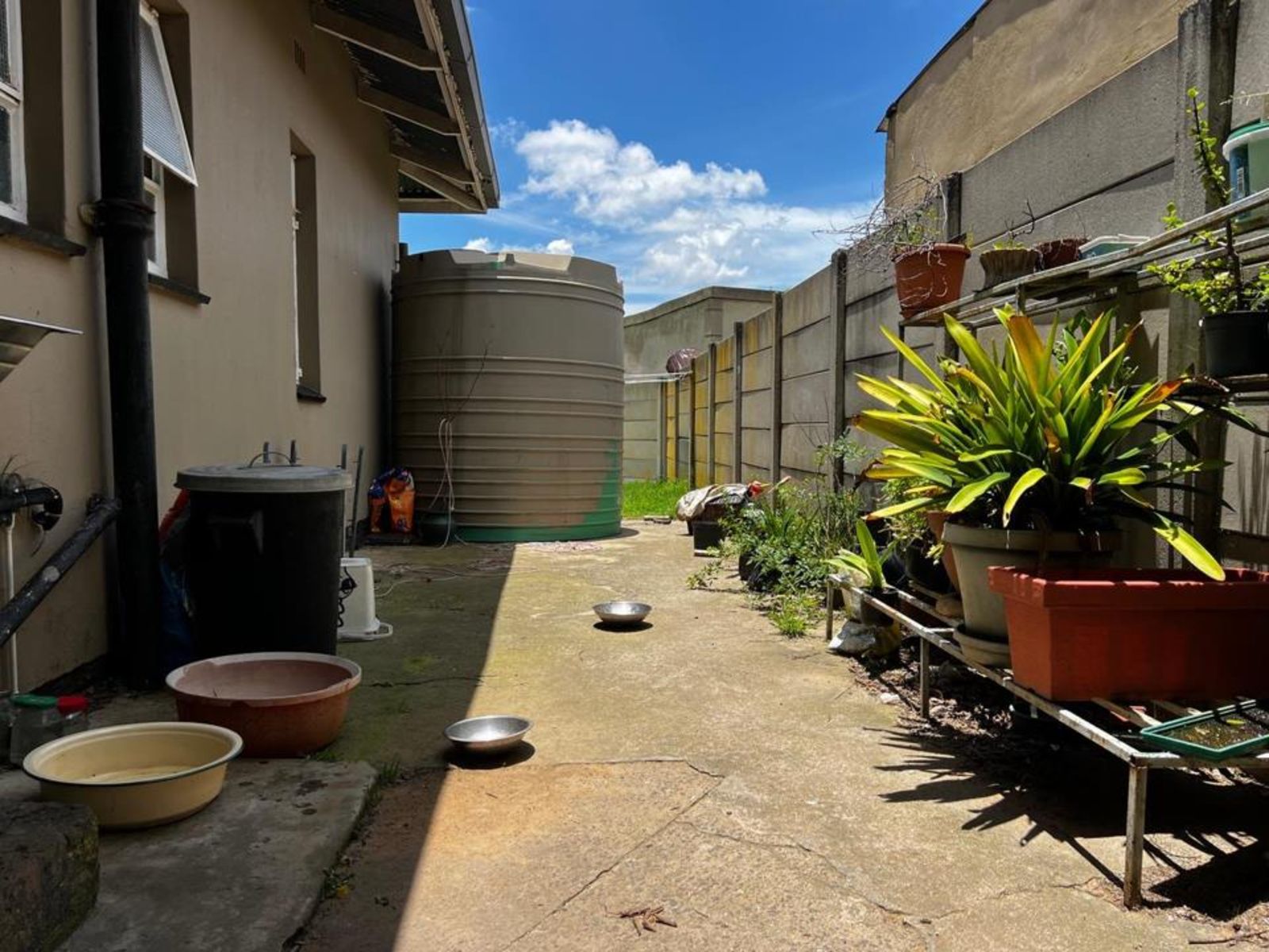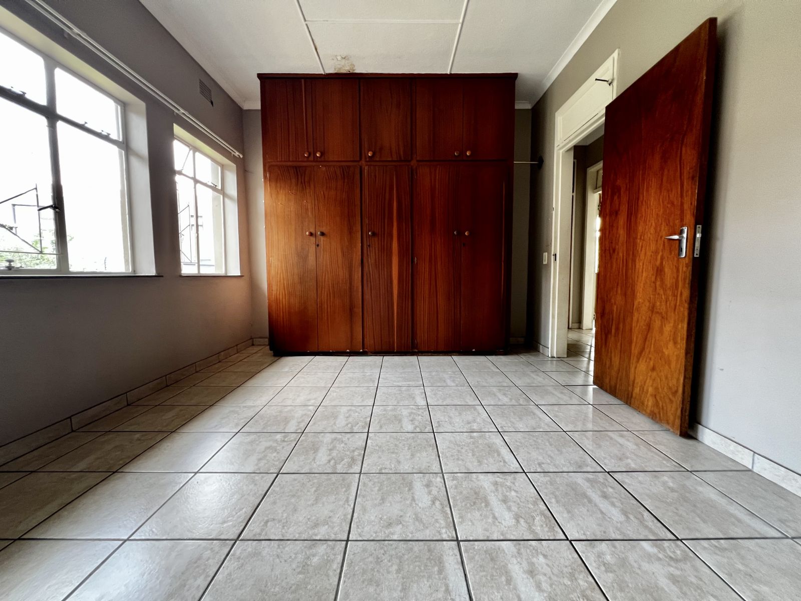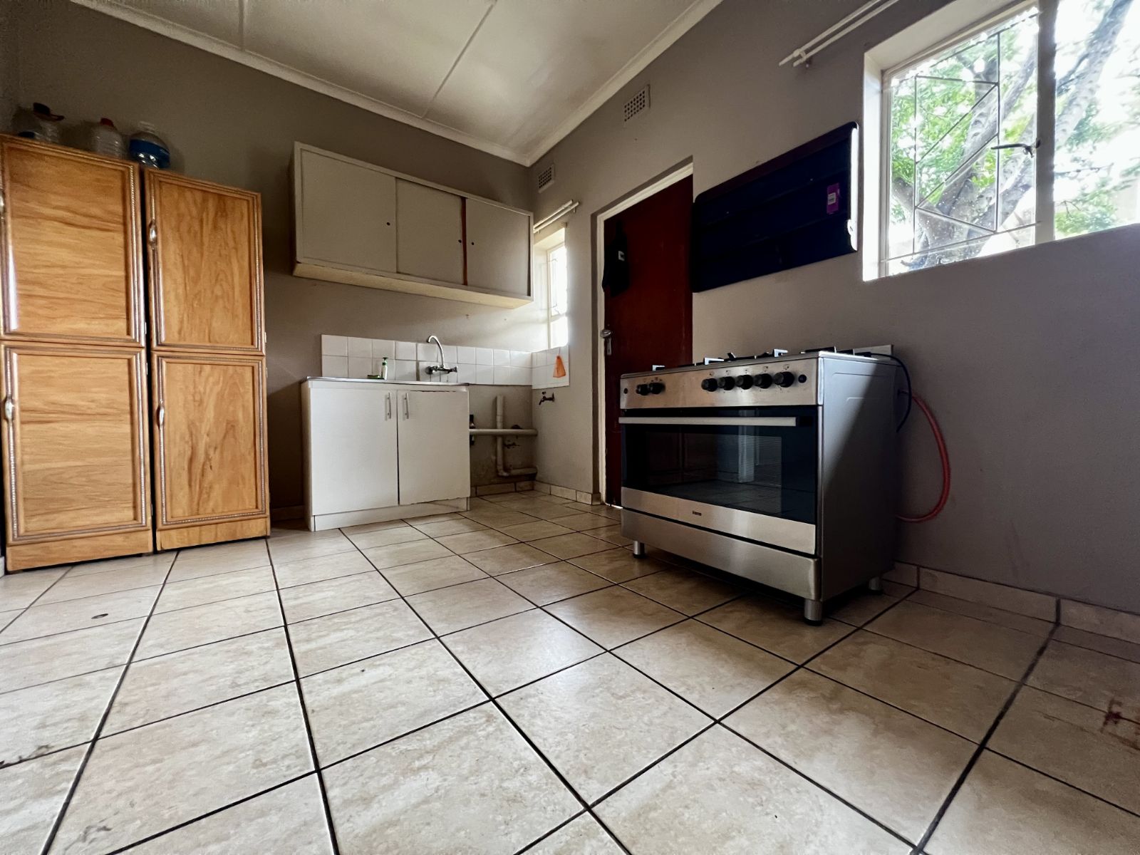 Just steps away from Laerskool JJ van der Merwe the property features a warm, inviting living area with laminated floors, tiles, a fireplace, and glass doors that open to the back garden.