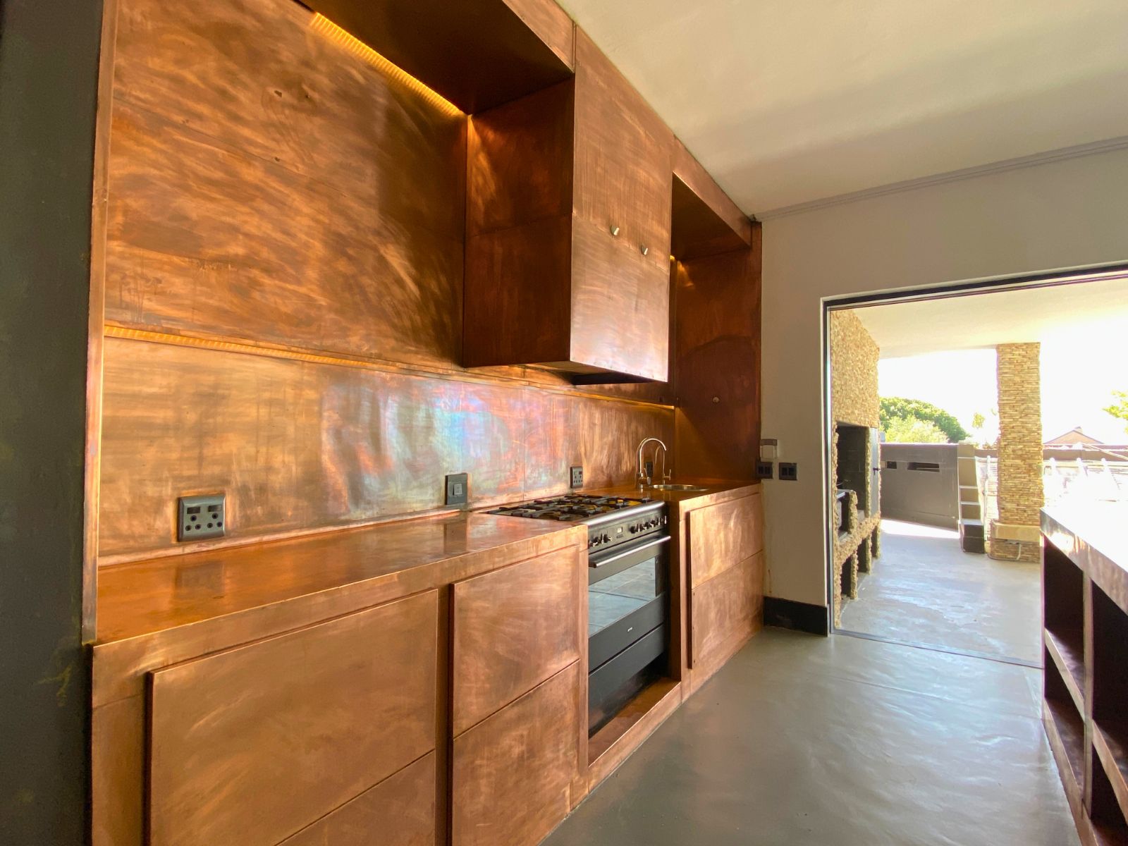 - Gourmet Kitchen with Copper Finishes: The unique copper-clad kitchen combines rustic charm with modern sophistication. The copper sheeting on the cabinets adds a luxurious, reflective touch, enhancing the warm ambiance of the home. Equipped with a gas stove, electric oven, and abundant storage, plus a scullery and pantry, it ensures a practical yet stylish cooking experience.