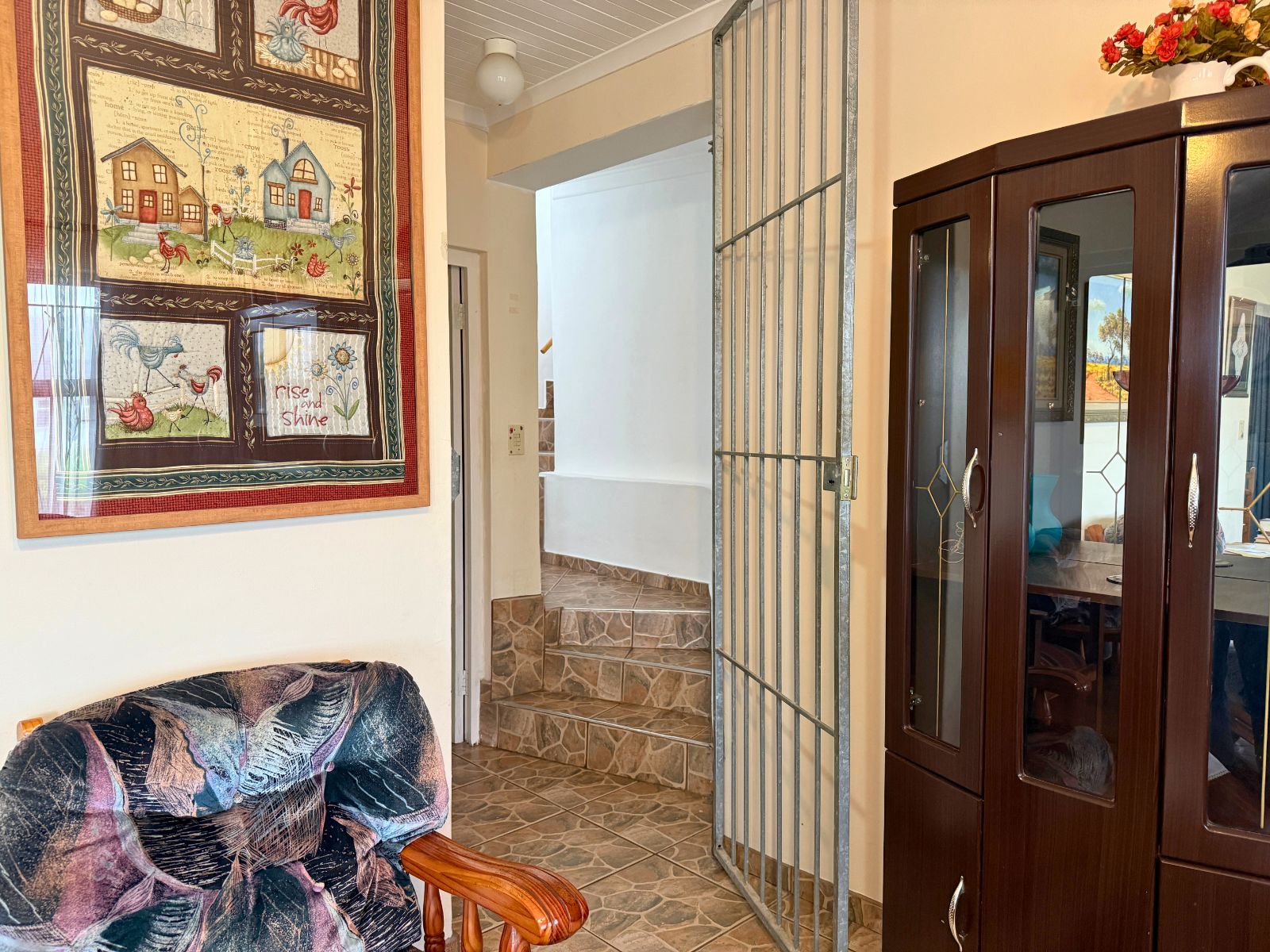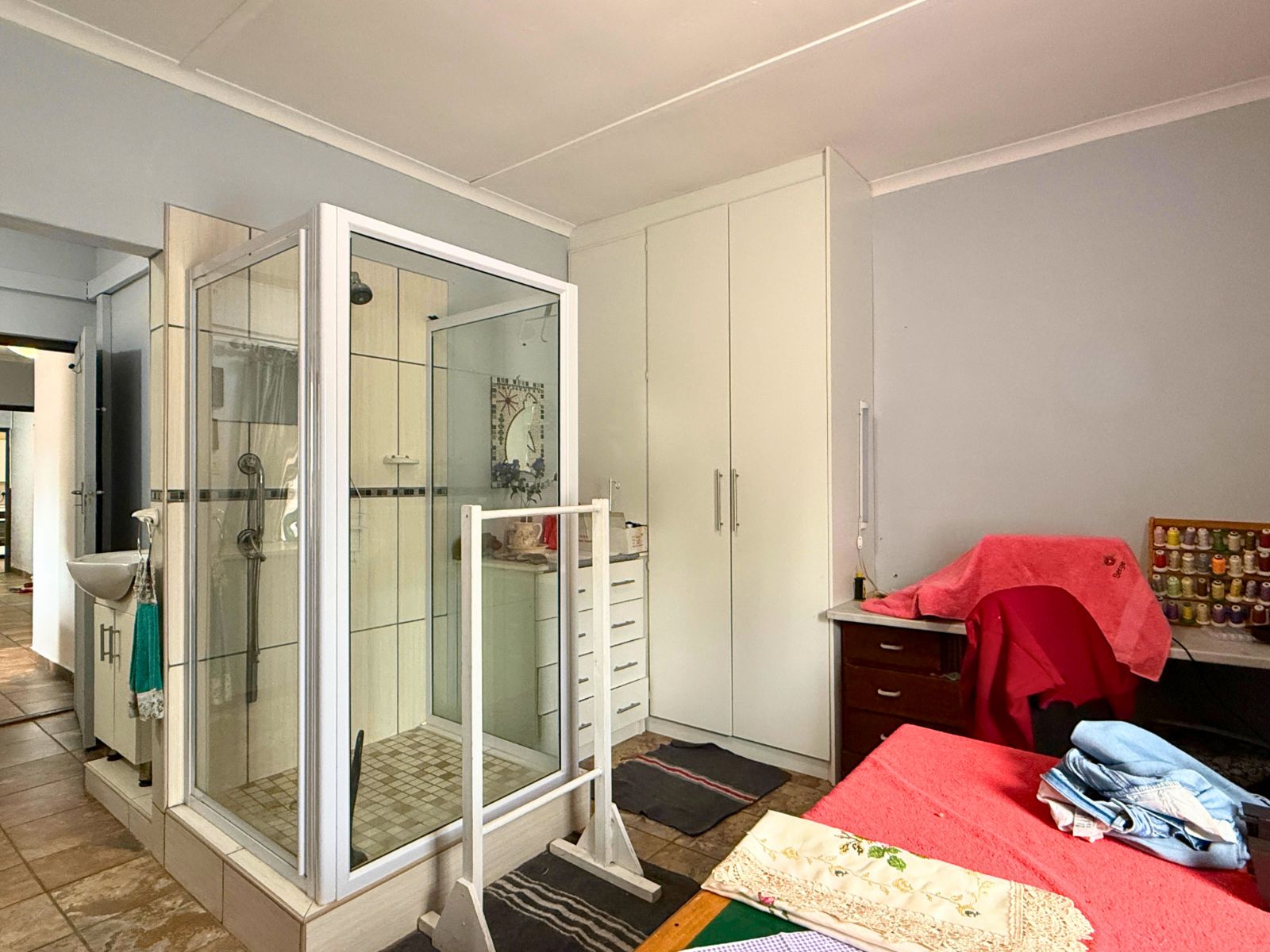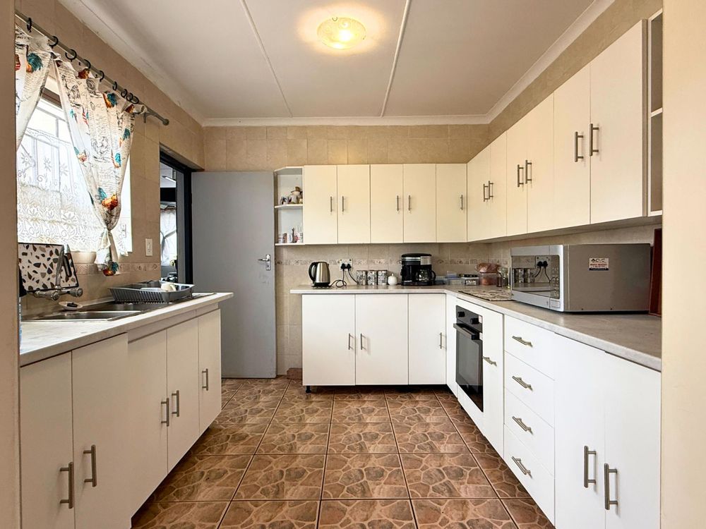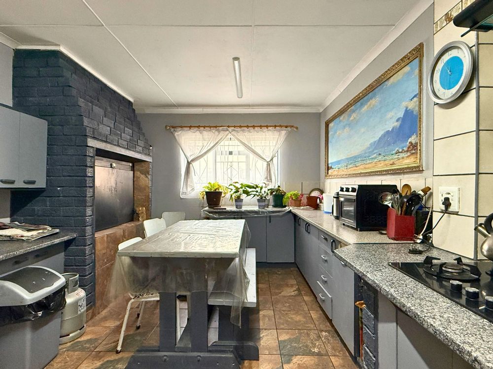 The main house boasts a welcoming downstairs layout, including a comfortable lounge, dining room, and a well-sized kitchen. A large braai room with its own washing-up and cooking facilities makes entertaining a pleasure, while additional spaces such as a study, hobby room (with shower), laundry, and storeroom provide flexibility for a variety of uses.