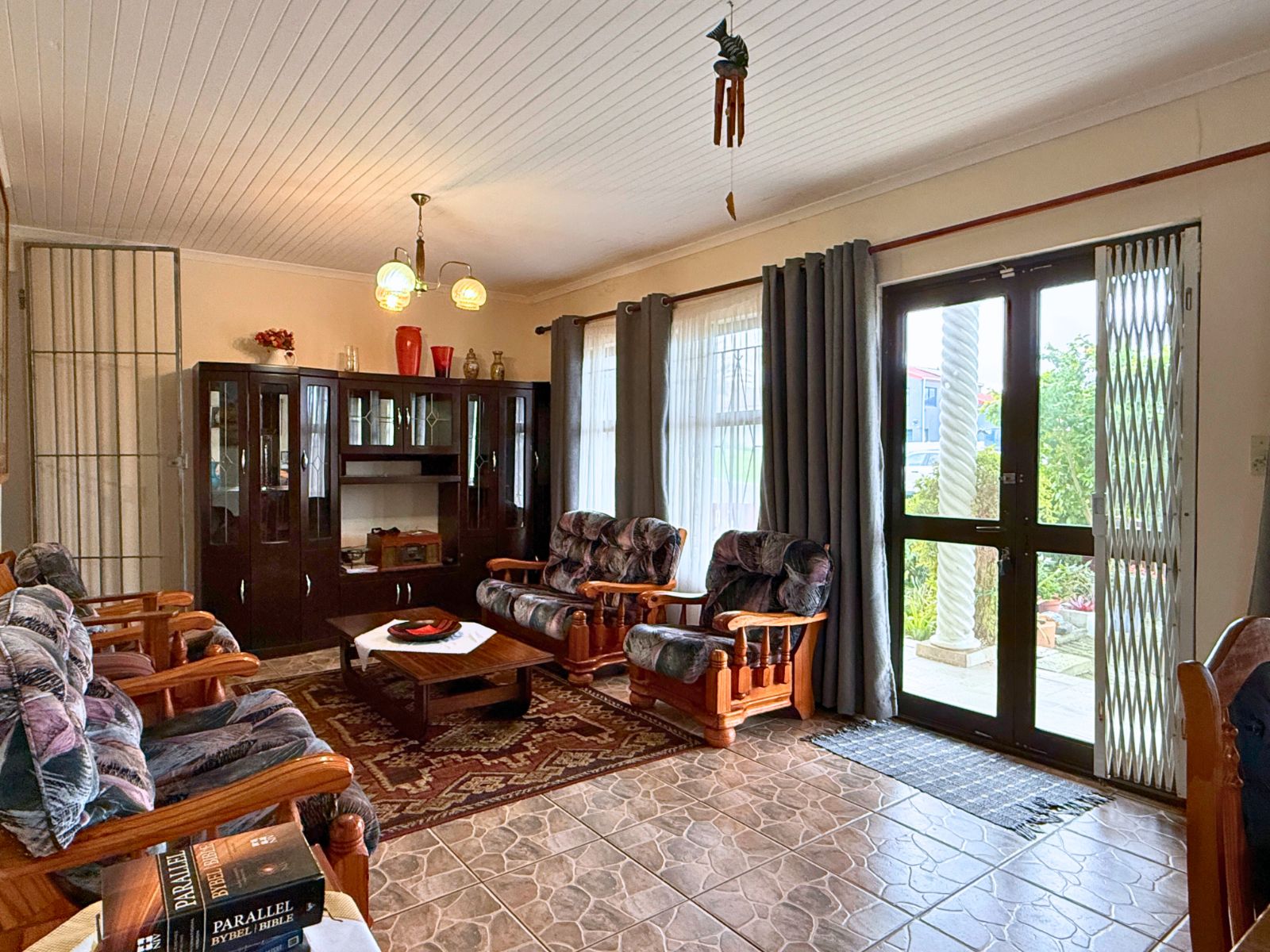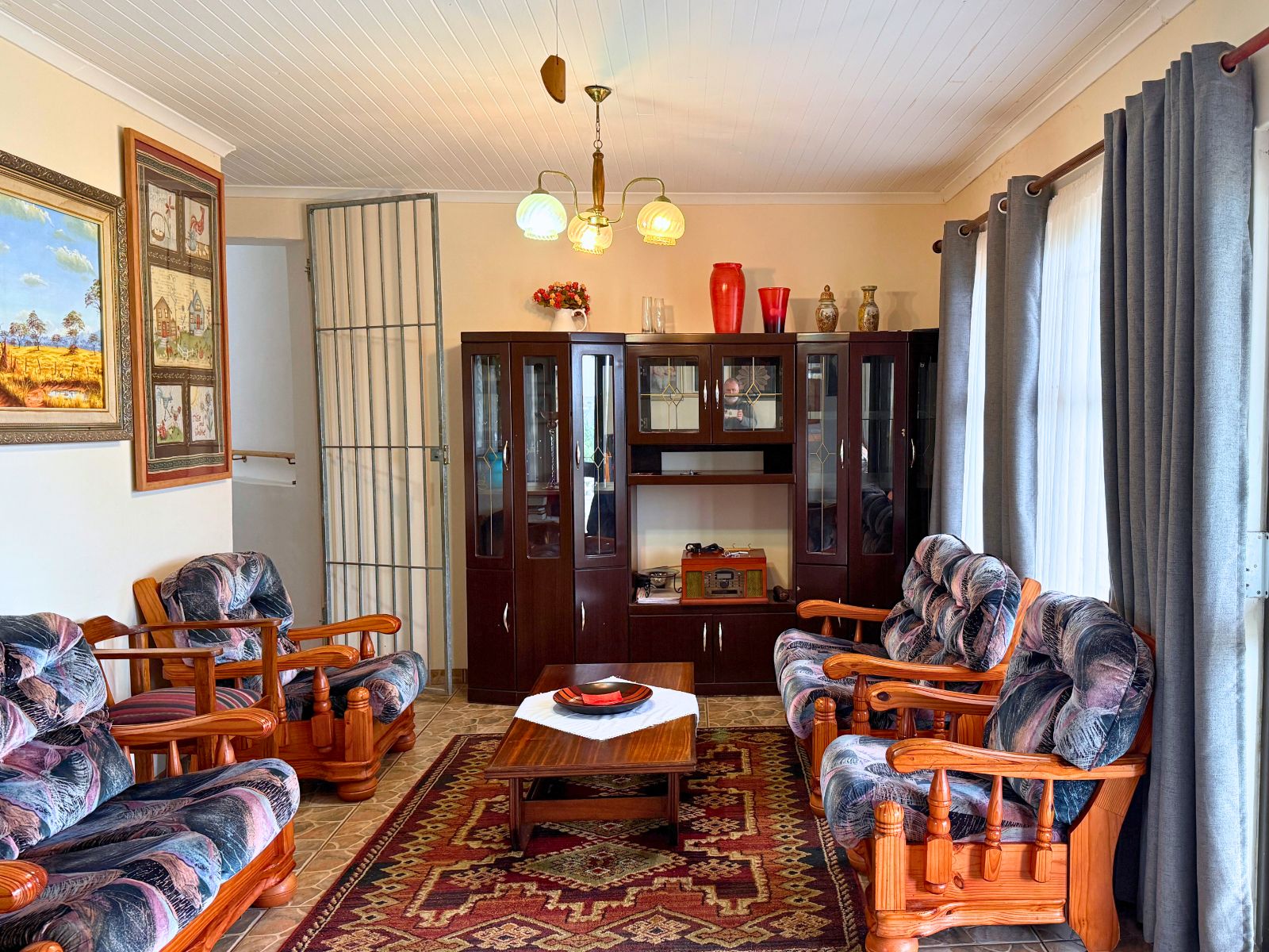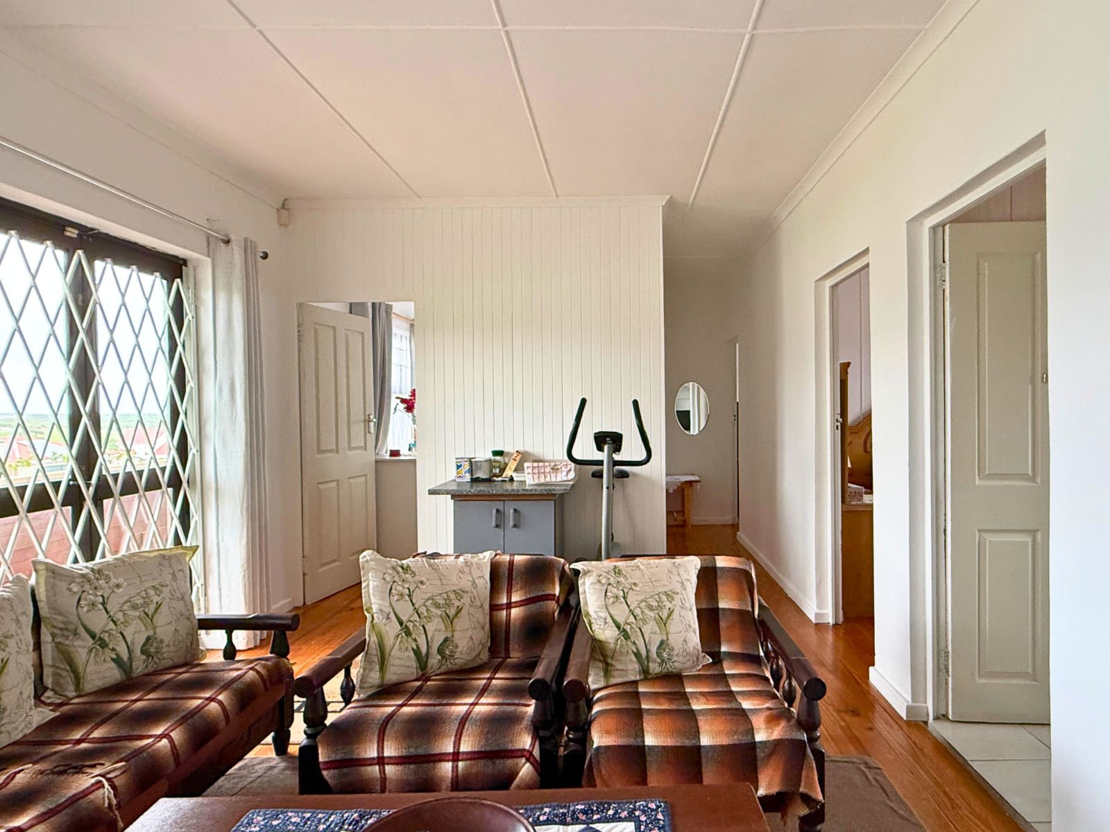 The main house boasts a welcoming downstairs layout, including a comfortable lounge, dining room, and a well-sized kitchen. A large braai room with its own washing-up and cooking facilities makes entertaining a pleasure, while additional spaces such as a study, hobby room (with shower), laundry, and storeroom provide flexibility for a variety of uses.