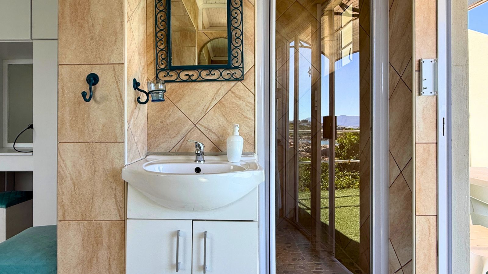 The property is thoughtfully designed over two levels, with a total of five income generating guest bedrooms spread across both floors. The upper level includes a private family suite comprising two en-suite bedrooms (one with a balcony and sea views), as well as another en-suite bedroom with its own private balcony. A private manager’s suite with sitting area, bedroom, and en-suite bathroom is also located on this level, alongside a modern kitchen, open plan administrative office, and garage.