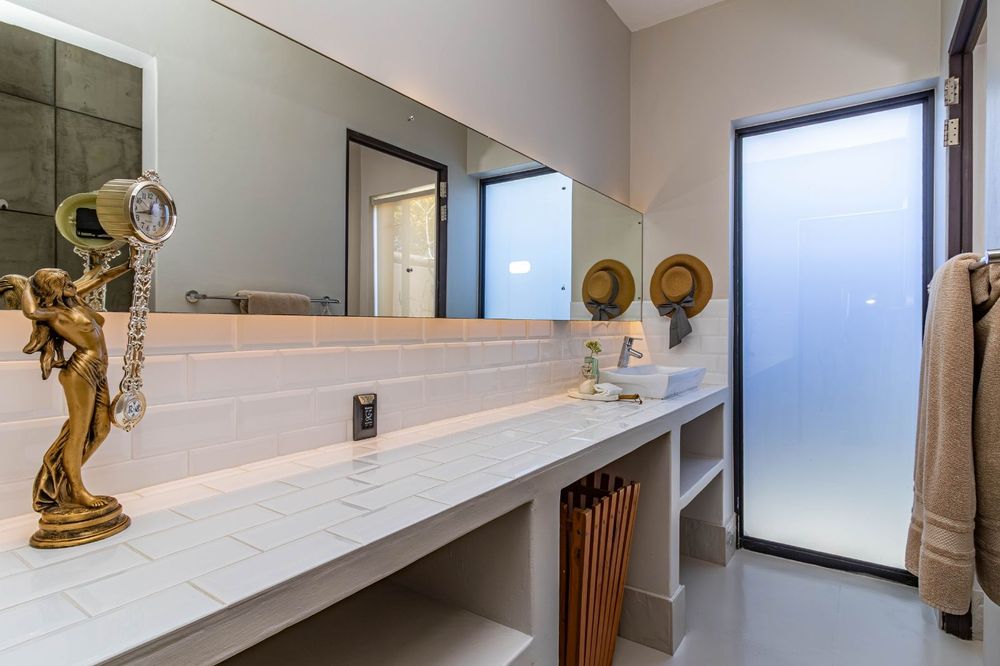 The home’s allure is dramatically enhanced by its potential for growth and investment. Provision has been made and plans were drawn up and approved for the construction of a new second level, which would increase the total under roof area to an impressive 745m2 and offer 5 additional en suite bedrooms. The chef’s kitchen is a true statement piece, featuring unique copper-clad cabinetry that combines rustic charm with modern sophistication, equipped with a gas stove and an electric oven. Step onto the undercover verandah to the ultimate outdoor entertainment zone, complete with a built-in braai (BBQ) and a genuine pizza oven, perfect for relaxed al-fresco dining with a panoramic ocean backdrop. Furthermore, for those seeking immediate, hassle-free occupation, the option exists to purchase the home fully inclusive of its bespoke luxury furniture for an additional cost.
