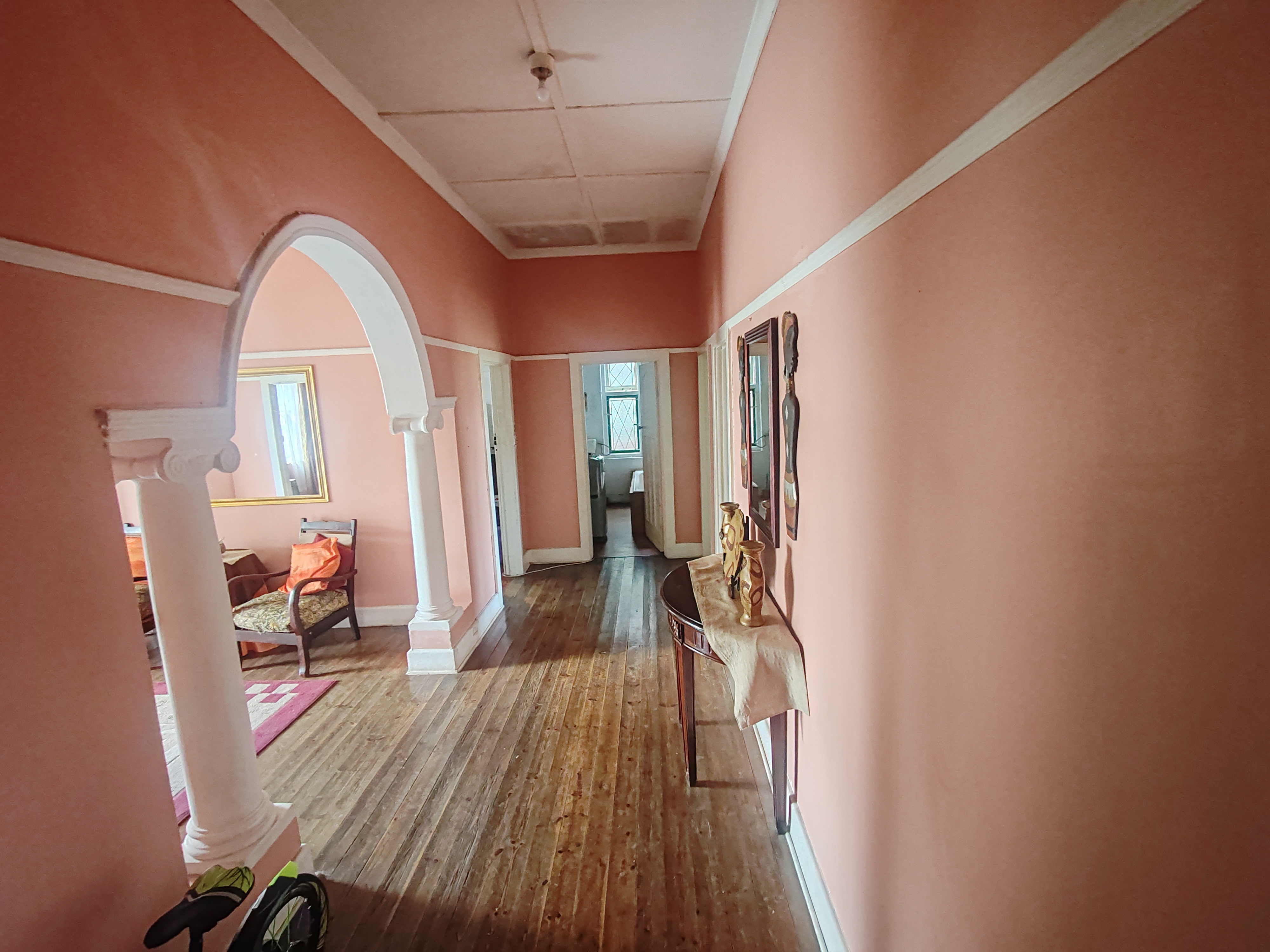 Beautiful wooden floors welcome you as you step into the entrance hall of this inviting home. The property features three spacious bedrooms, each fitted with built-in cupboards, and a well-maintained bathroom with a bath, toilet, and basin.