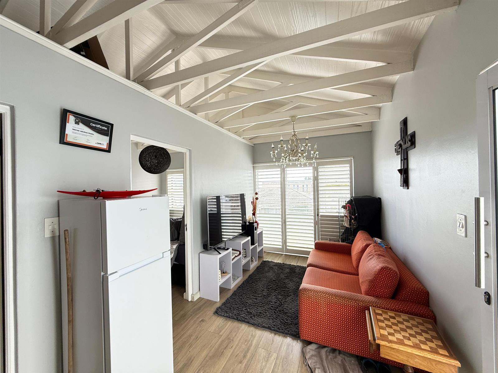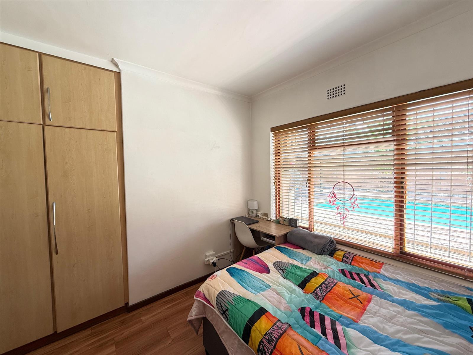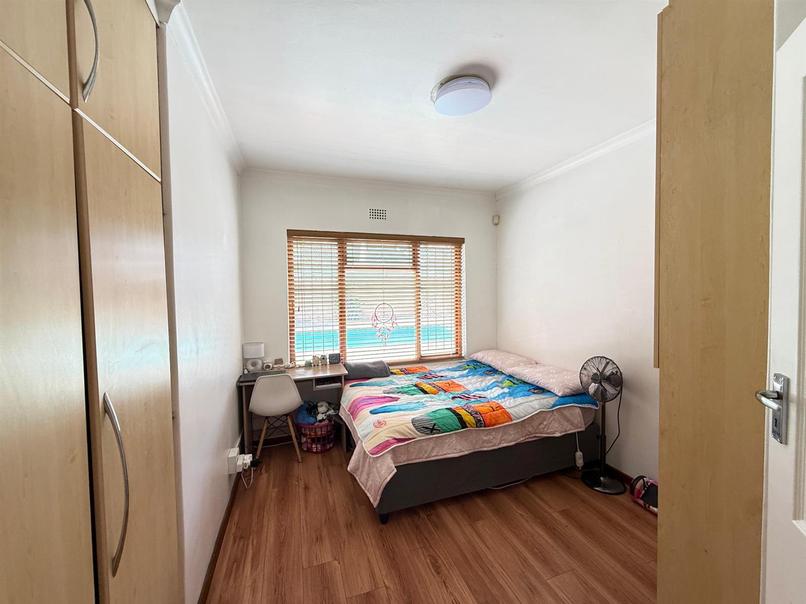 A well-designed ground-floor unit offering open-plan living, a functional kitchen with ample cupboard space, one bedroom with built-in cupboards, and a private ensuite bathroom. Also equipped with air conditioning and blinds, making it ideal for immediate rental.