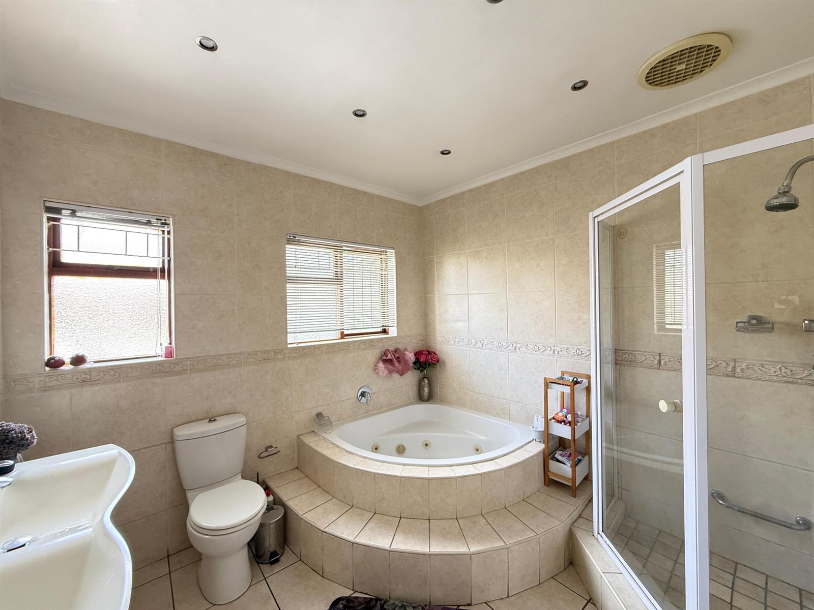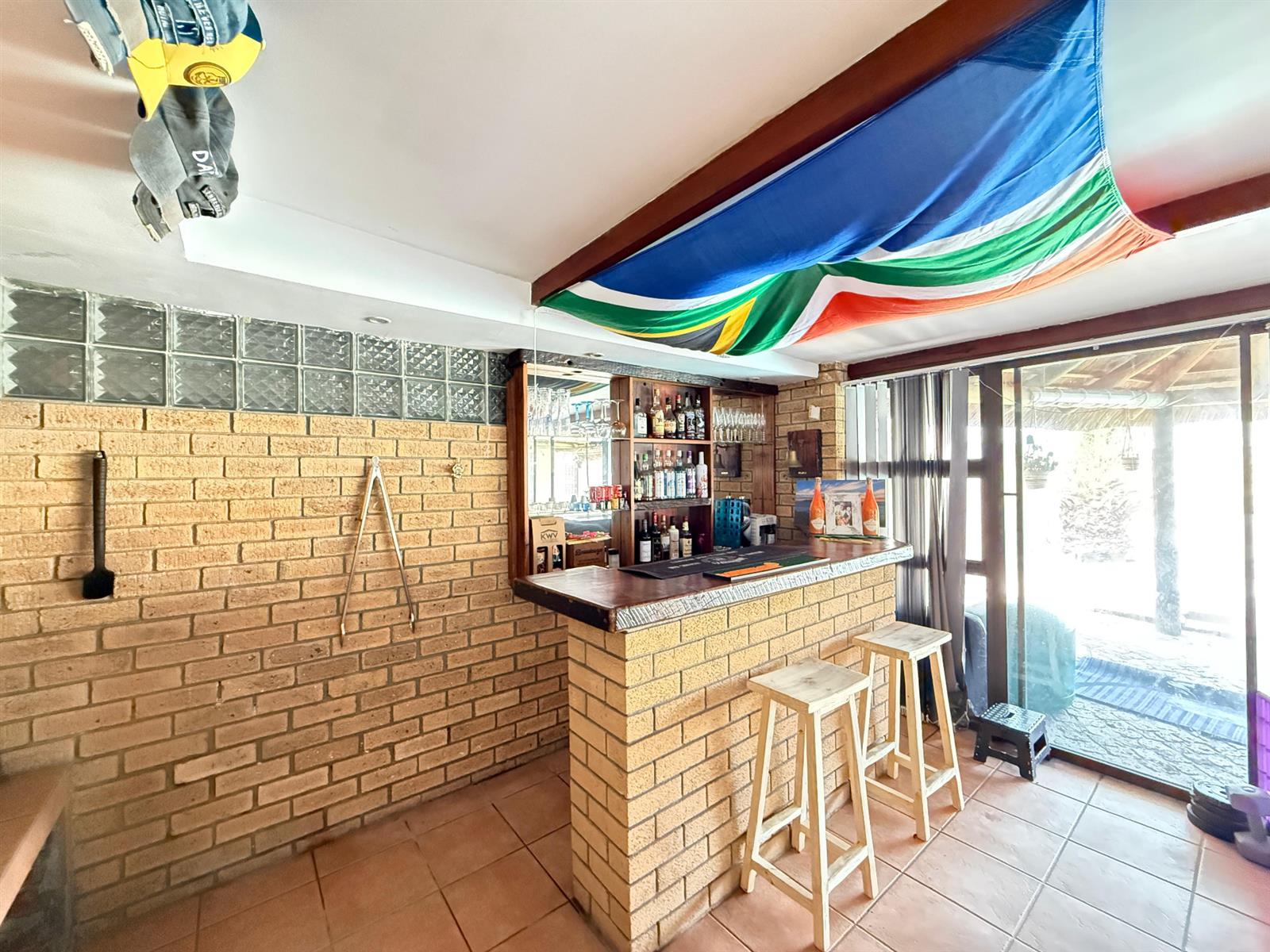At the heart of the home is a sleek, modern kitchen that flows effortlessly into the dining area and formal lounge, extending into an expansive indoor braai room — the ultimate entertainer’s space. Complete with a built-in bar and sliding doors opening to the lapa and sparkling swimming pool, this home is designed for both lifestyle and value.