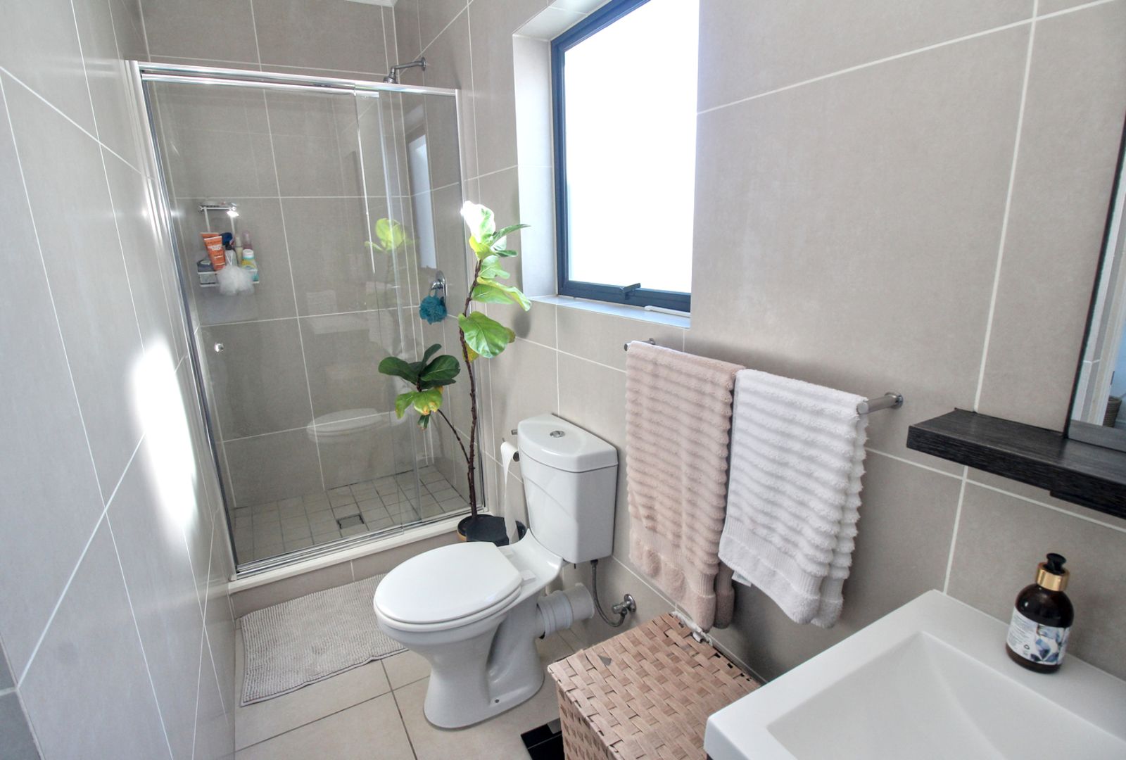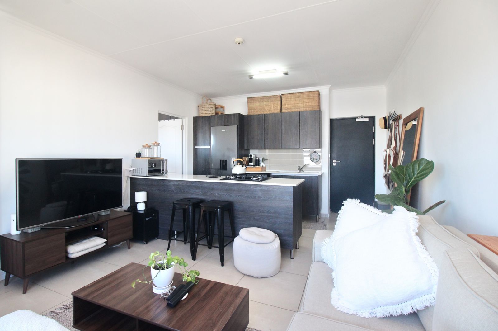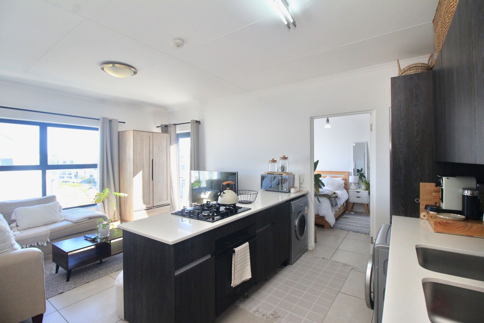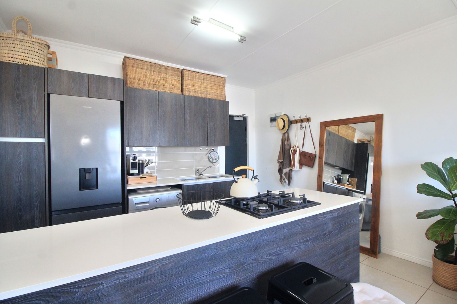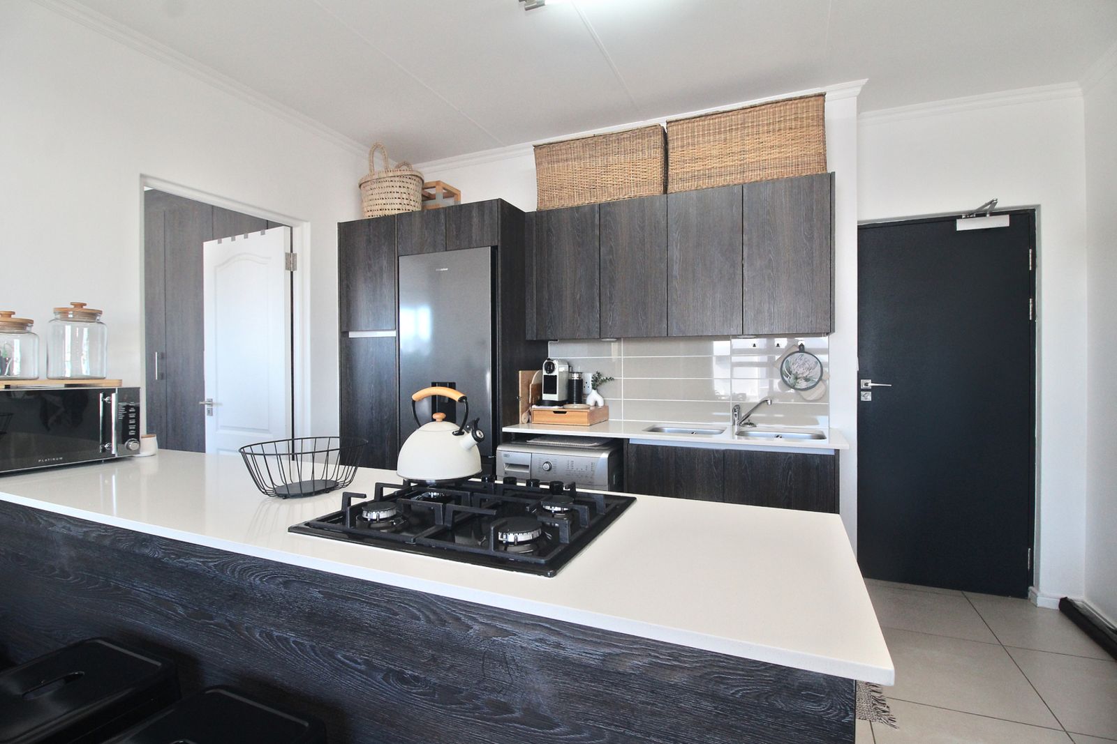 This large, exceptionally neat and beautifully presented 1-bedroom apartment offers comfortable, modern living, with lots of natural light in a secure estate. The bedroom features an en-suite bathroom with a double shower, toilet, and basin, as well as generous cupboard space. The open-plan kitchen and lounge area is well-sized and includes a breakfast nook, gas hob, electric oven, fridge, washing machine, and tumble dryer. Tiled throughout, with lots of natural light, both the lounge and bedroom open with sliding doors to a private balcony — perfect for relaxing or enjoying a braai.