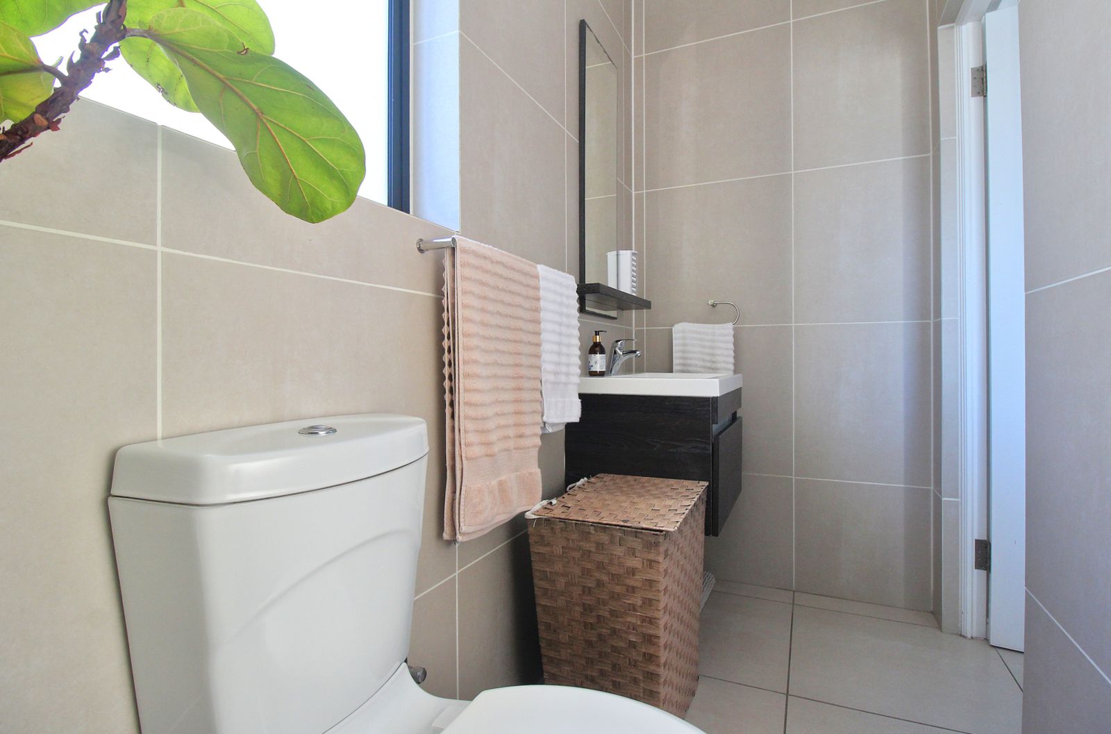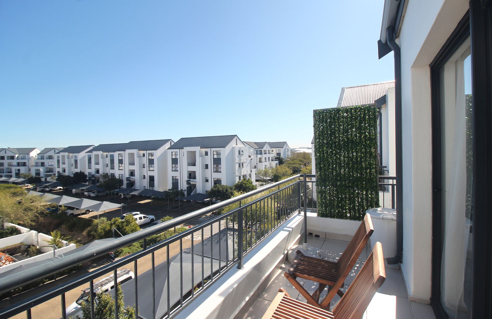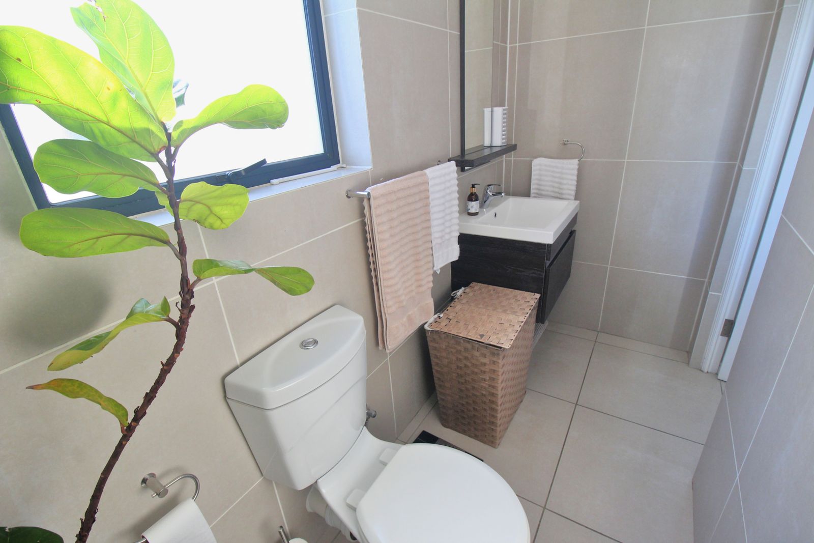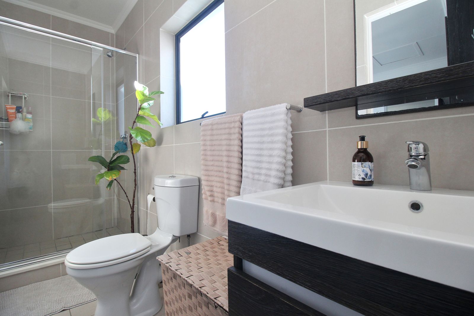 This large, exceptionally neat and beautifully presented 1-bedroom apartment offers comfortable, modern living, with lots of natural light in a secure estate. The bedroom features an en-suite bathroom with a double shower, toilet, and basin, as well as generous cupboard space. The open-plan kitchen and lounge area is well-sized and includes a breakfast nook, gas hob, electric oven, fridge, washing machine, and tumble dryer. Tiled throughout, with lots of natural light, both the lounge and bedroom open with sliding doors to a private balcony — perfect for relaxing or enjoying a braai.