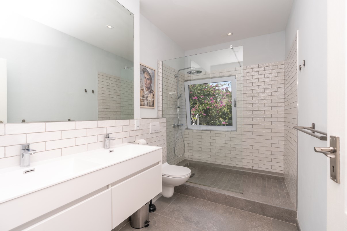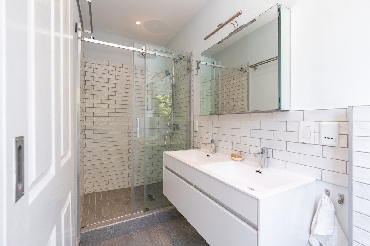 On the second level we have all the bedrooms. Two bedrooms share a bathroom with large walk in shower. The main ensuite looks out over the city skyline and beyond and has a shower room ensuite. The second bedroom has a private terrace for morning yoga, afternoon relaxing or take out your peloton cycle for the morning ride! All bedrooms have BICs.