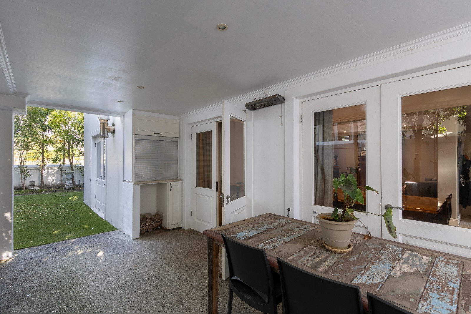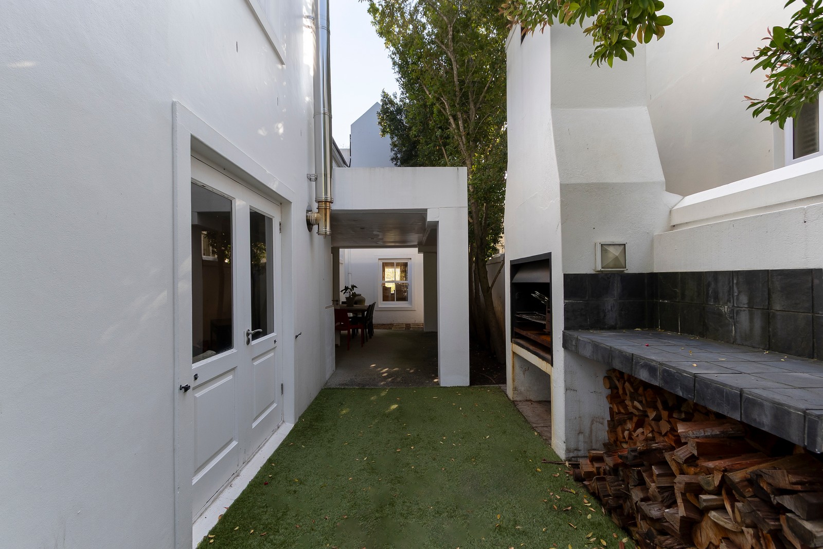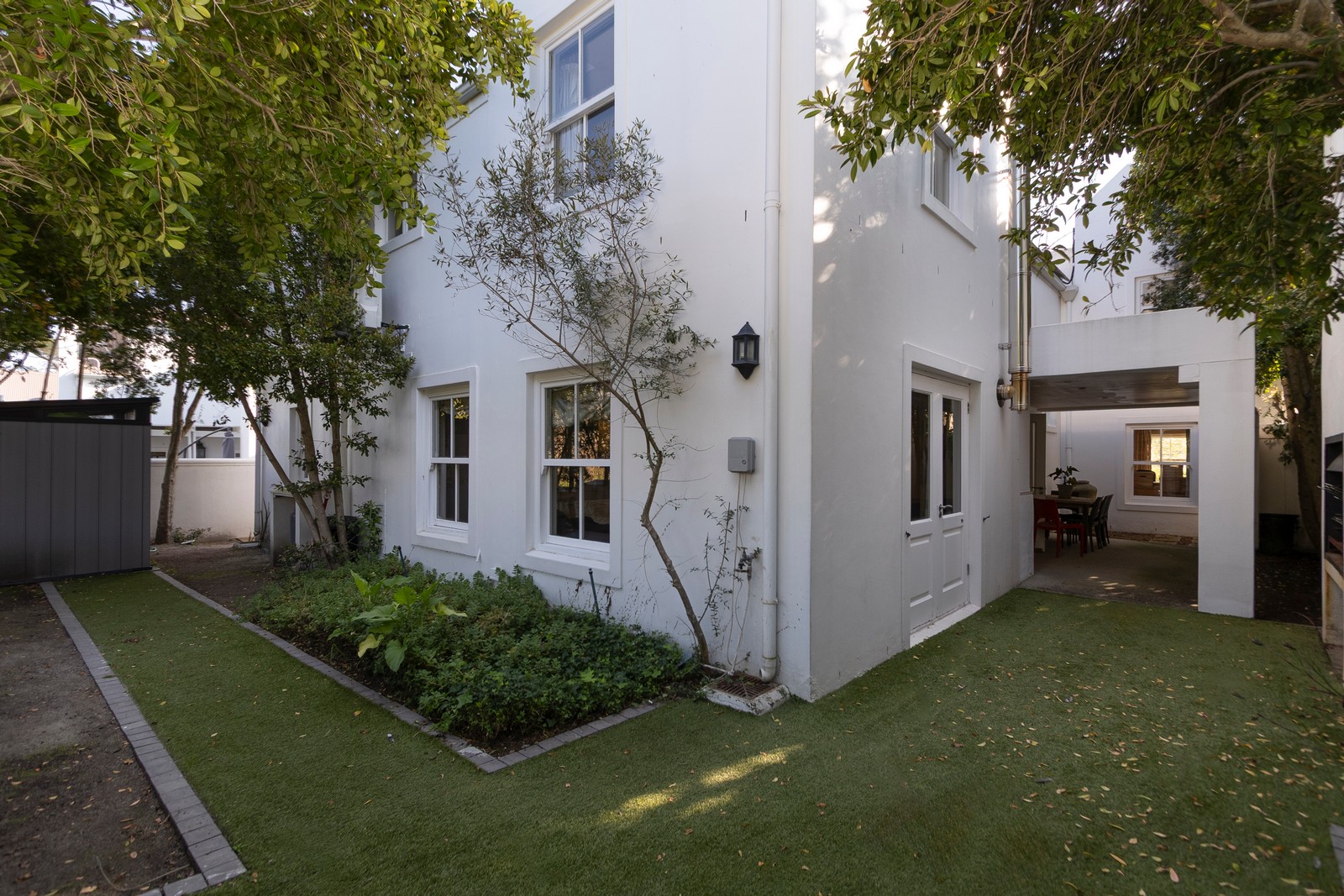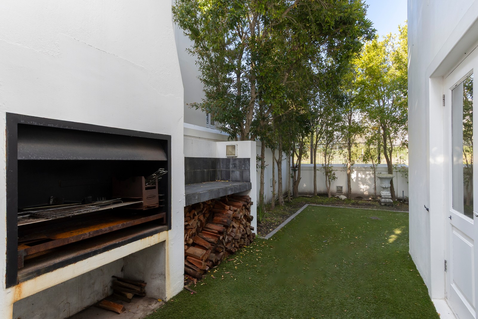The garden features synthetic lawn for low maintenance.