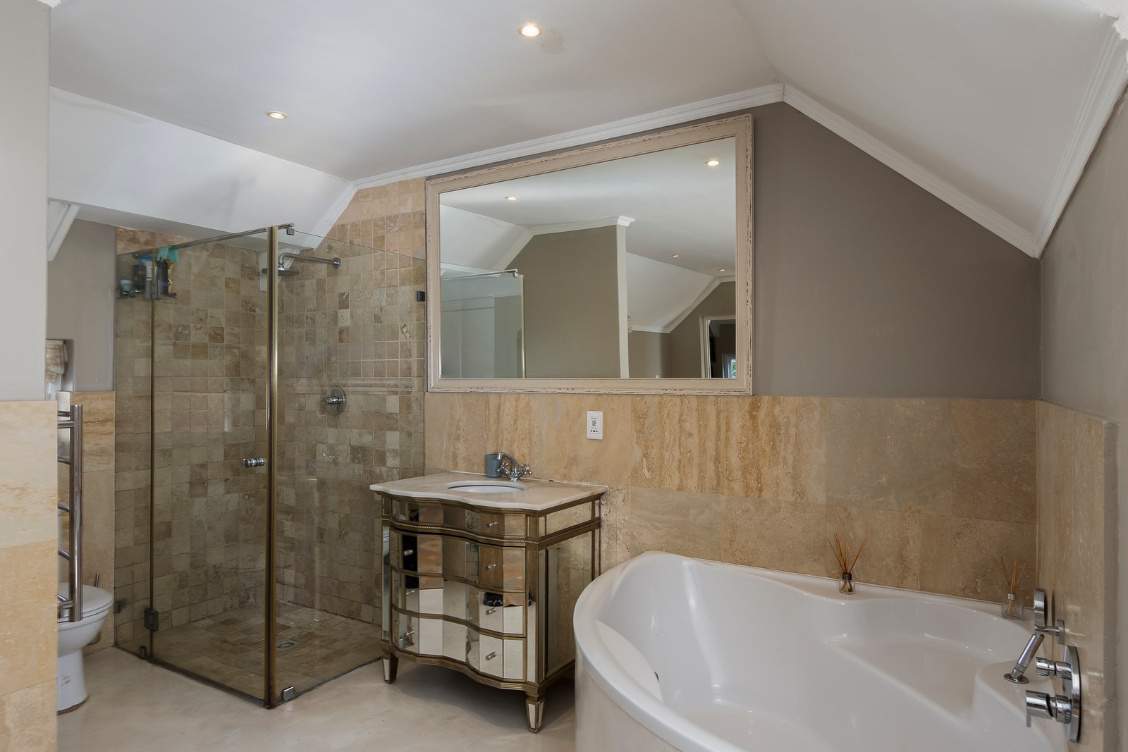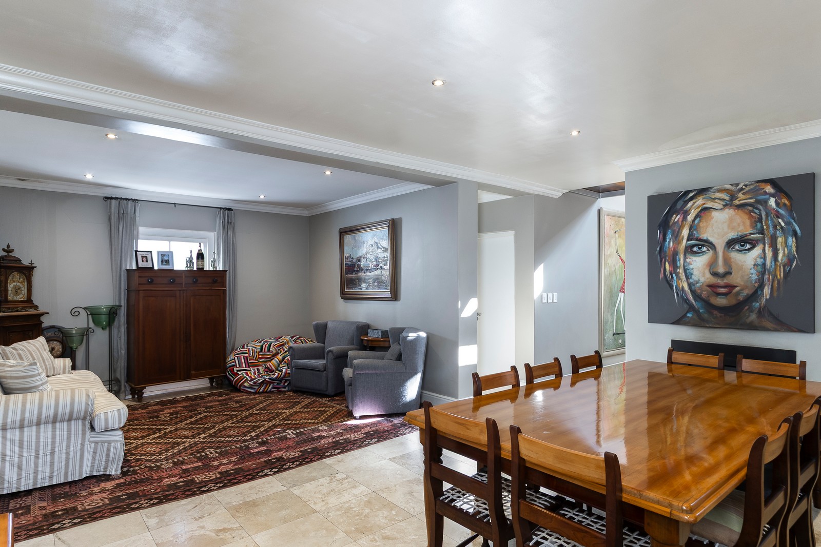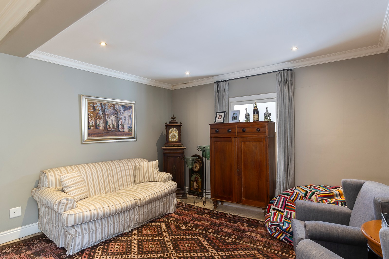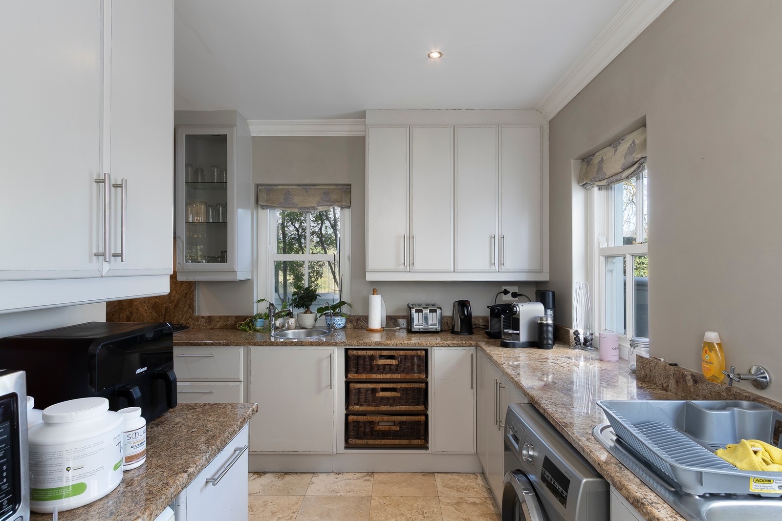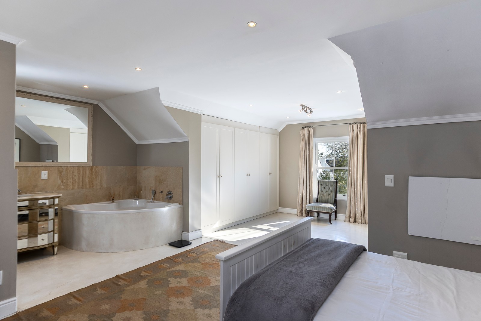 The four bedrooms upstairs are well sized and spacious and one of them could constitute a separate apartment. The main bedroom is generously proportioned with an open-plan bathroom and tons of cupboard space available. The other two bedrooms are amply sized and share a family bathroom.