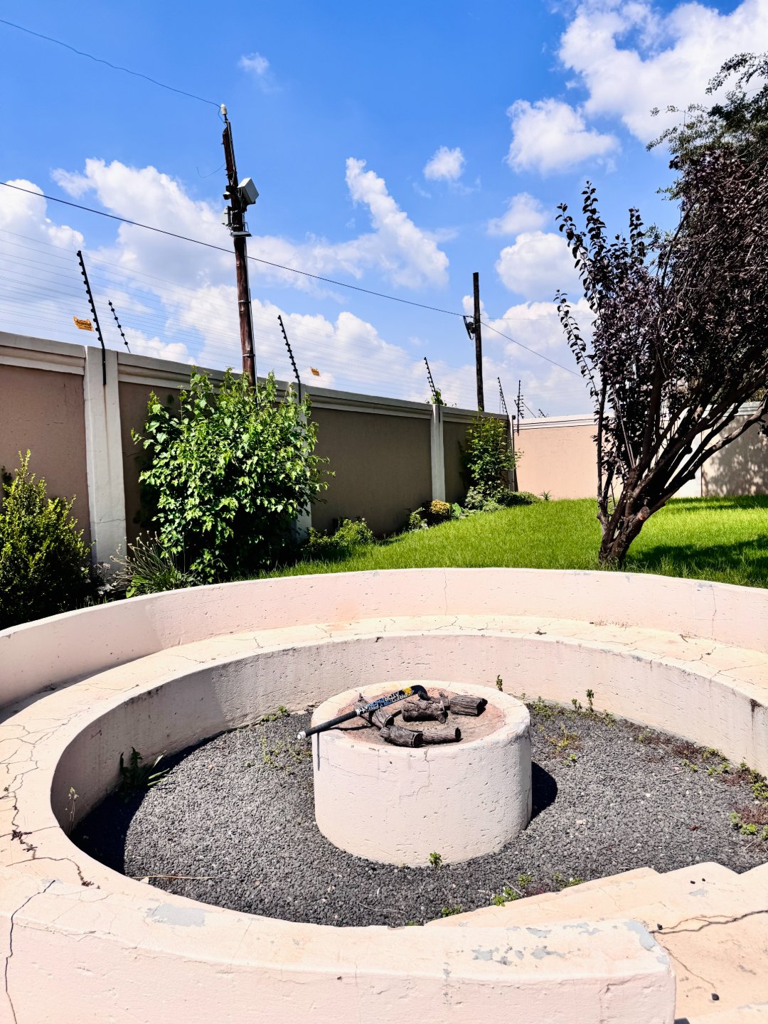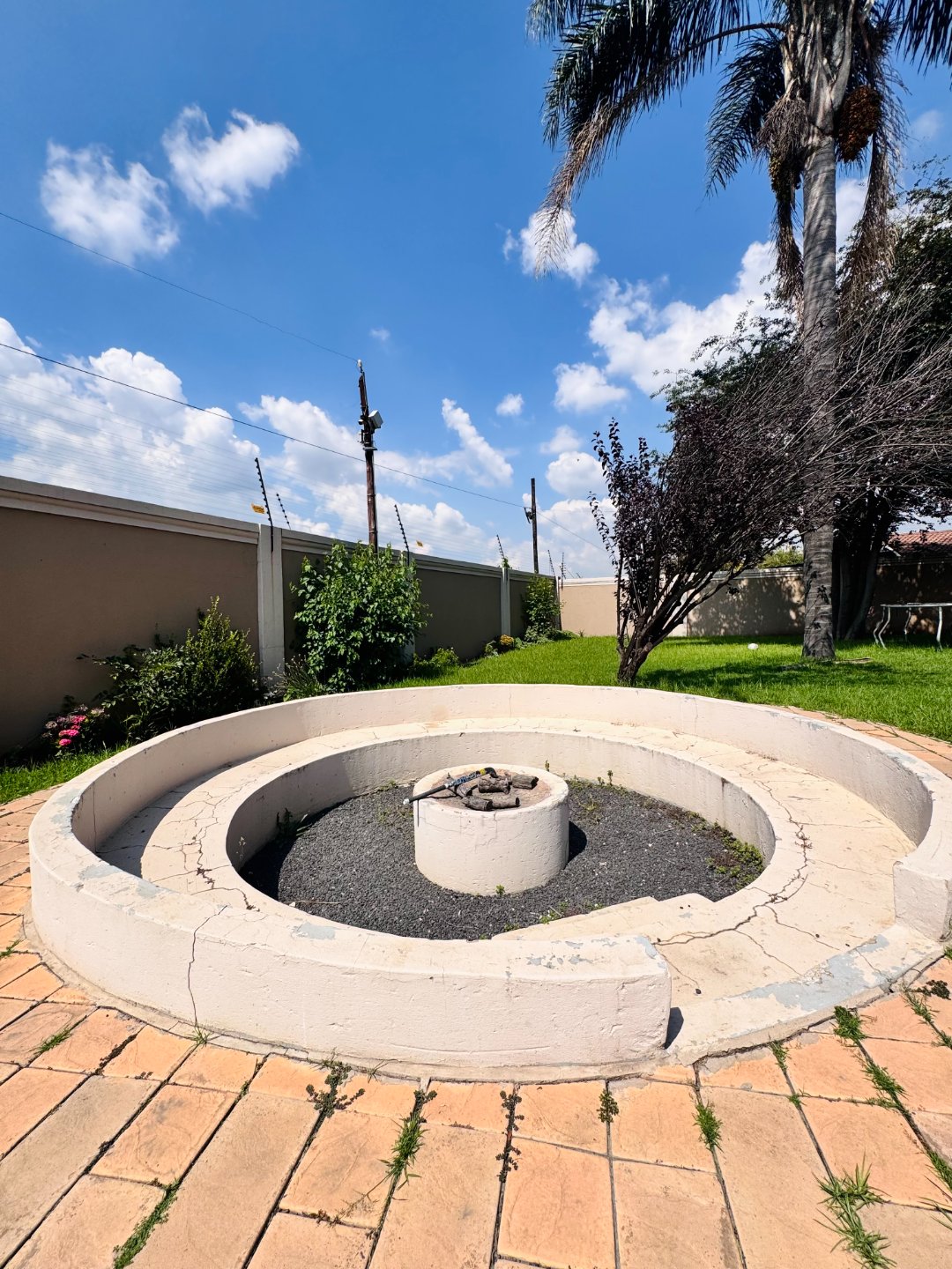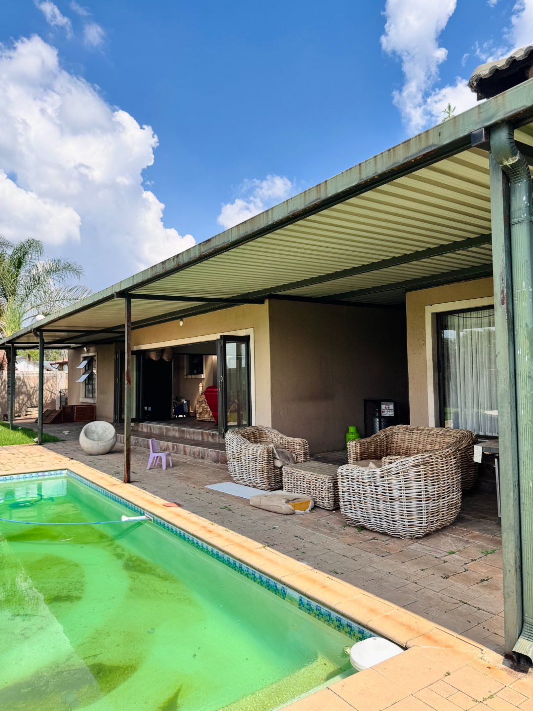 The lapa and patio area overlook the pool, offering the ideal outdoor entertainment space. There's also a Wendy house for extra storage