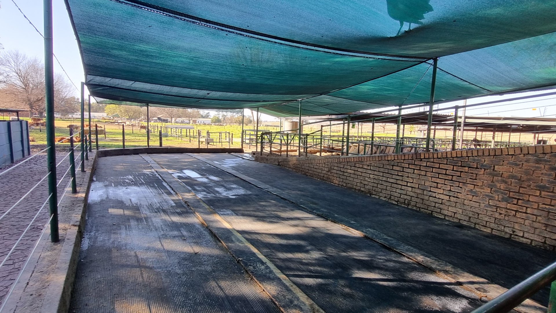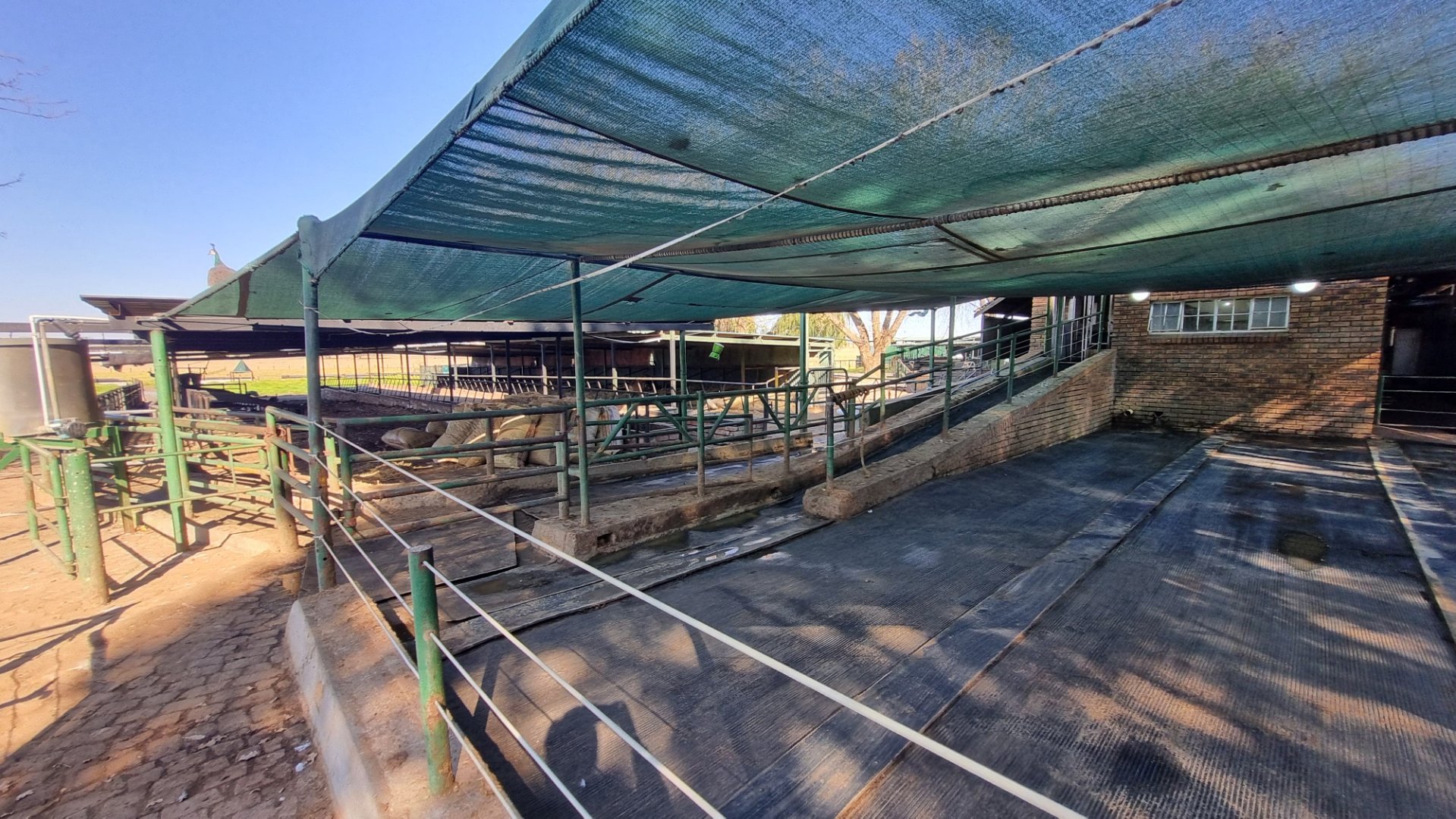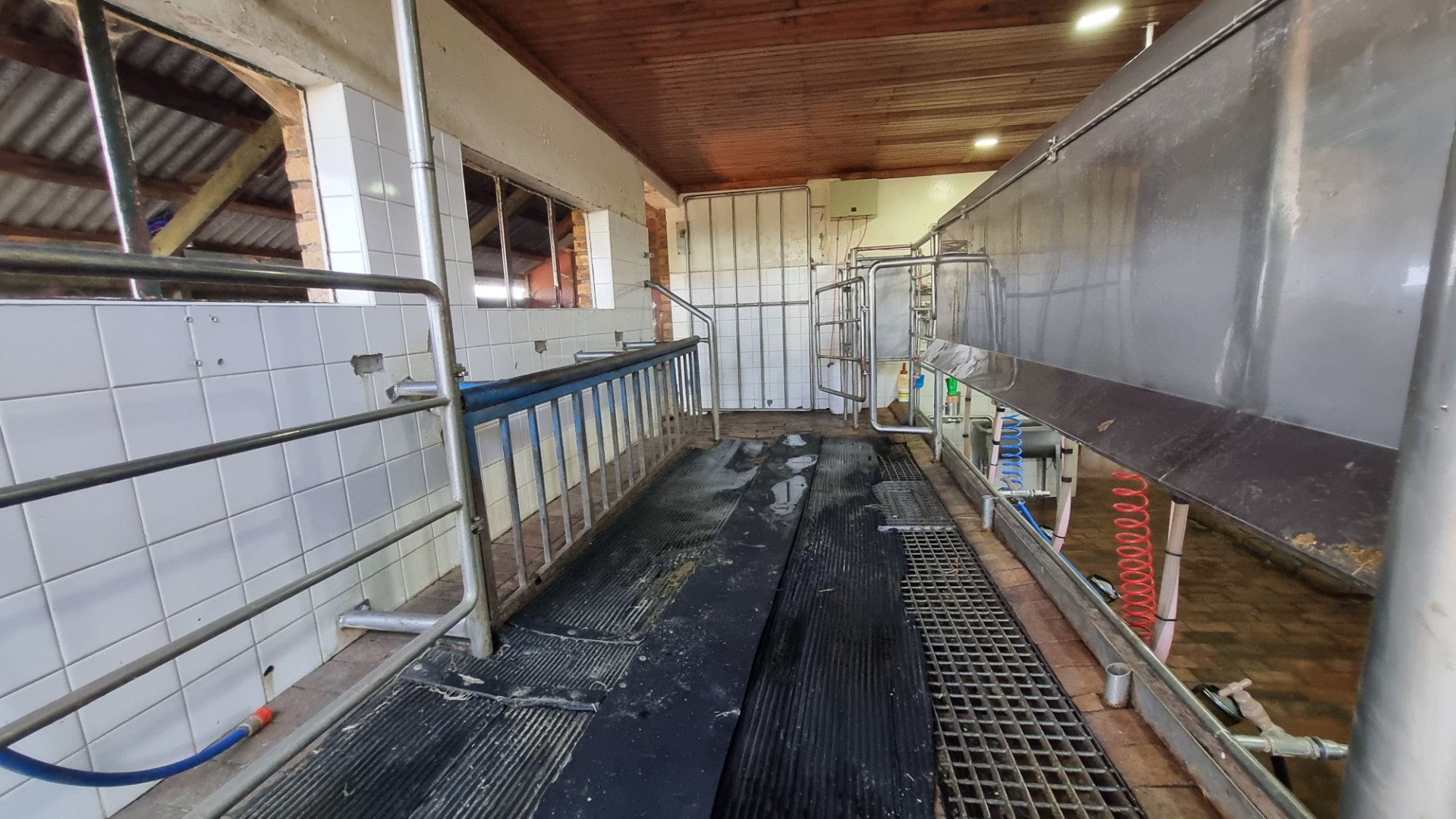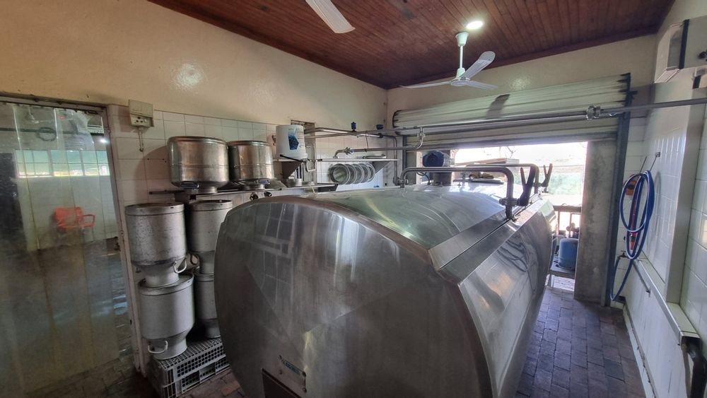 The farm is supported by three strong boreholes and offers well-developed infrastructure, including a large storage facility, a five-point milking station, and raw milk holding space. The main residence boasts ample space with a four-car garage, complemented by two additional two-bedroom homes, each with its own lock-up garage—perfect for staff or extended family.