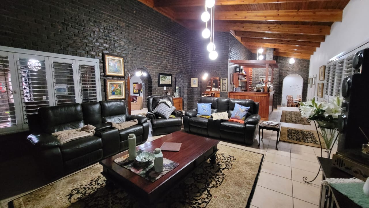 This home includes several valuable extras, such as a private study, pantry, store room, JoJo tanks, and an entertainment area perfect for hosting friends. There is also staff quarters with a toilet and basin for added functionality. Security features include burglar bars, a security gate, and an alarm system, ensuring peace of mind.