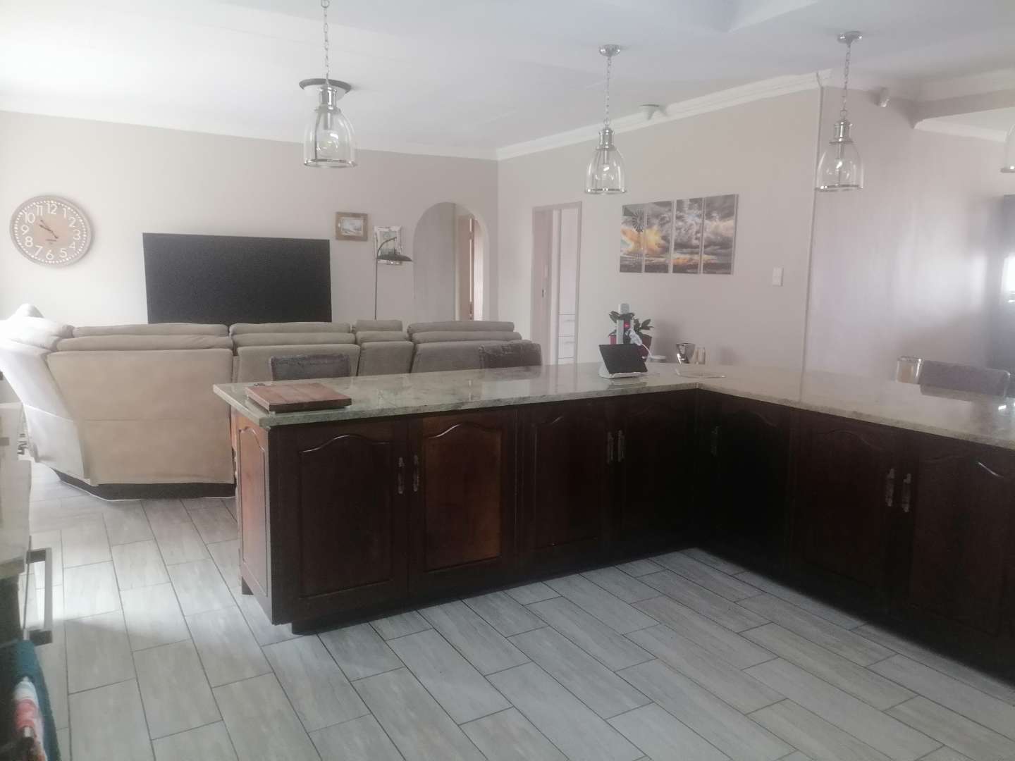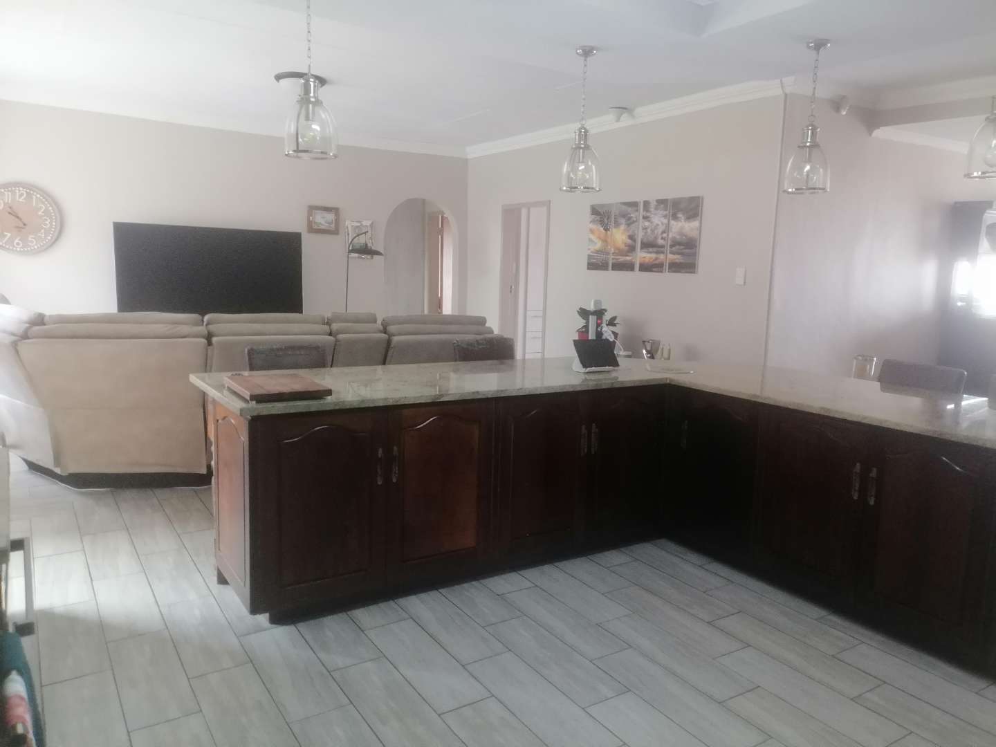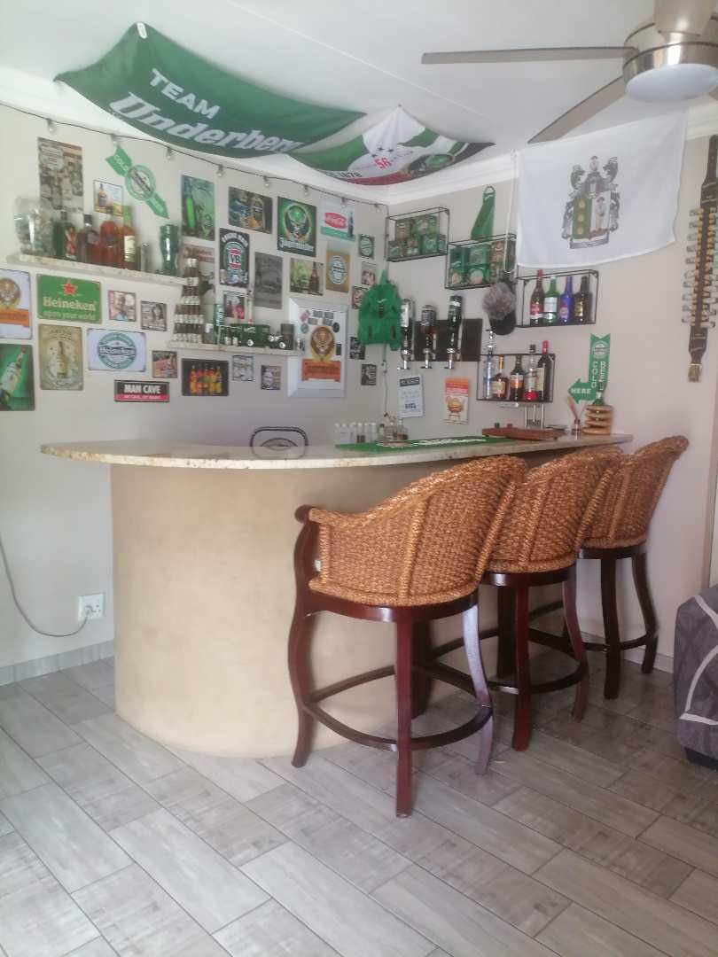 Step into the open-plan living area, where you'll find a seamless blend of style and functionality. The modern kitchen is a culinary enthusiast's delight, complete with quartz countertops, a scullery, and a dedicated laundry area. The lounge is also fitted with air conditioning, providing a cool retreat during warmer months. For those who love to entertain, the bar area—equipped with its own air conditioning—offers the perfect space to host gatherings with friends and family.