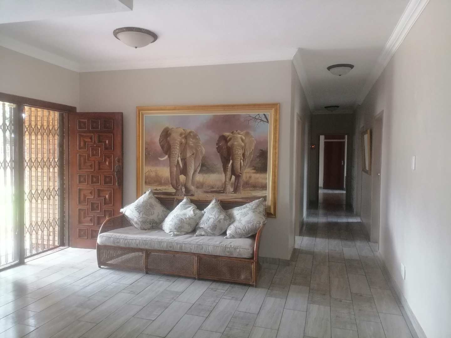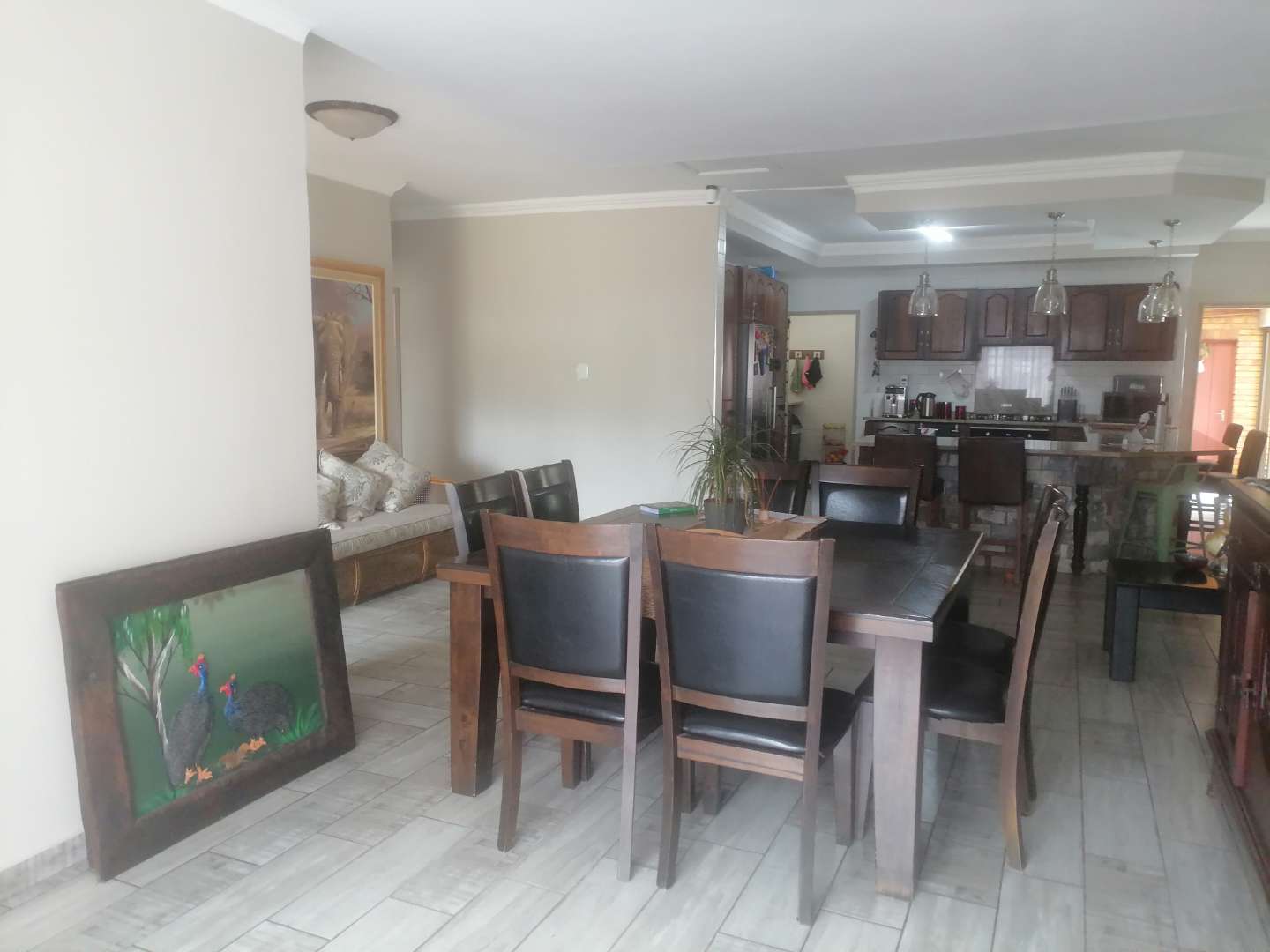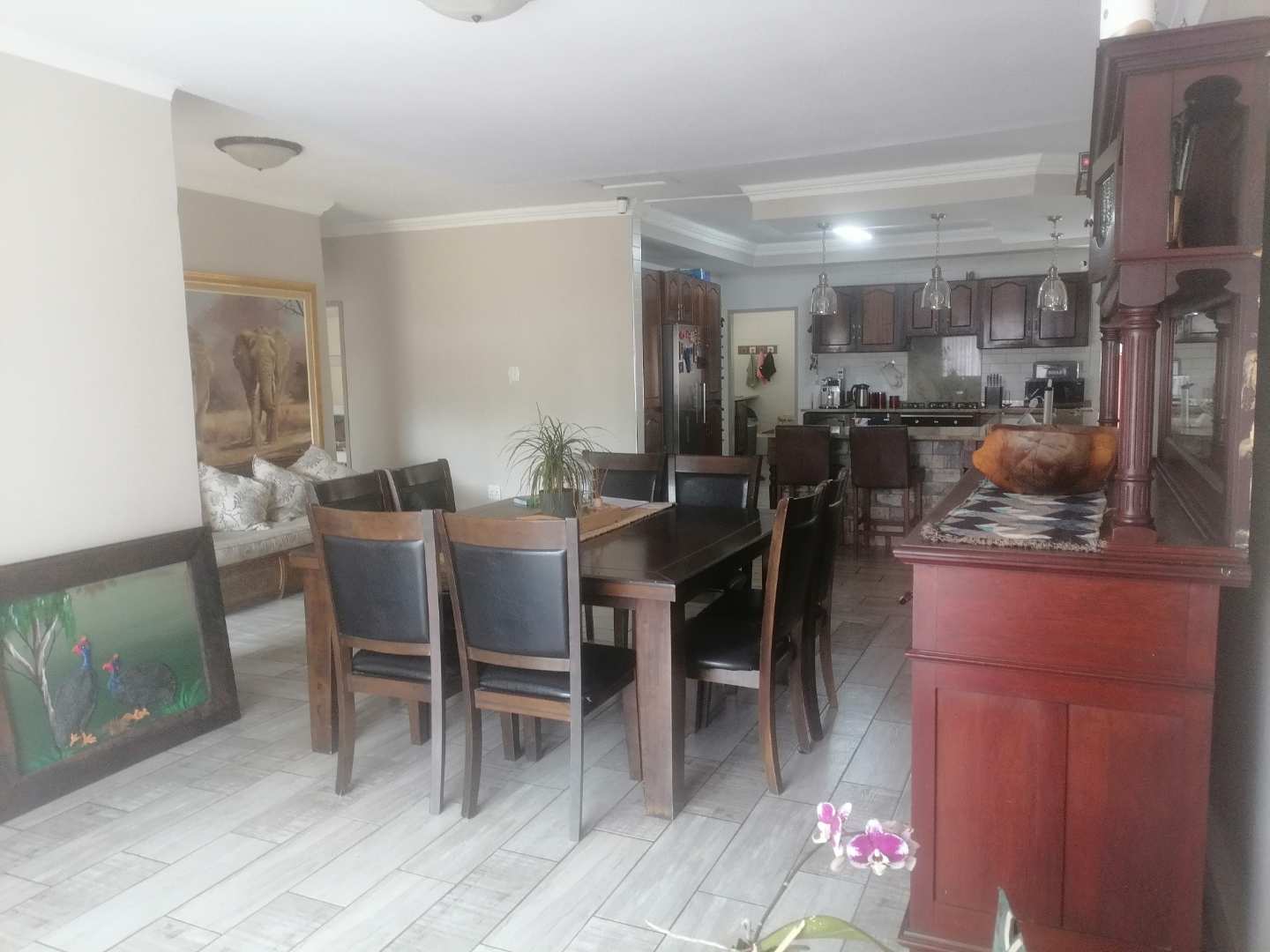 Step into the open-plan living area, where you'll find a seamless blend of style and functionality. The modern kitchen is a culinary enthusiast's delight, complete with quartz countertops, a scullery, and a dedicated laundry area. The lounge is also fitted with air conditioning, providing a cool retreat during warmer months. For those who love to entertain, the bar area—equipped with its own air conditioning—offers the perfect space to host gatherings with friends and family.