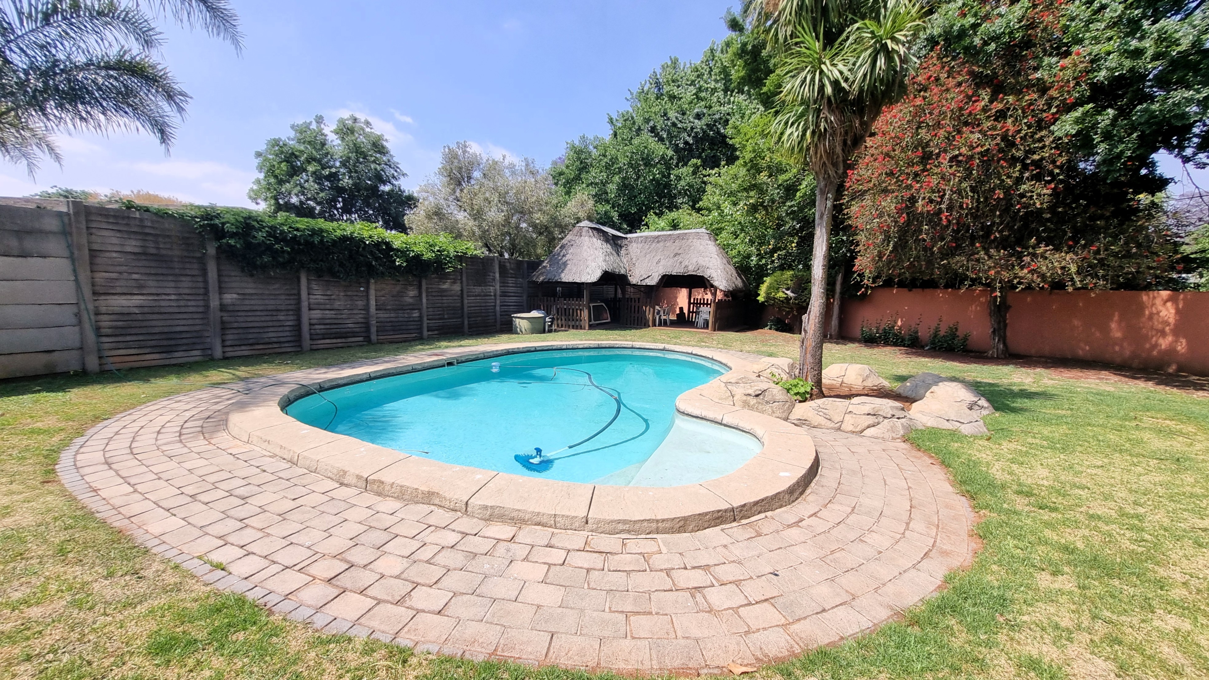 The real highlight of this home is the beautiful covered patio area, ideal for gatherings in any weather. Step outside to a sparkling swimming pool, complemented by a charming entertainment lapa, creating the ultimate space for weekend braais and family fun.