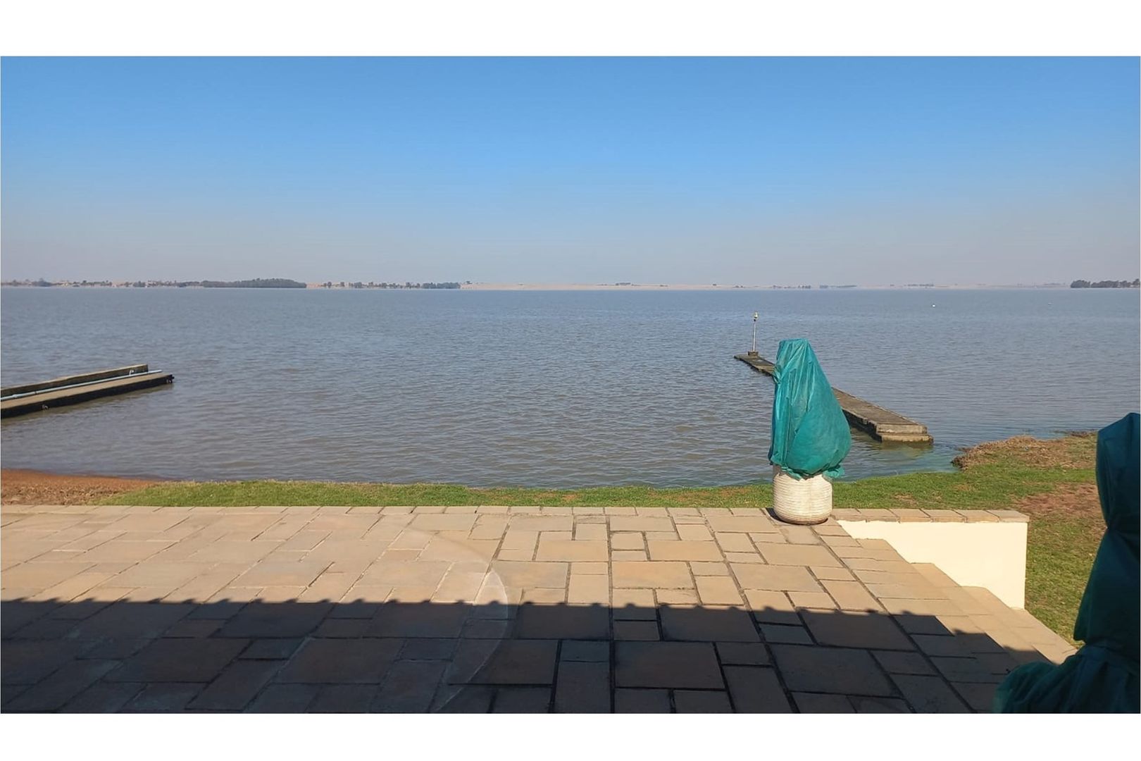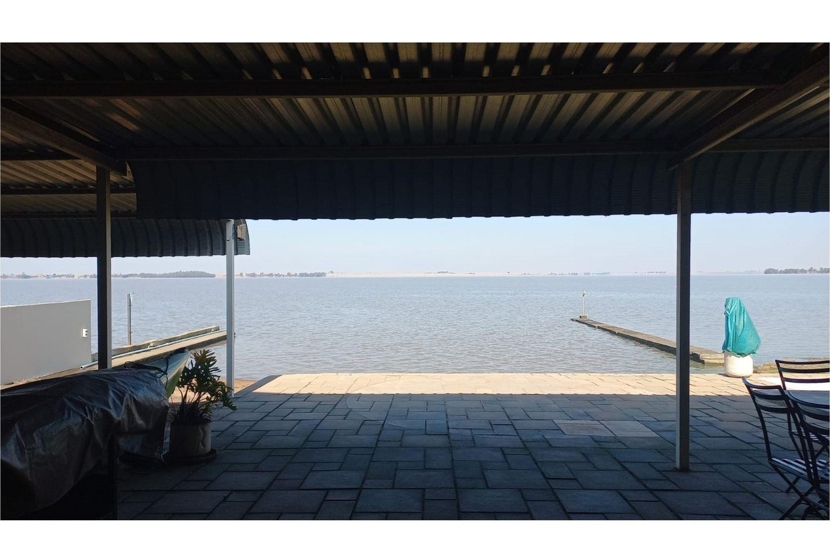 A spacious, drive-through garage provides secure storage for cars and boats with direct access to the dam—ideal for boating and water sport enthusiasts.