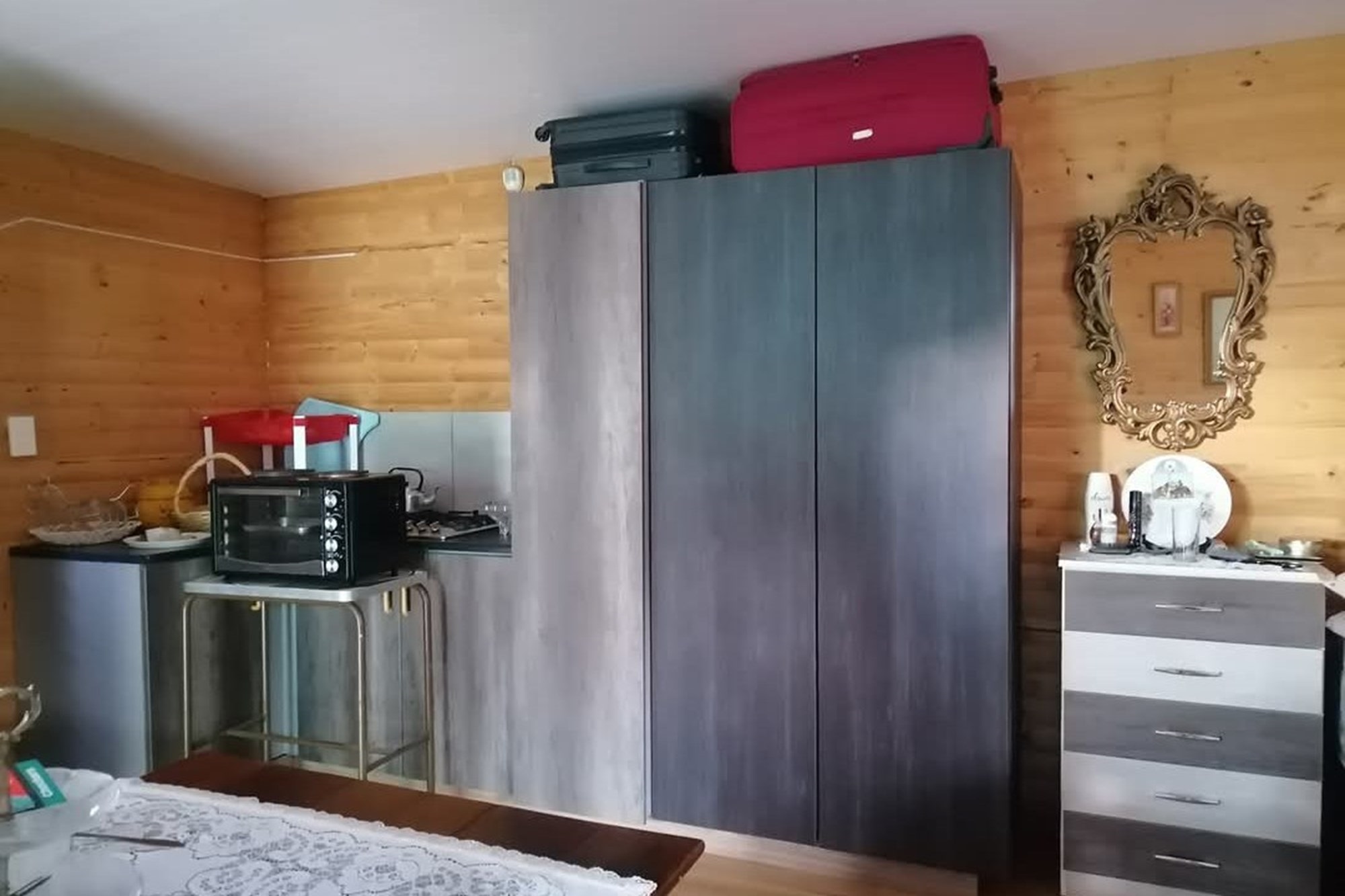 Log Cabin:Open-plan living with full kitchen, Gass Hob and gass geyser and bathroom. EarnR3900/monthor rent out as cozy accommodation for visitors.