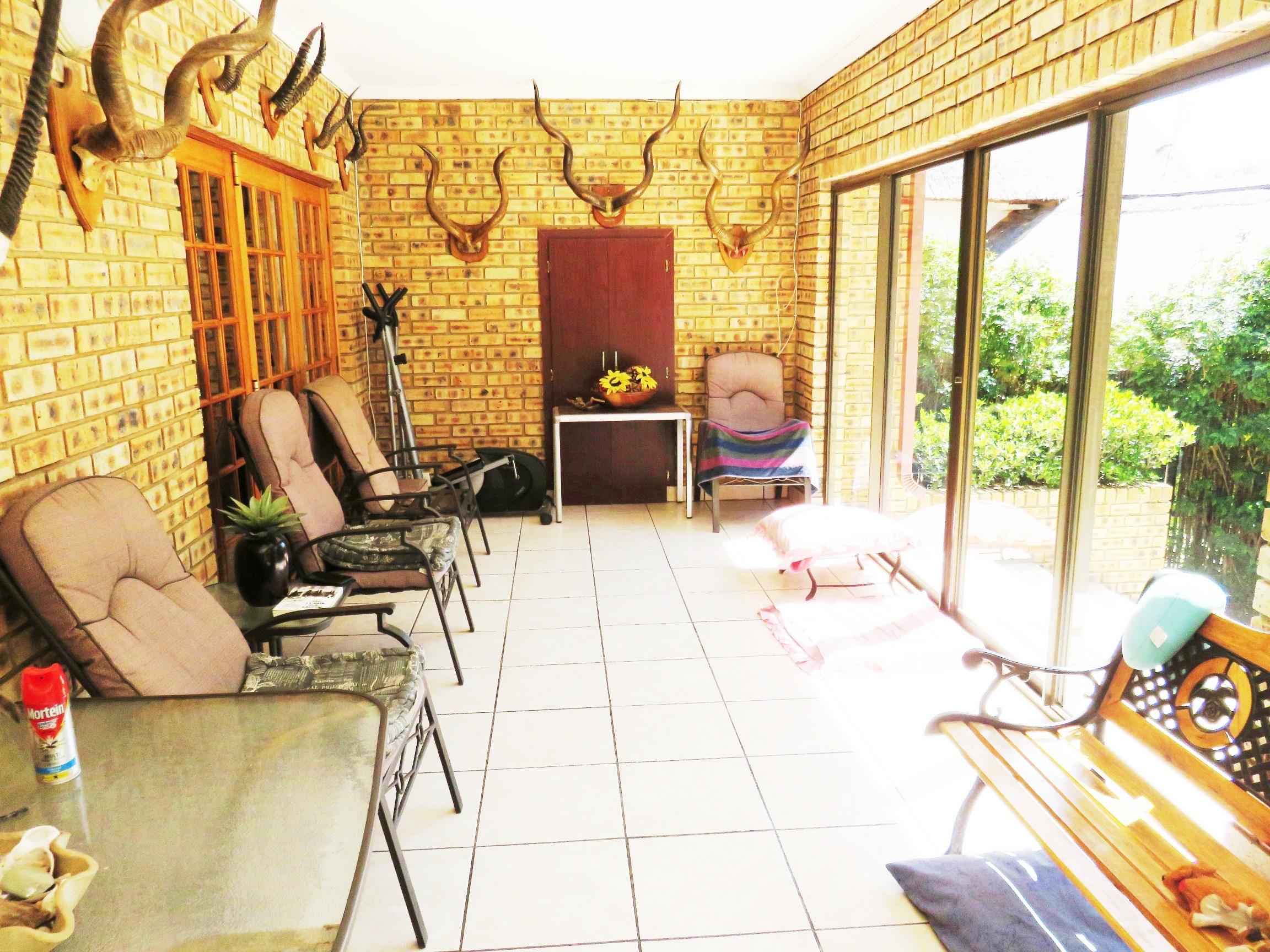 With its spacious layout & modern amenities, this residence is not just a house; it's a place to call Home. One is greeted by a warm & inviting entrance hall leading into an open-plan living space, seamlessly connecting the living room, dining area, & a delightful expansive kitchen connected to a scullery which houses laundry too. Large windows flood living areas with natural light, enhancing the warm ambiance & offering views of the nearby dam. This vast living area directs one to a completely secured & enclosed veranda (includes built-in BBQ), divided by sliding doors, & ensuring home & garden meet.
