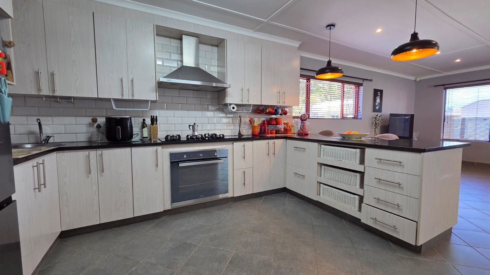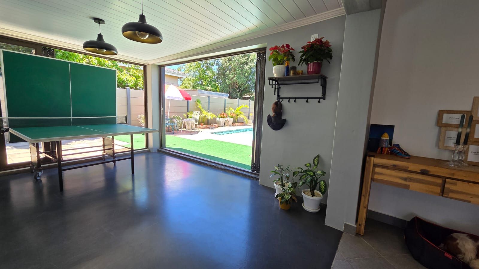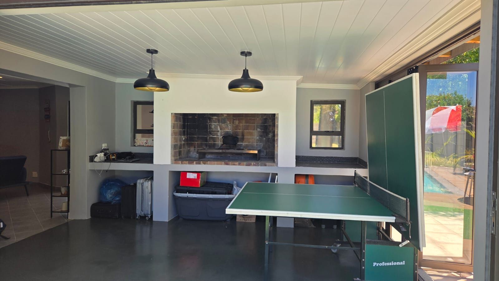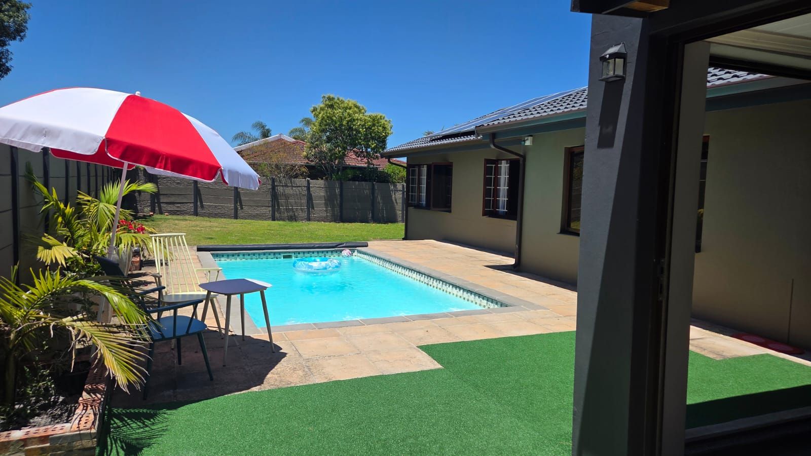 Step outside to your private oasis - a manageable garden featuring a sparkling swimming pool and a dedicated braai area perfect for weekend gatherings. Best of all? Say goodbye to power interruptions with the high-quality 5kW inverter system already installed.