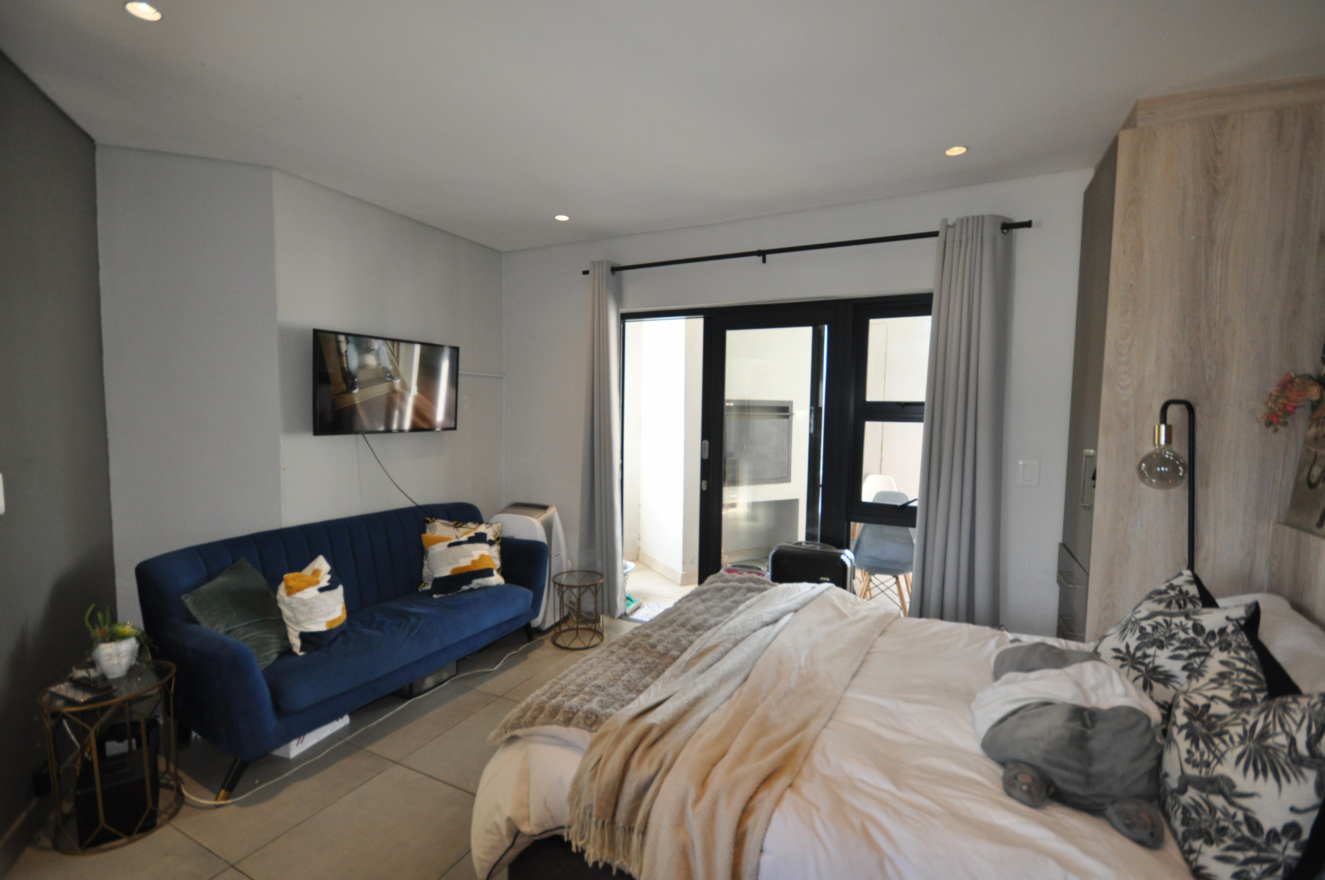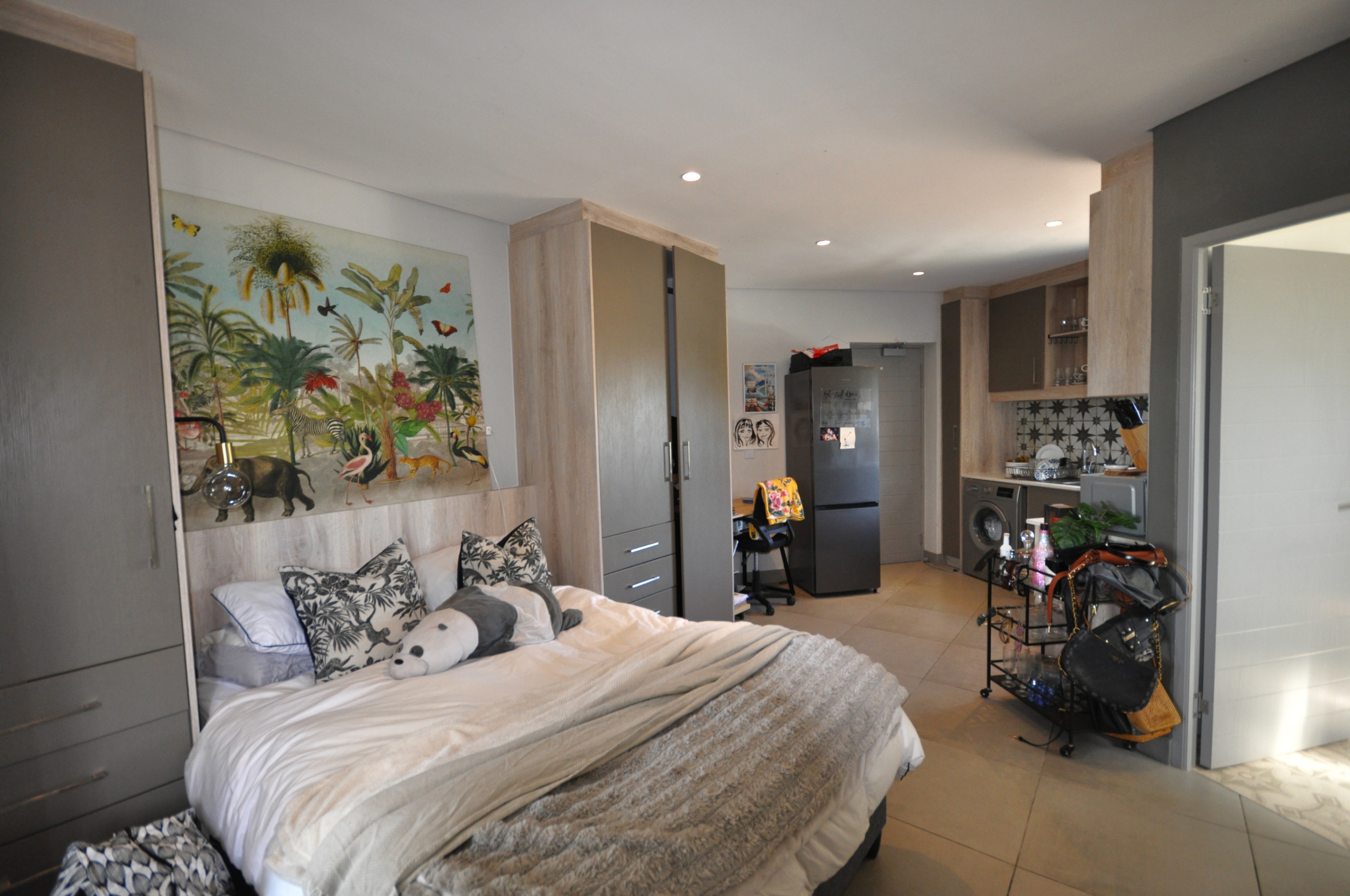 Discover an exceptional investment opportunity with this spacious bachelor apartment, one of only two units of its size in the building—make this one yours! This stylish apartment boasts modern finishes throughout, featuring a well-equipped kitchen with granite countertops, a Smeg stove and oven, and plenty of storage space. The combined bedroom and living area provides ample room for a double bed, a study nook, and a small couch, along with sufficient cupboards for all your belongings.