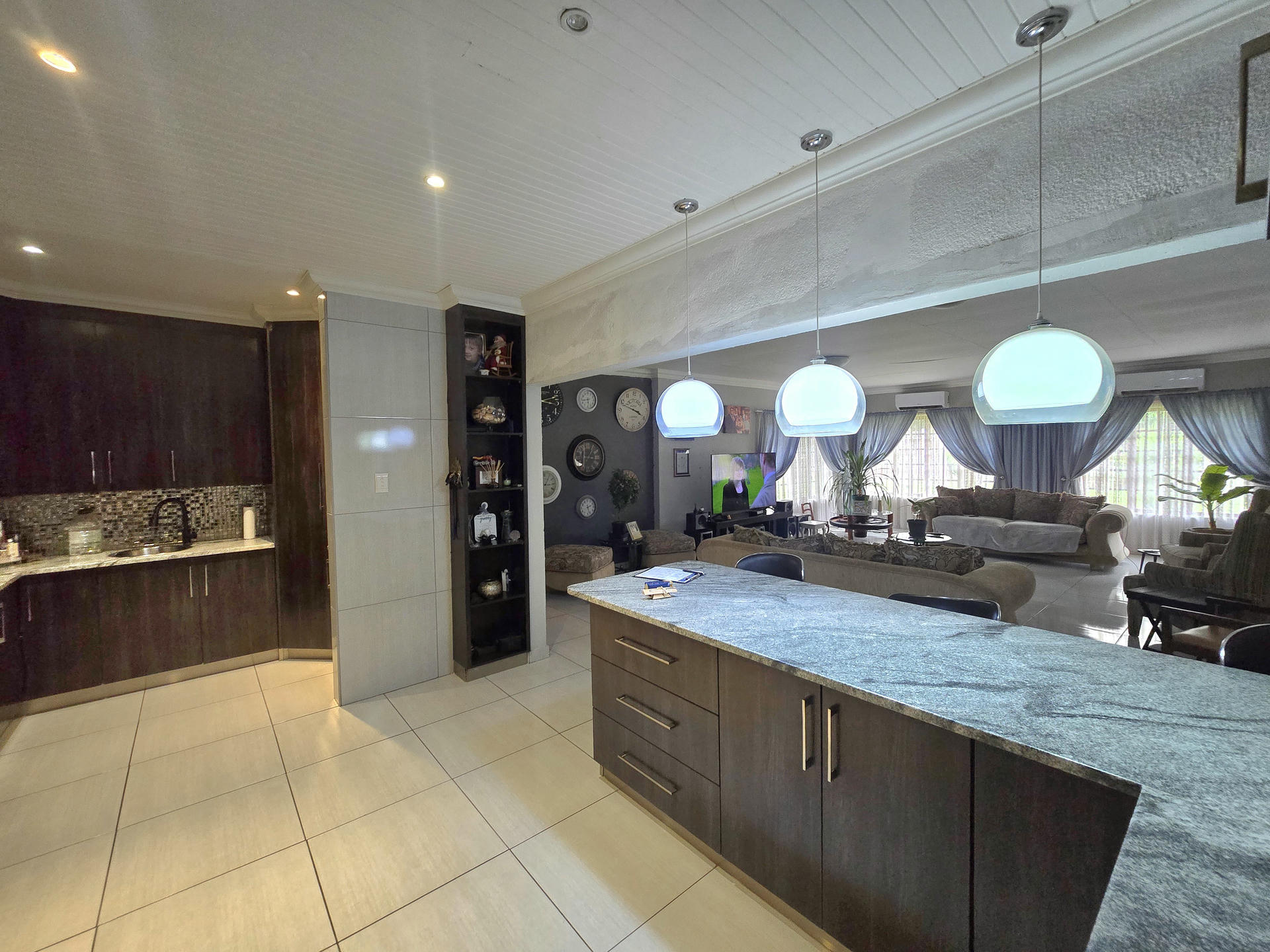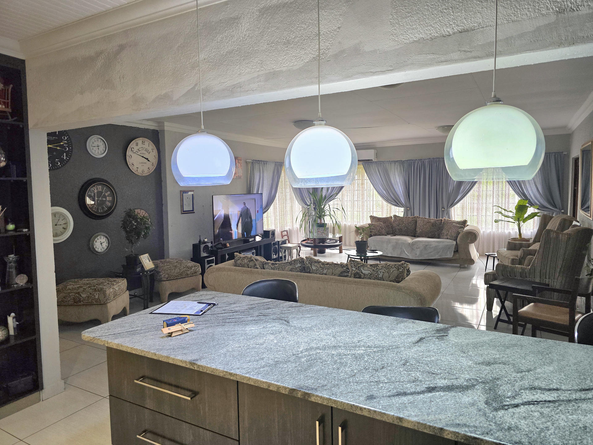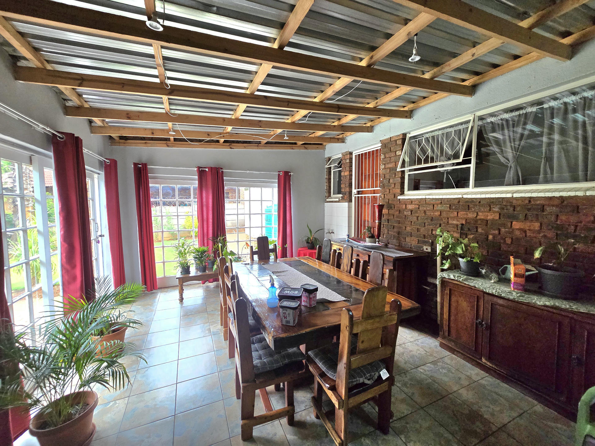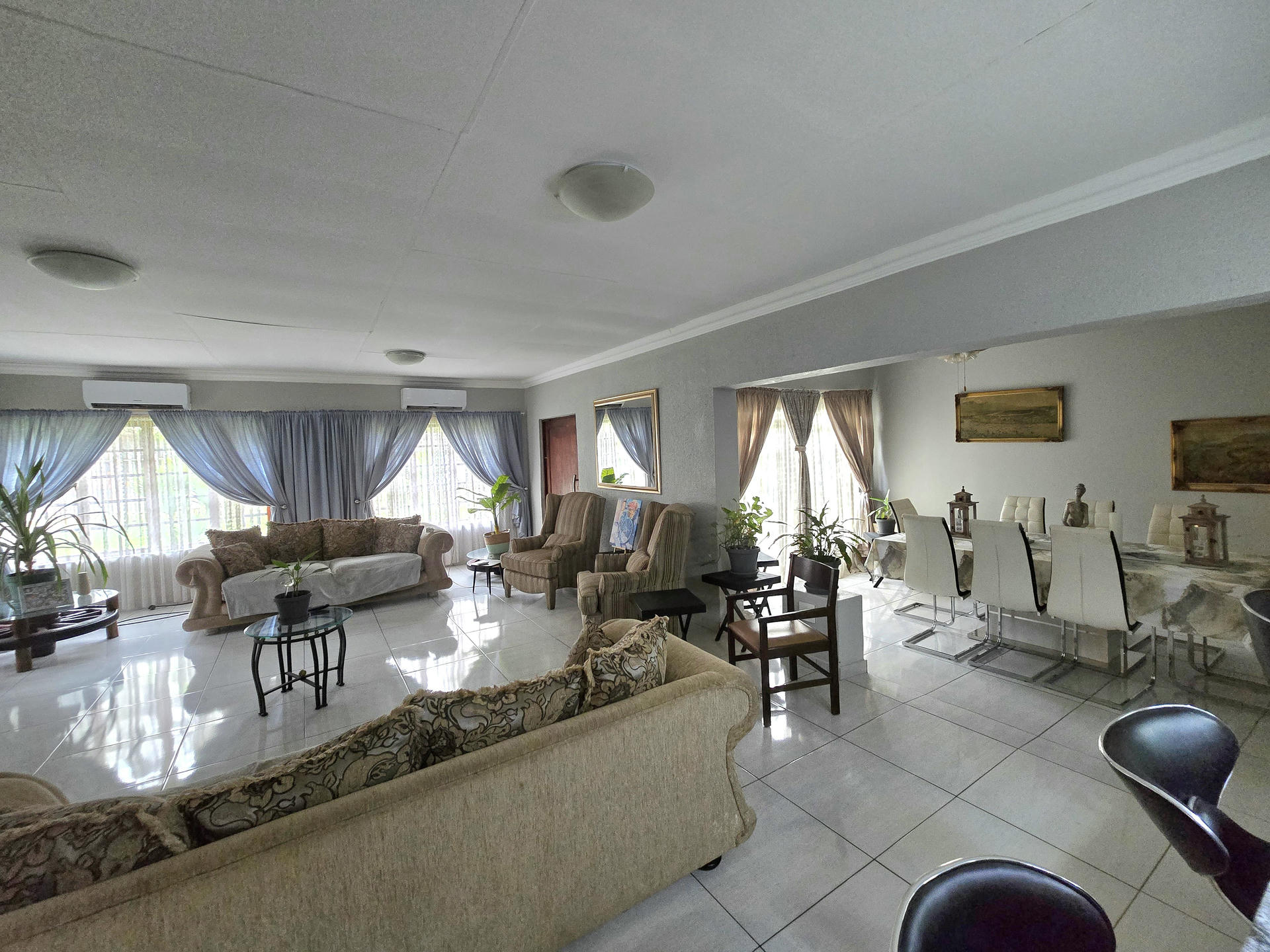 Experience the perfect blend of space, style and practicality in this beautifully maintained Dennesig home. Set on a large 1410 sqm stand, this property combines classic charm with modern comfort and energy efficiency. The residence boasts impressive street appeal with neat landscaping, a paved driveway and automated garages, creating a warm welcome from the moment you arrive. Inside, the home offers multiple open plan living areas designed for both relaxation and entertainment. The modern kitchen features granite countertops, a gas stove, ample cupboard space and a separate scullery and laundry room. The living and dining areas flow effortlessly into the entertainment space, complete with a built in braai, fireplace and doors leading to the patio and sparkling swimming pool. The main house offers four spacious bedrooms and three modern bathrooms, including a luxurious master suite with air conditioning and a full en suite bathroom. Adding exceptional value is a separate flatlet with two bedrooms, two bathrooms and an open plan lounge and kitchen, ideal for extended family or rental income. With a solar system, inverter, JoJo tank and pressure pump, this home offers sustainable living without compromise. Secure fencing, burglar bars and an automated gate ensure peace of mind, while fibre connectivity and modern finishes make everyday living effortless.