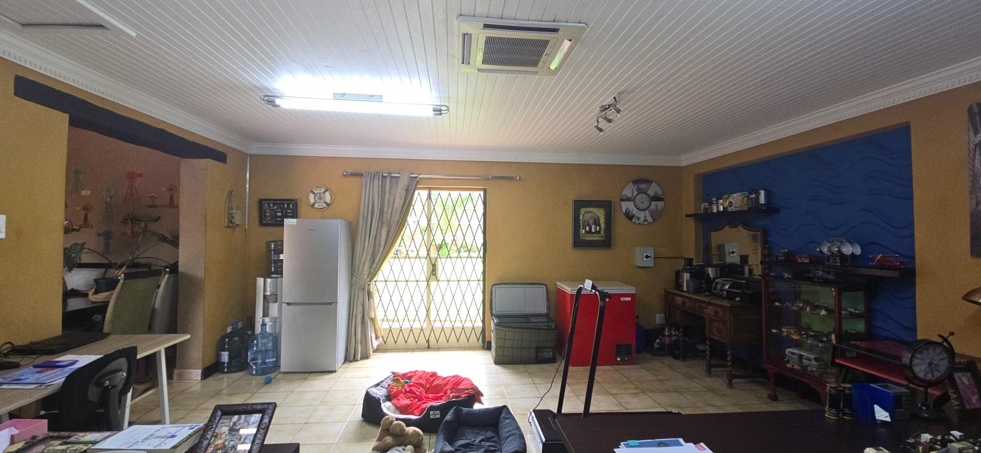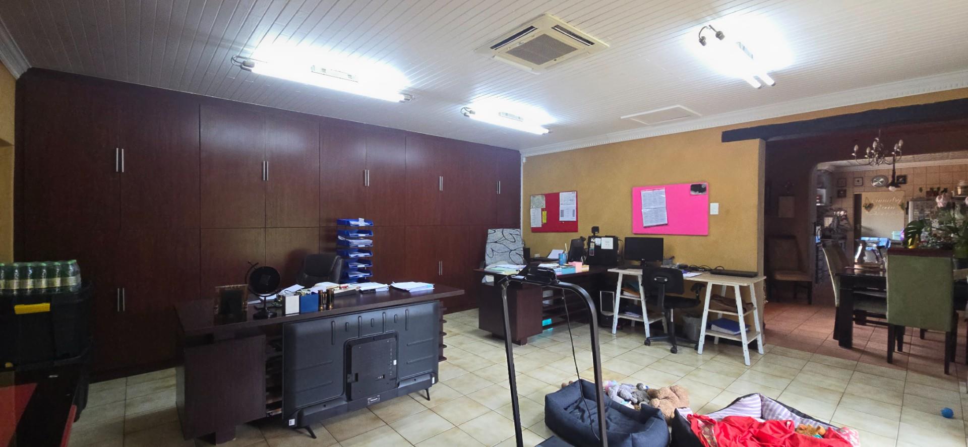 An additional air-conditioned office with full wall built-in cupboards and trellidoor access to the garden provides the ideal work-from-home setup or can easily serve as a second TV lounge.