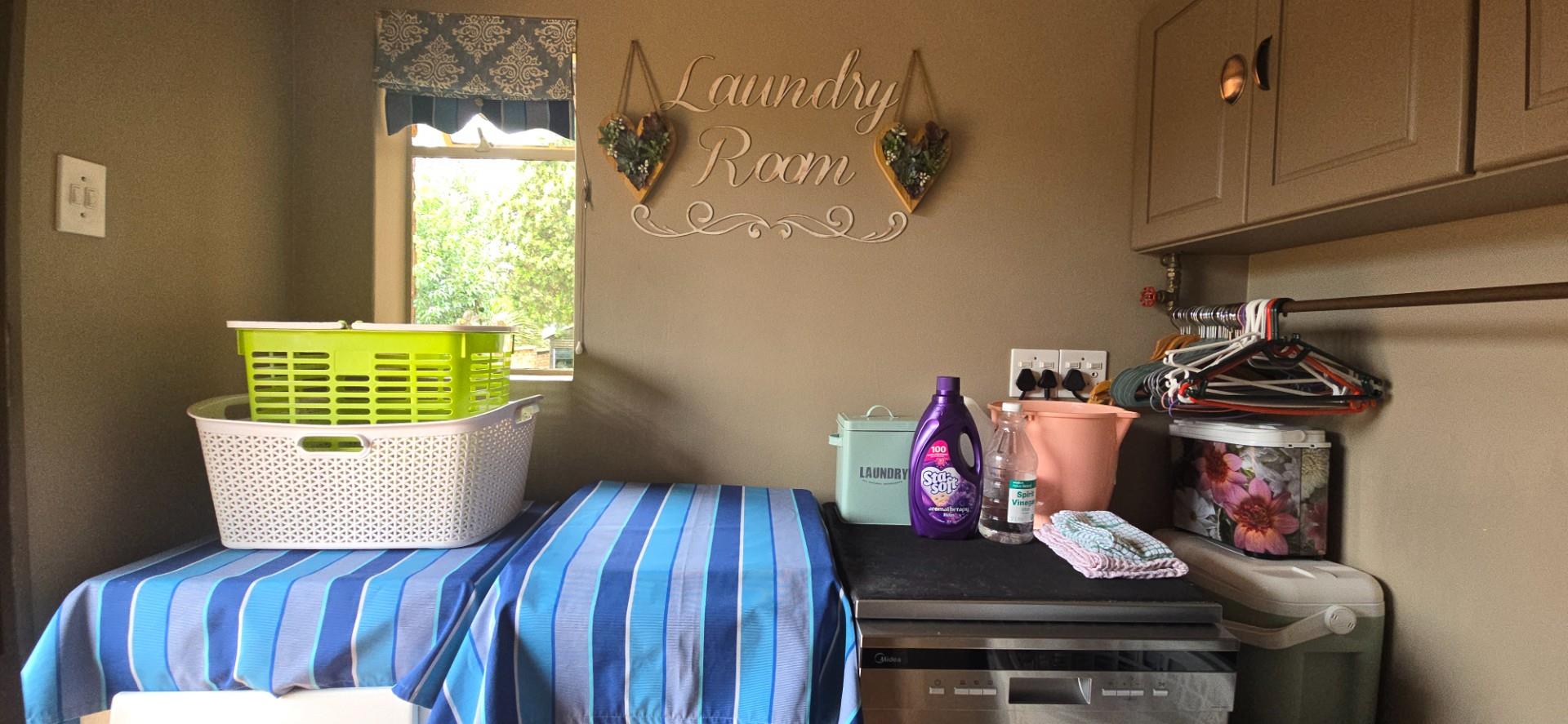 The dining room flows open plan to the kitchen, creating a seamless connection for easy hosting and family interaction. The kitchen forms the heart of the home, featuring built-in basins integrated into the design, an oven, 4-plate gas hob, extractor fan, wine racks, veggie racks, breakfast nook and display cabinets. The layout is practical and stylish. A separate laundry room adds extra functionality while keeping the kitchen space uncluttered.