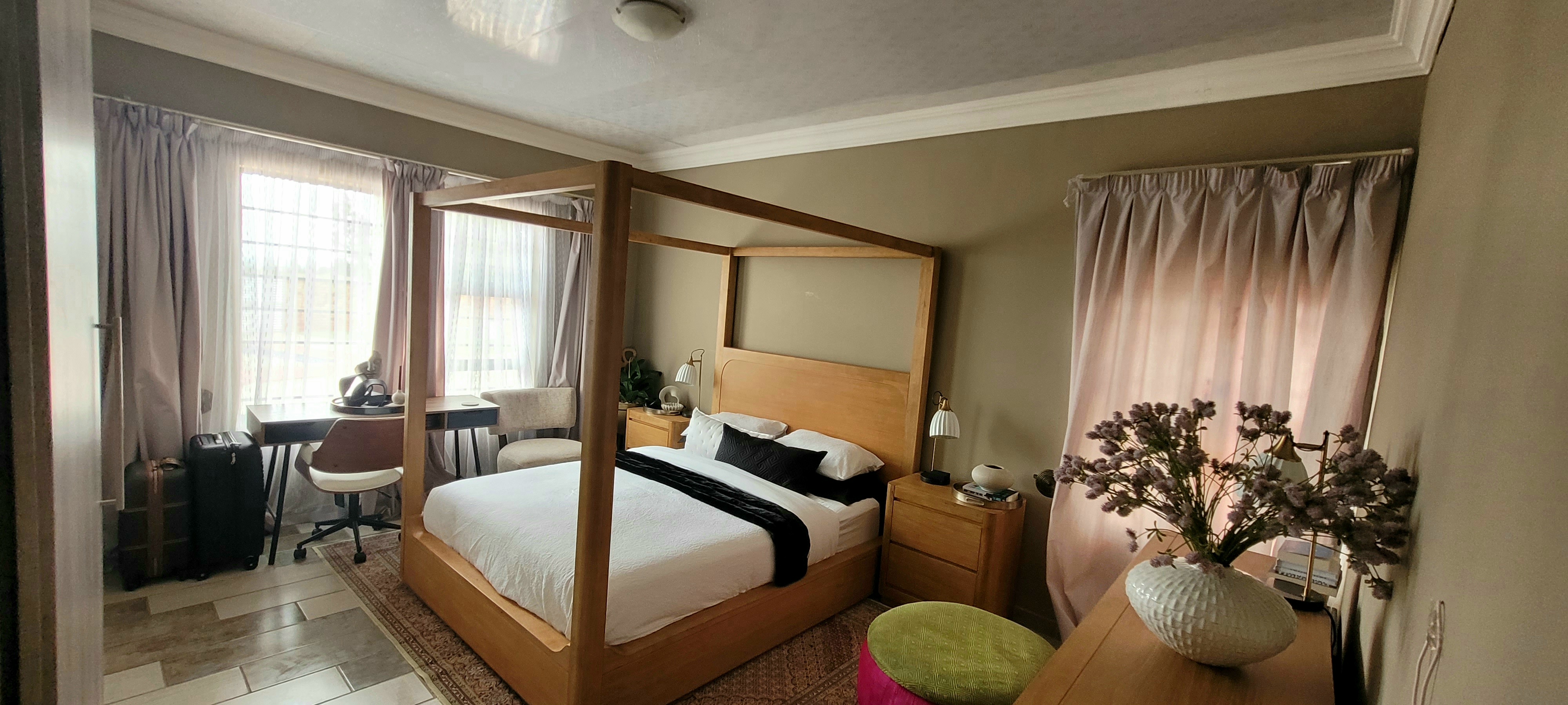 Offering both convenience and exclusivity in one of Middelburg’s most sought-after suburbs, this home is a statement in refined design. Thoughtfully curated interiors create an atmosphere that is both striking and inviting. Expansive open-plan spaces flow seamlessly from one to the next, while abundant natural light pours through oversized glass panels, framing serene views of the tidy garden and sparkling pool.