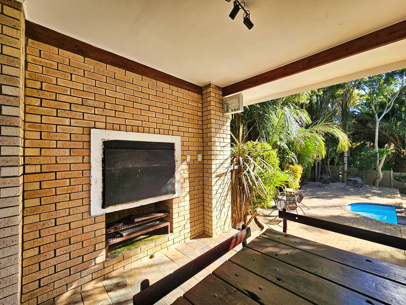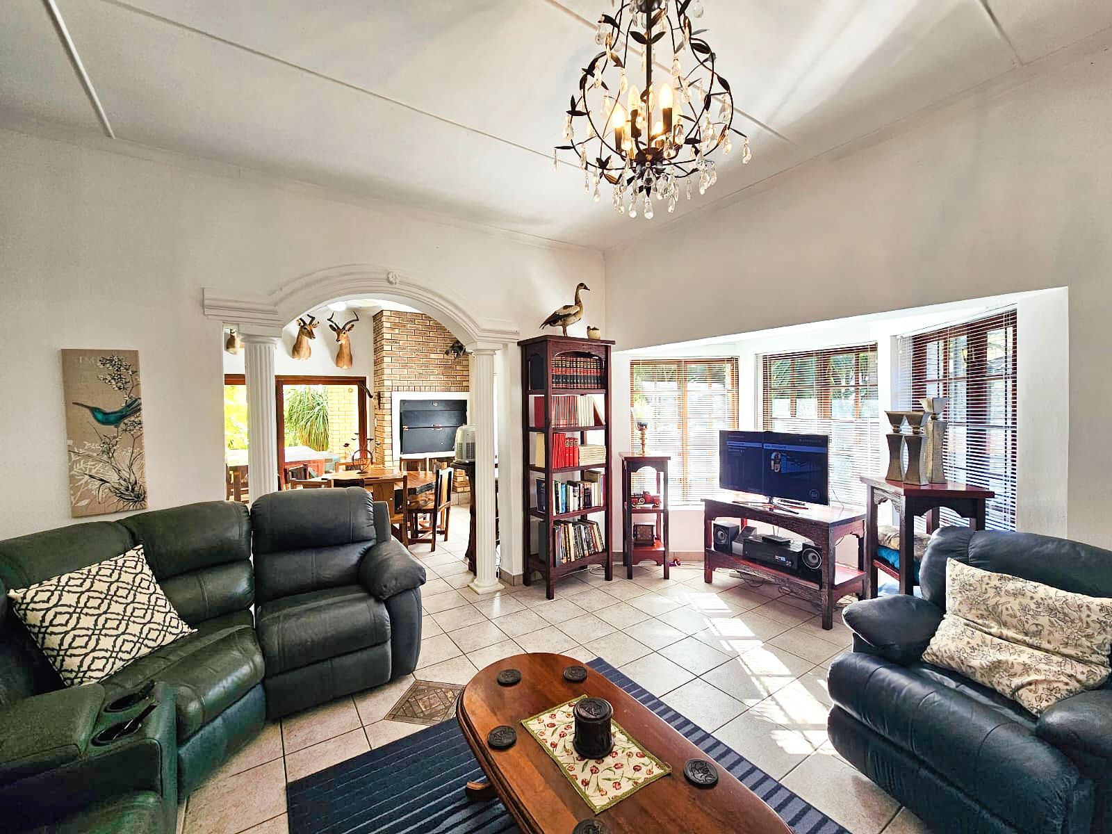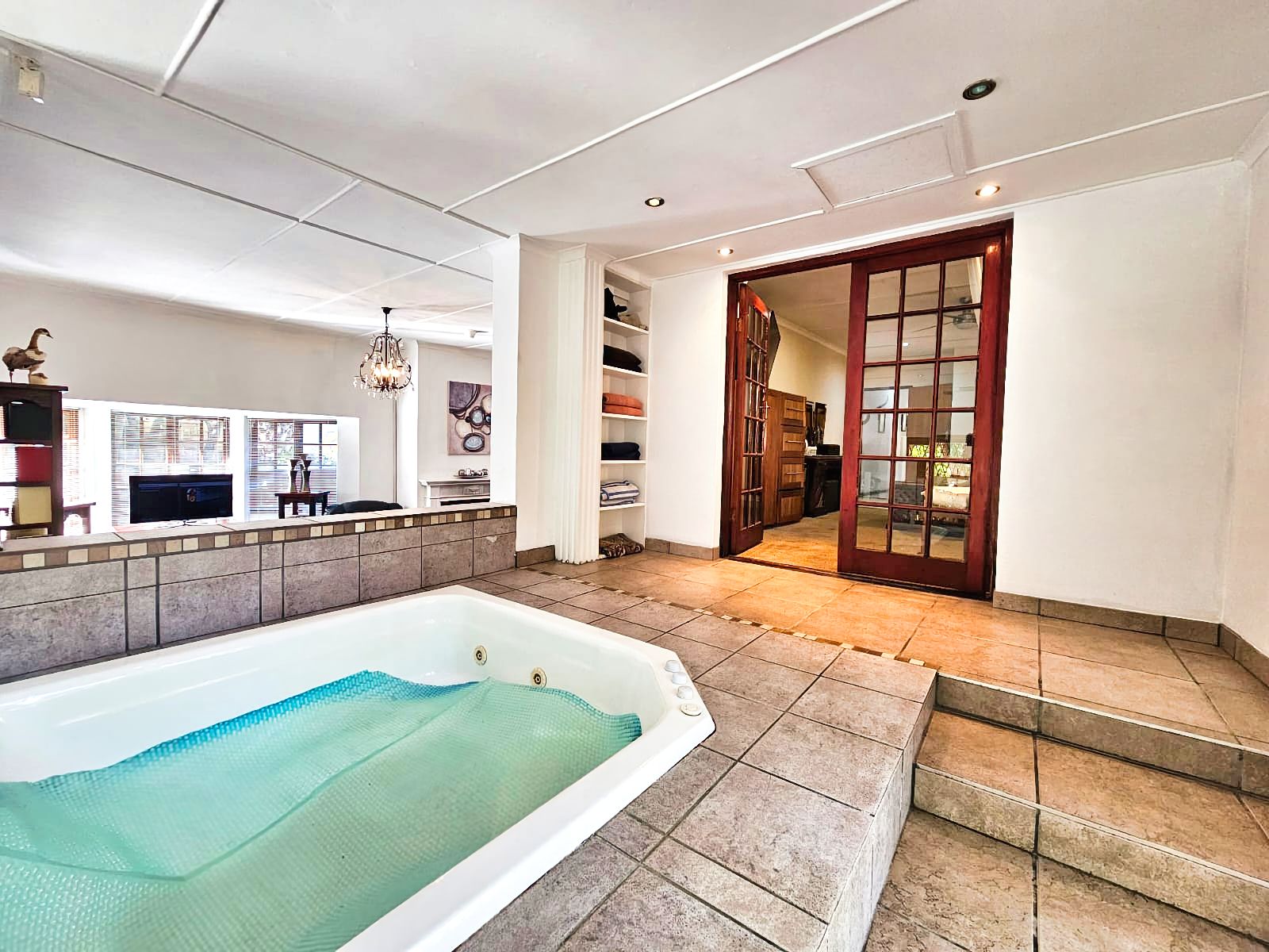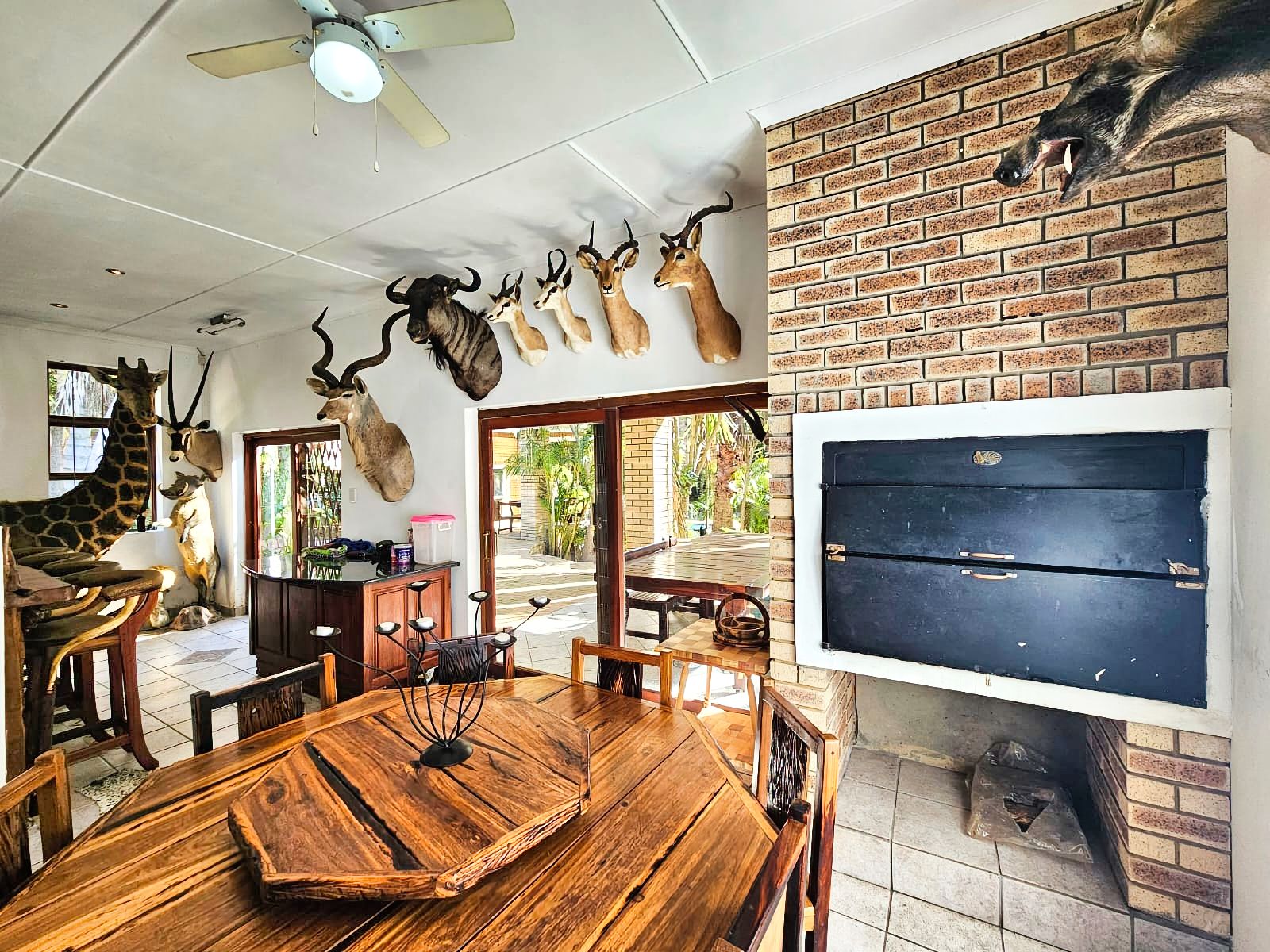 Entertain in style with an indoor bar and braai area, complemented by a large covered stoep featuring two additional built-in braais — perfect for alfresco dining. The outdoor area is an oasis, with a sparkling swimming pool and attached jacuzzi, set against the tranquil backdrop of nature.