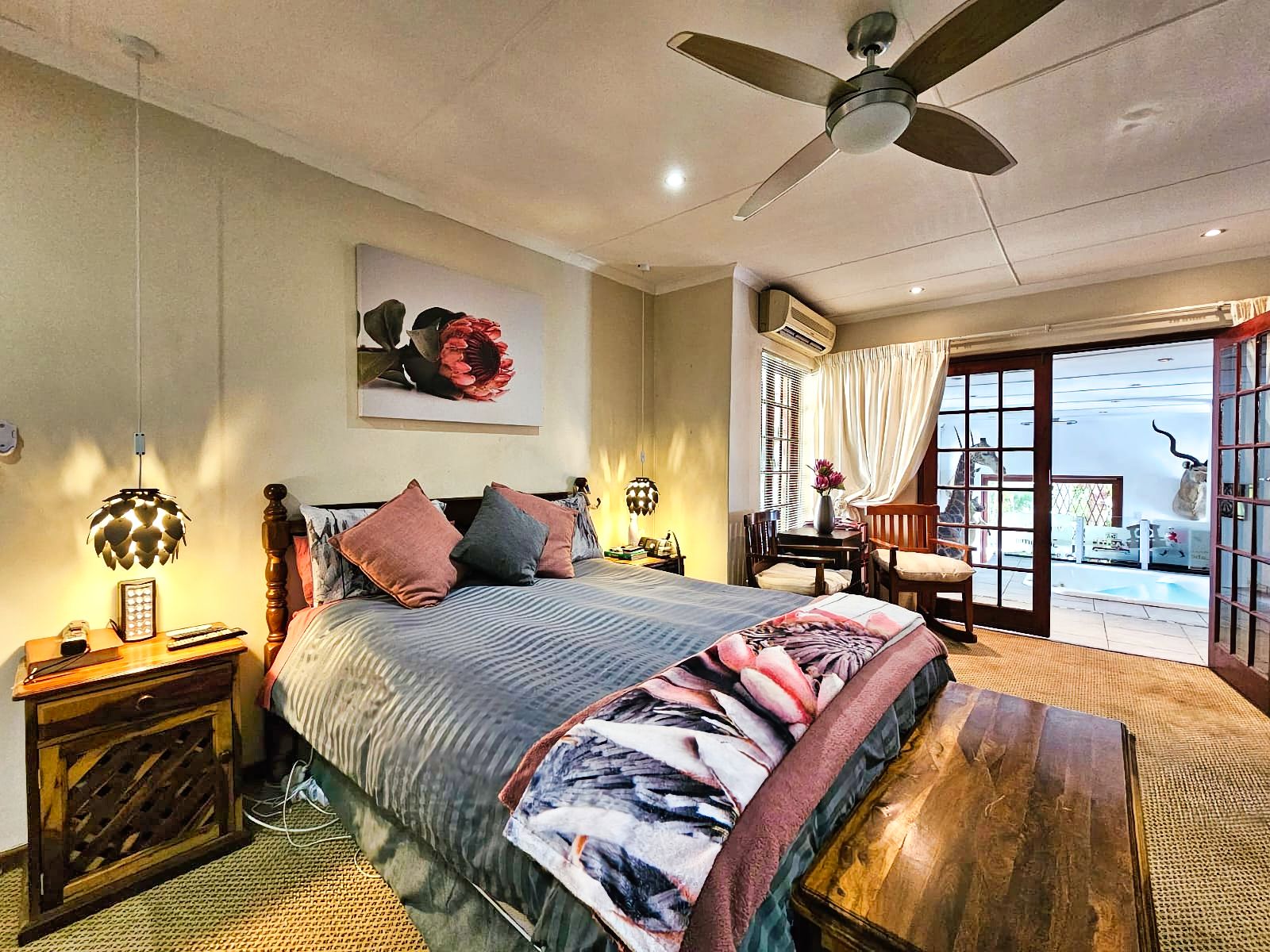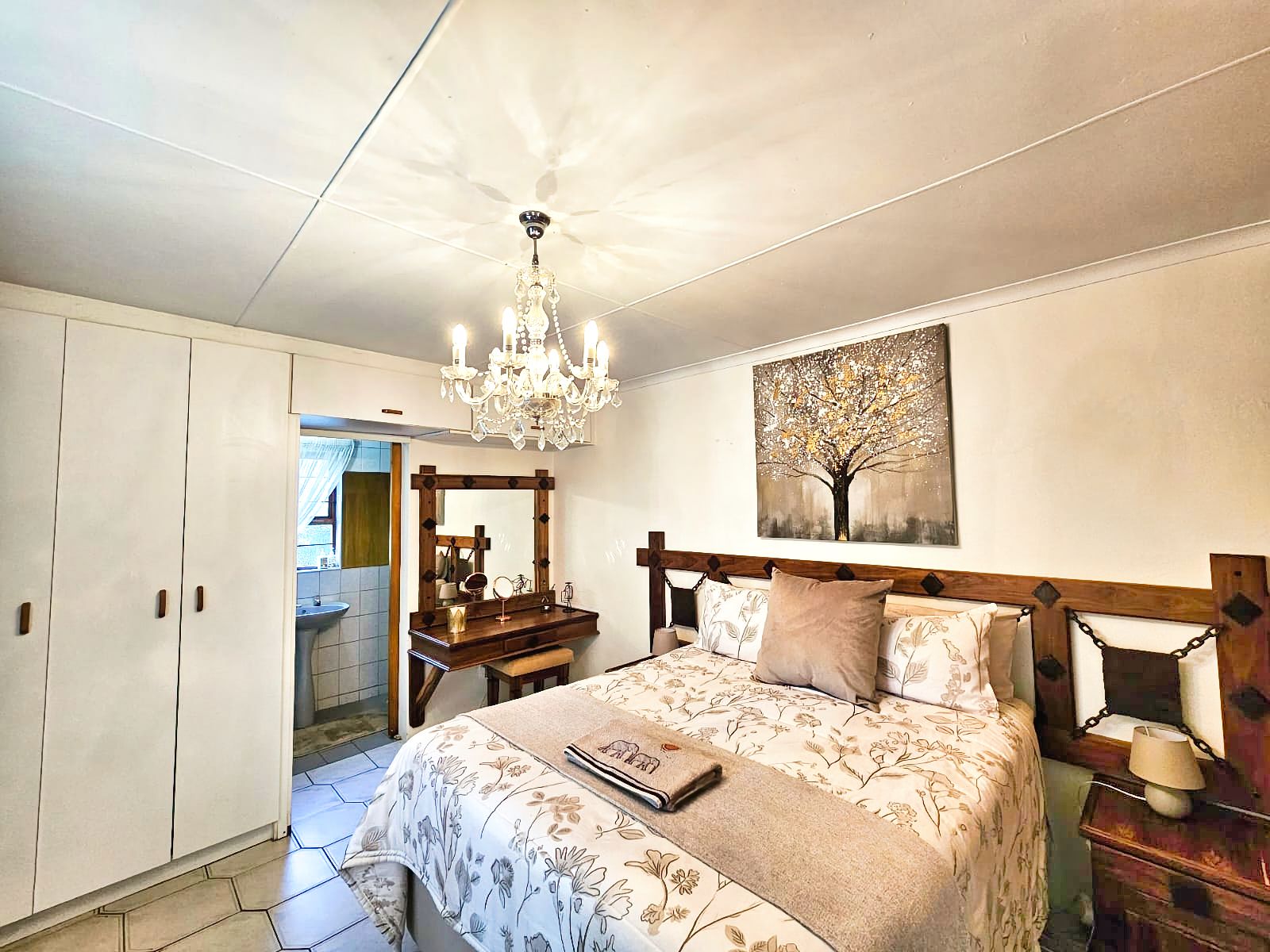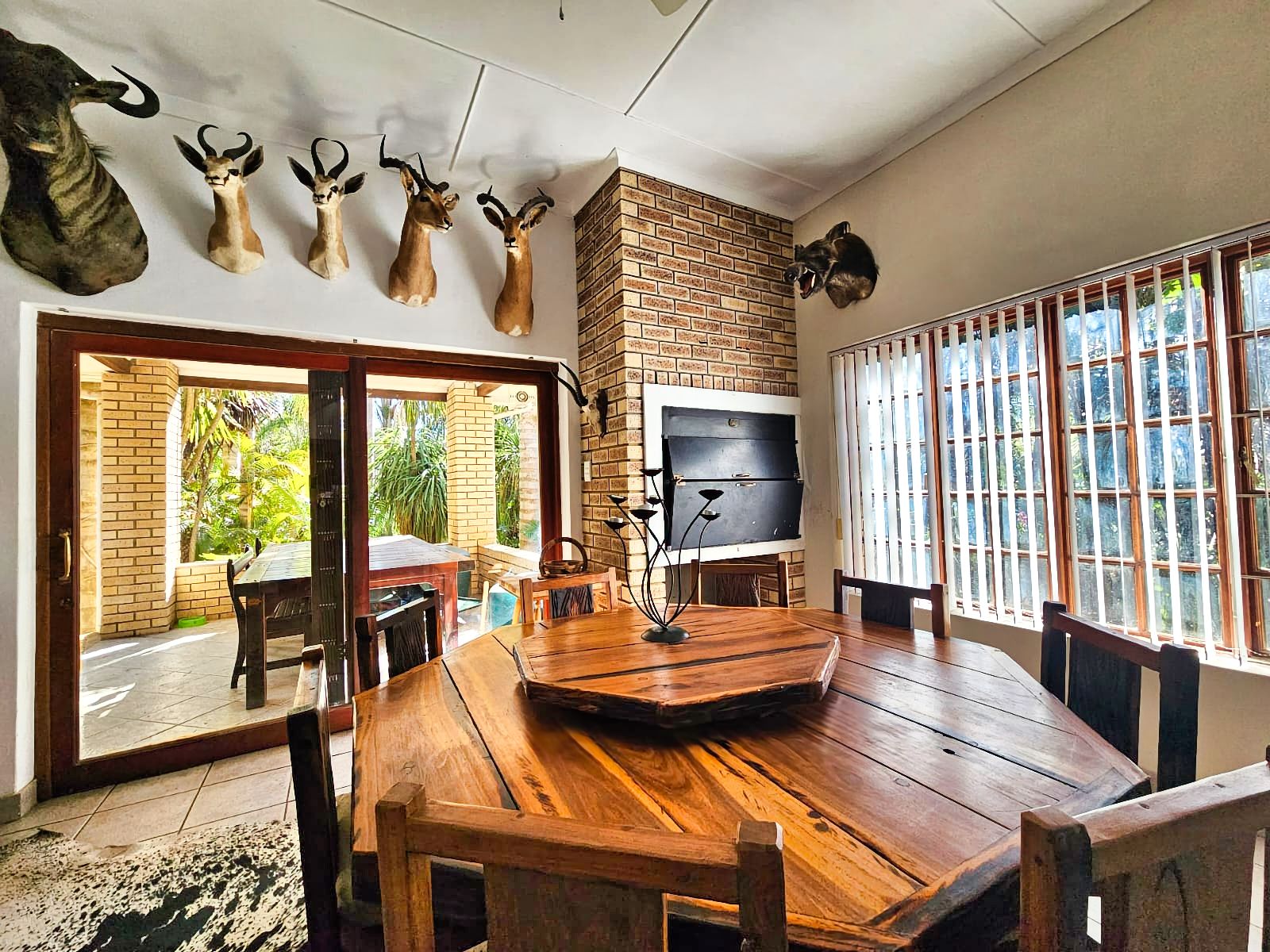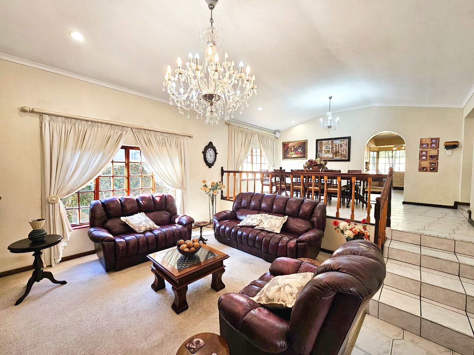 Entertain in style with an indoor bar and braai area, complemented by a large covered stoep featuring two additional built-in braais — perfect for alfresco dining. The outdoor area is an oasis, with a sparkling swimming pool and attached jacuzzi, set against the tranquil backdrop of nature.