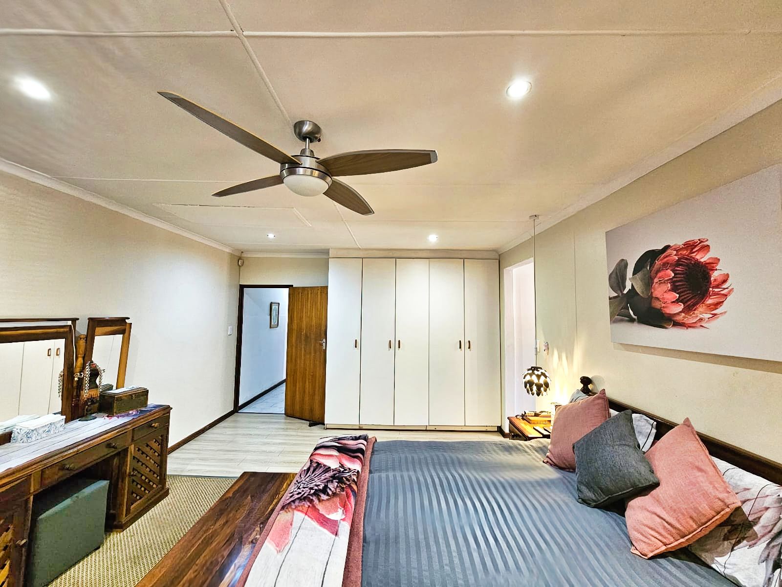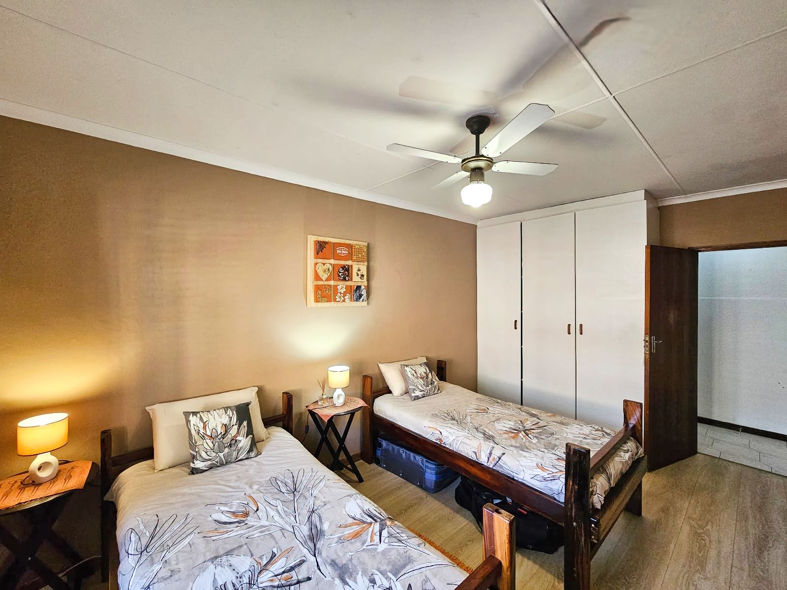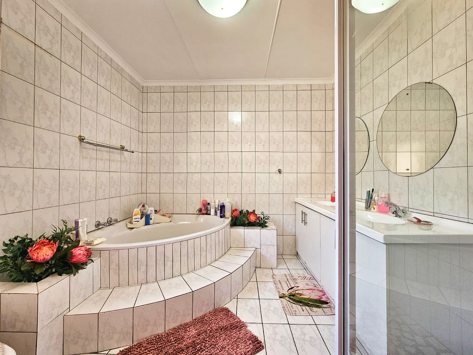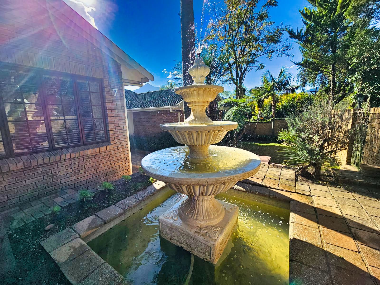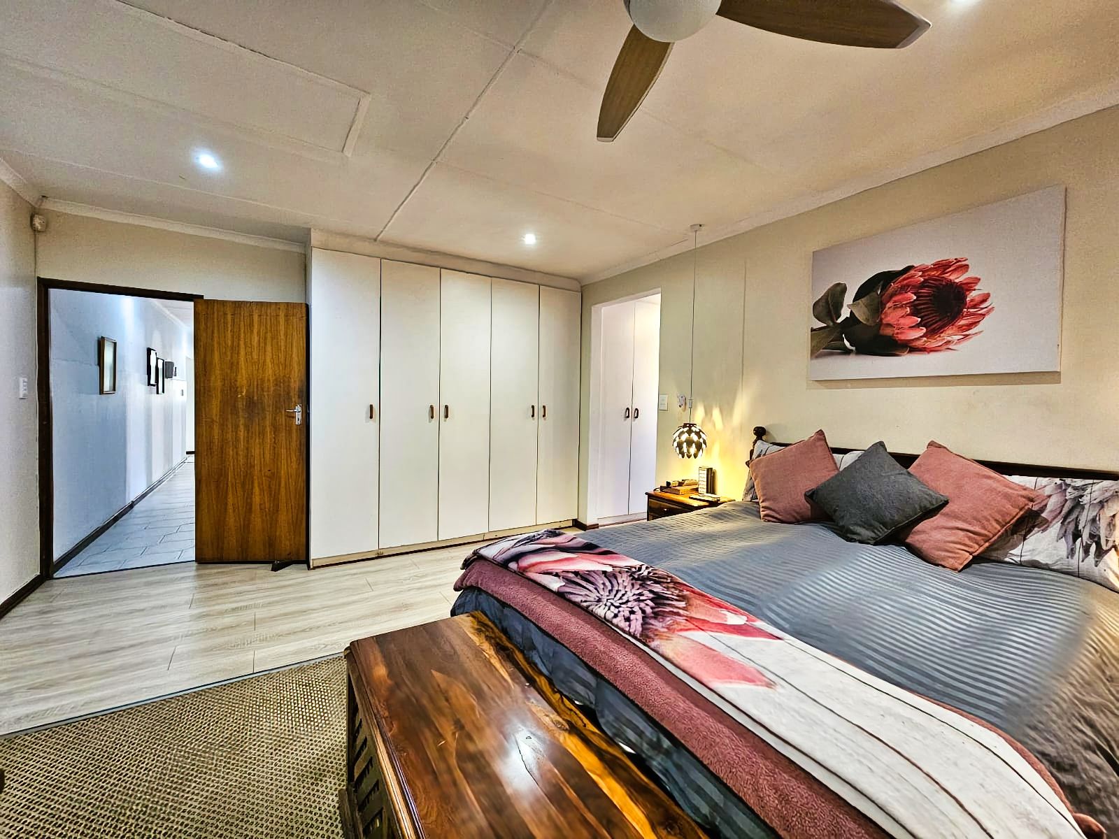 Entertain in style with an indoor bar and braai area, complemented by a large covered stoep featuring two additional built-in braais — perfect for alfresco dining. The outdoor area is an oasis, with a sparkling swimming pool and attached jacuzzi, set against the tranquil backdrop of nature.