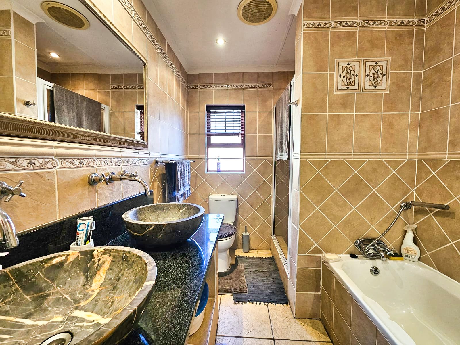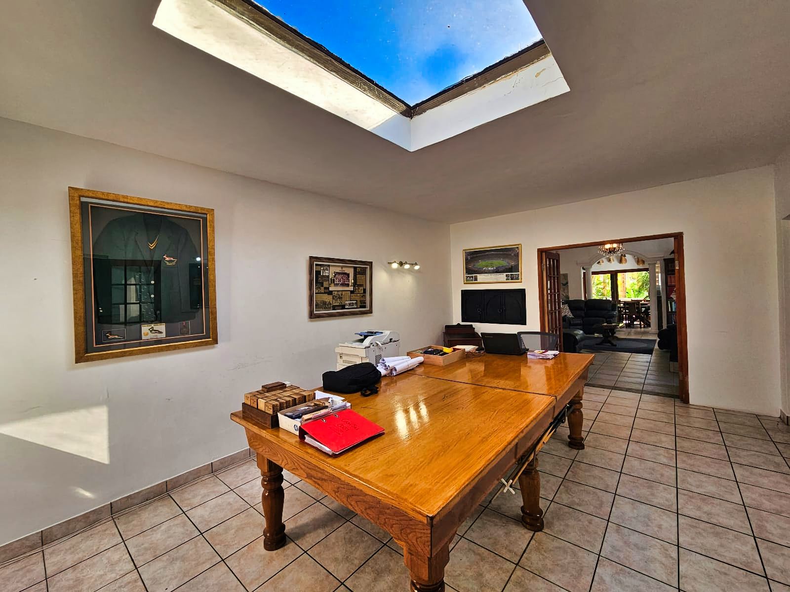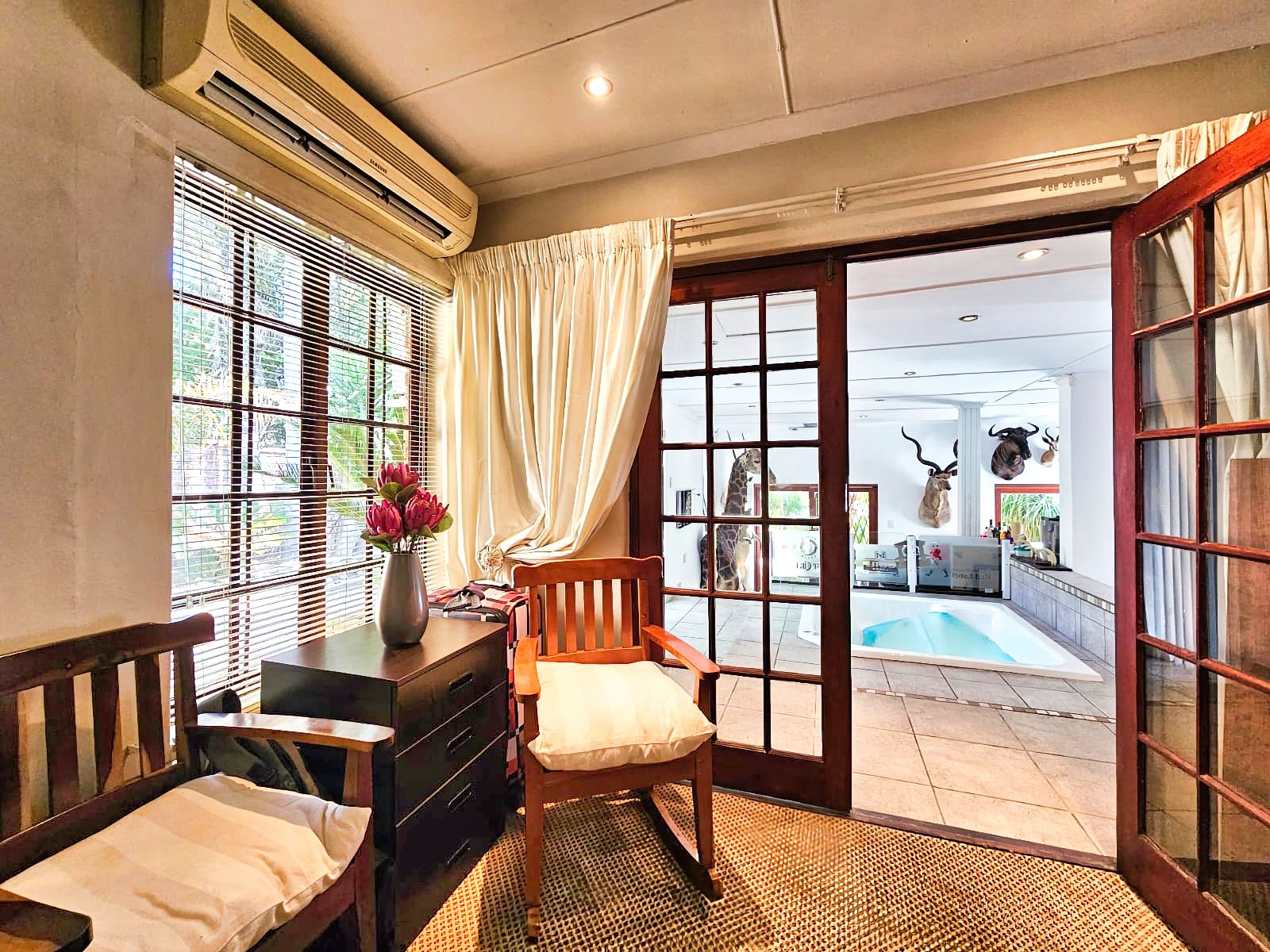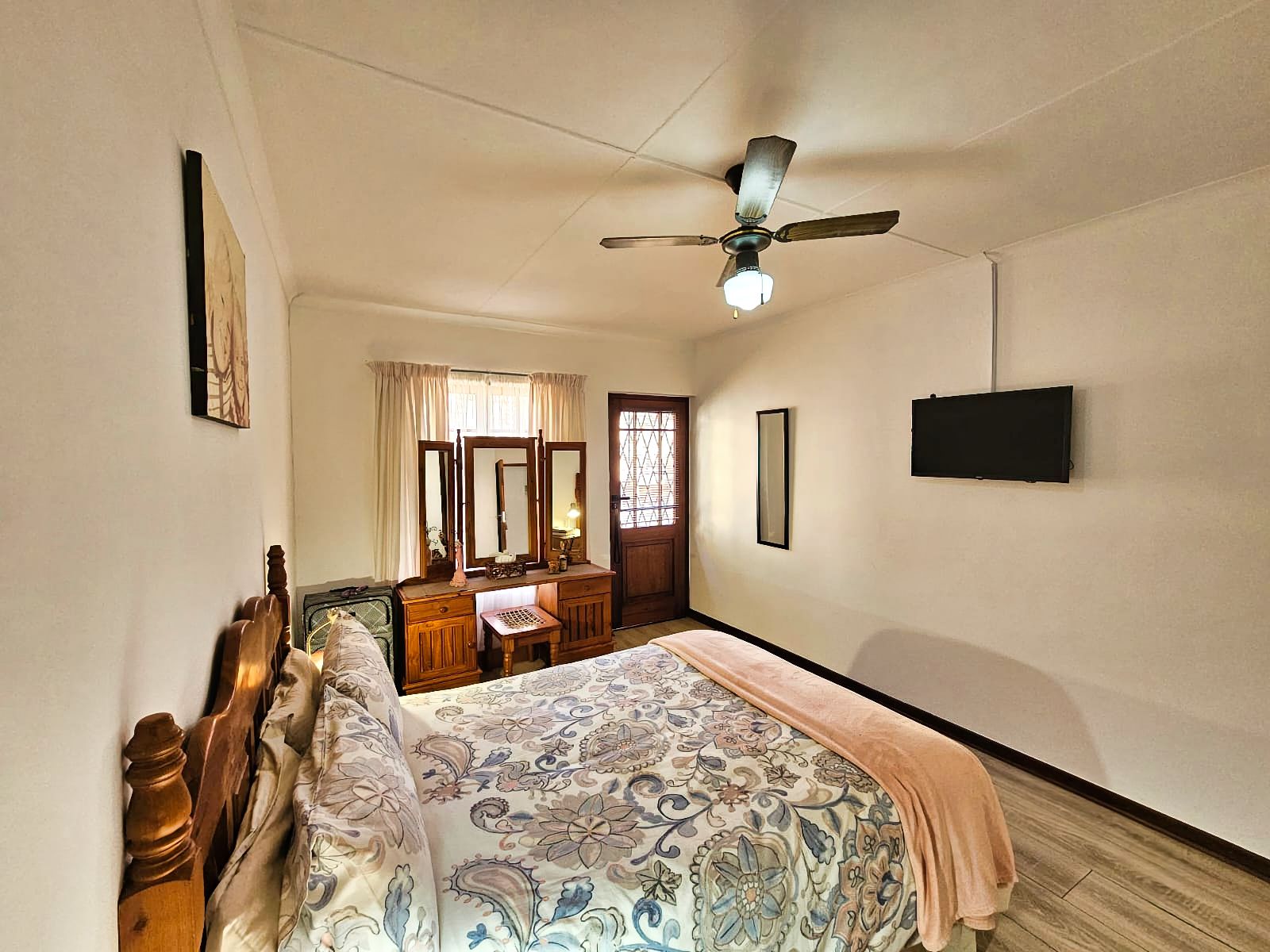 Entertain in style with an indoor bar and braai area, complemented by a large covered stoep featuring two additional built-in braais — perfect for alfresco dining. The outdoor area is an oasis, with a sparkling swimming pool and attached jacuzzi, set against the tranquil backdrop of nature.