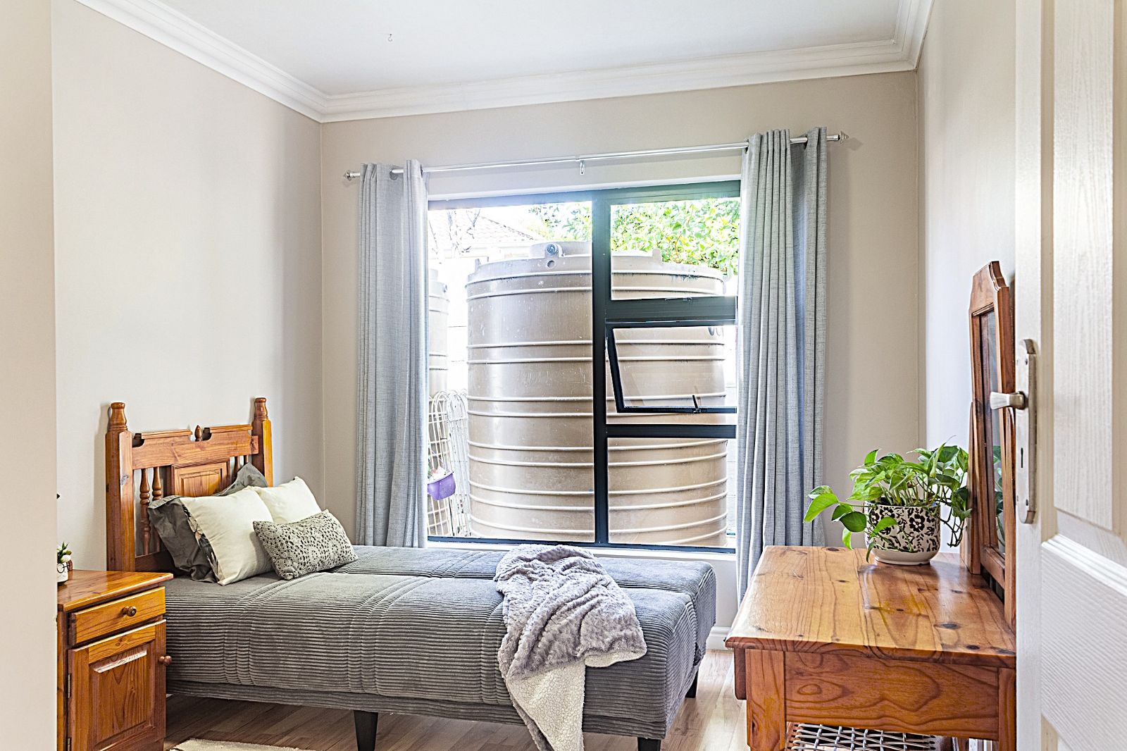 Live off grid with large water tanks and solar.