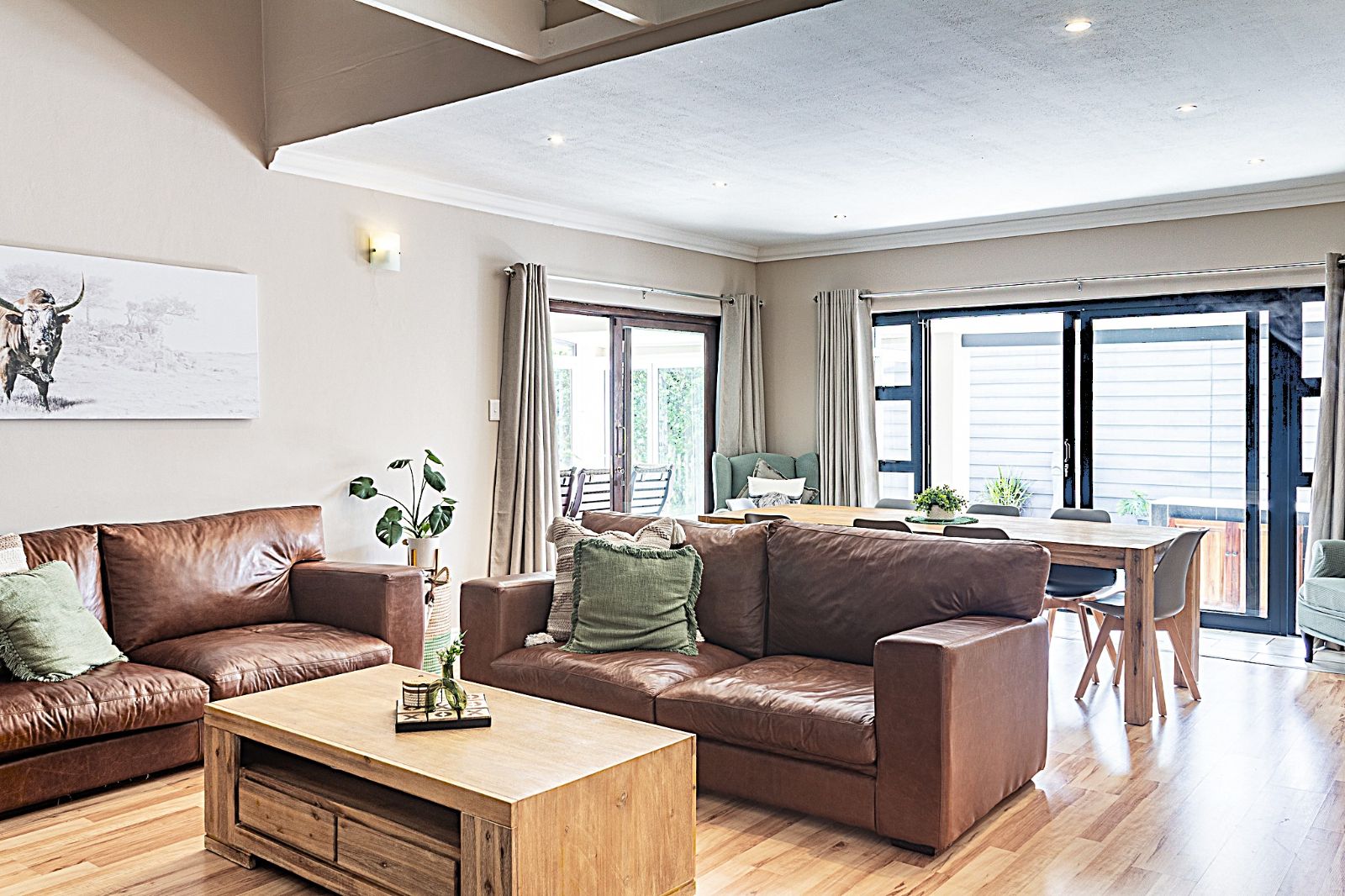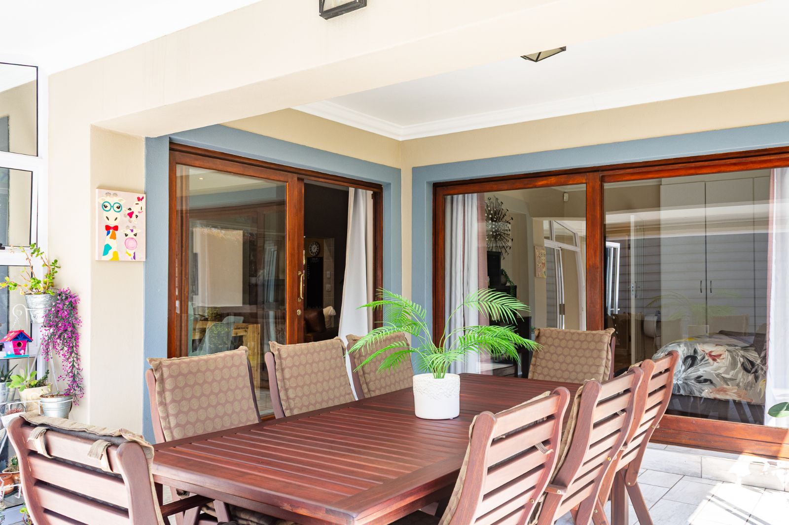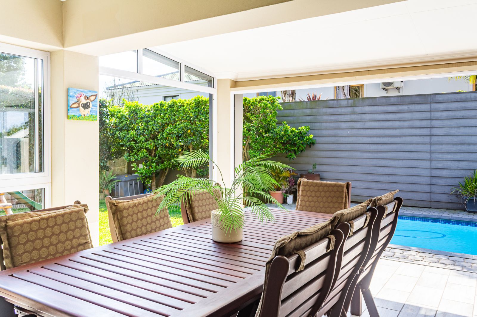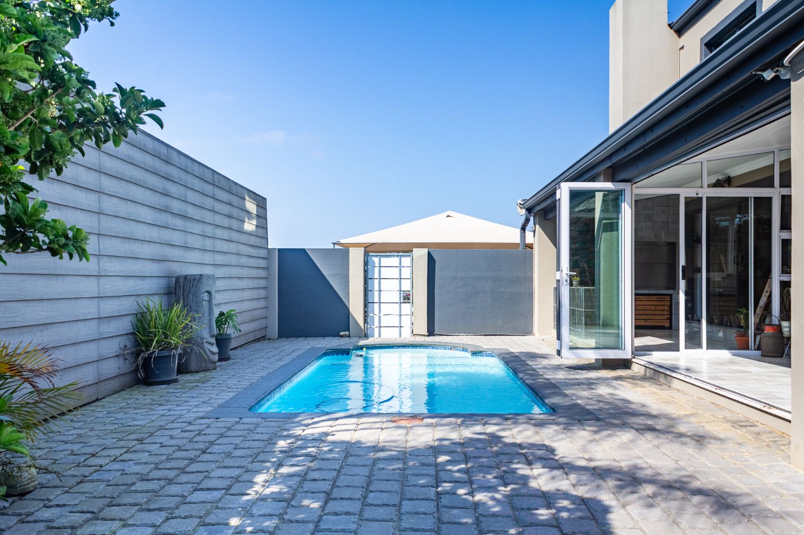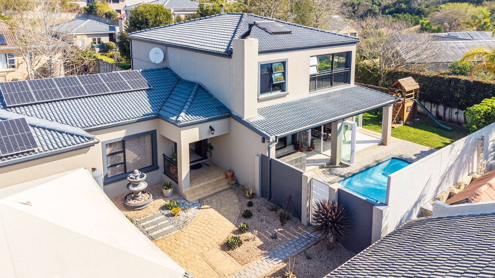 Large 5 bedroom home with separate 1 bedroom flat. Work from home comfortably. Entertain family and friends in the spacious area with separate open fitted braai area, outdoor or indoor dining, swimming pool and children's play area.