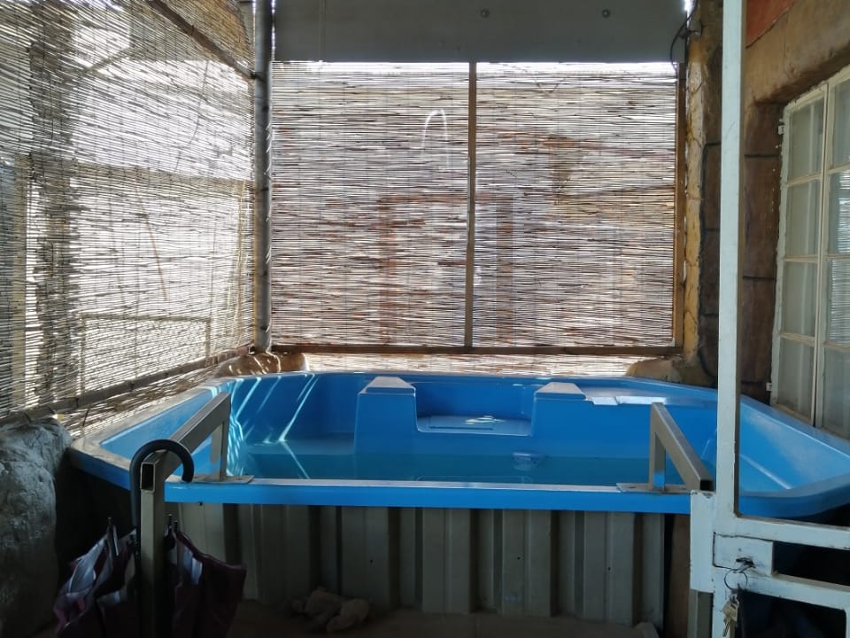 2 x Bedrooms, 1 x En-suite bathroom with walk in built-in closets, open plan lounge/dining room/kitchen with a coal-stove, study, patio with a spa bath.